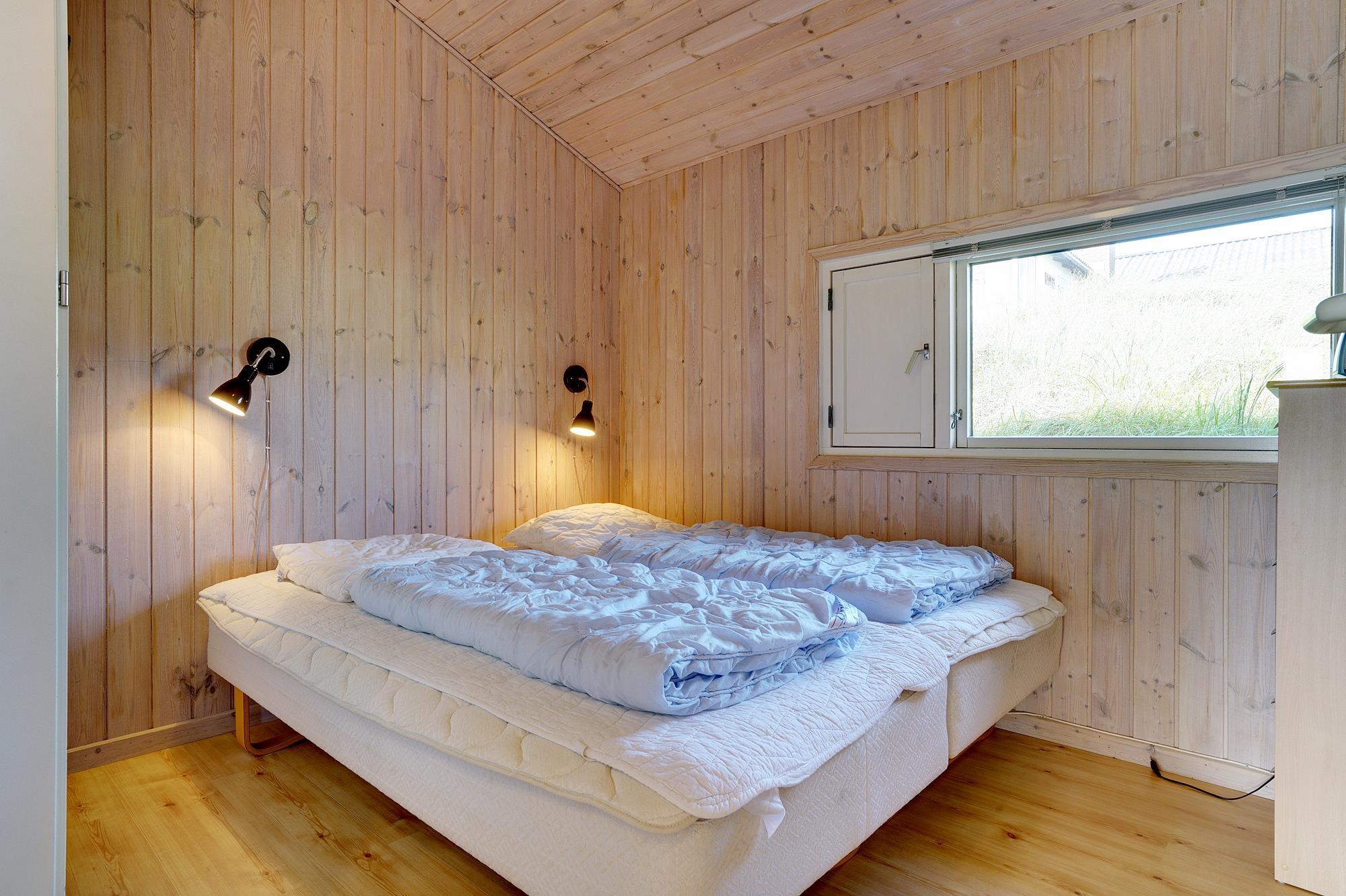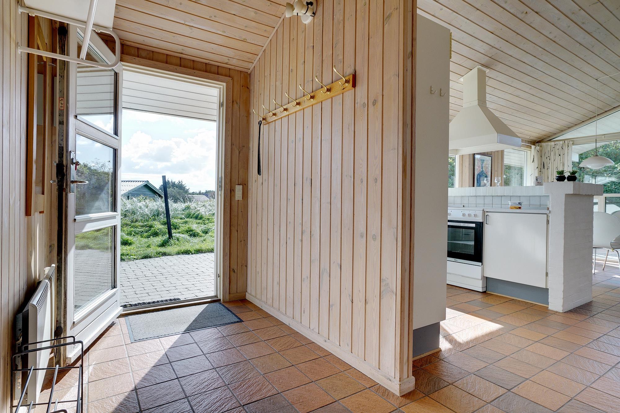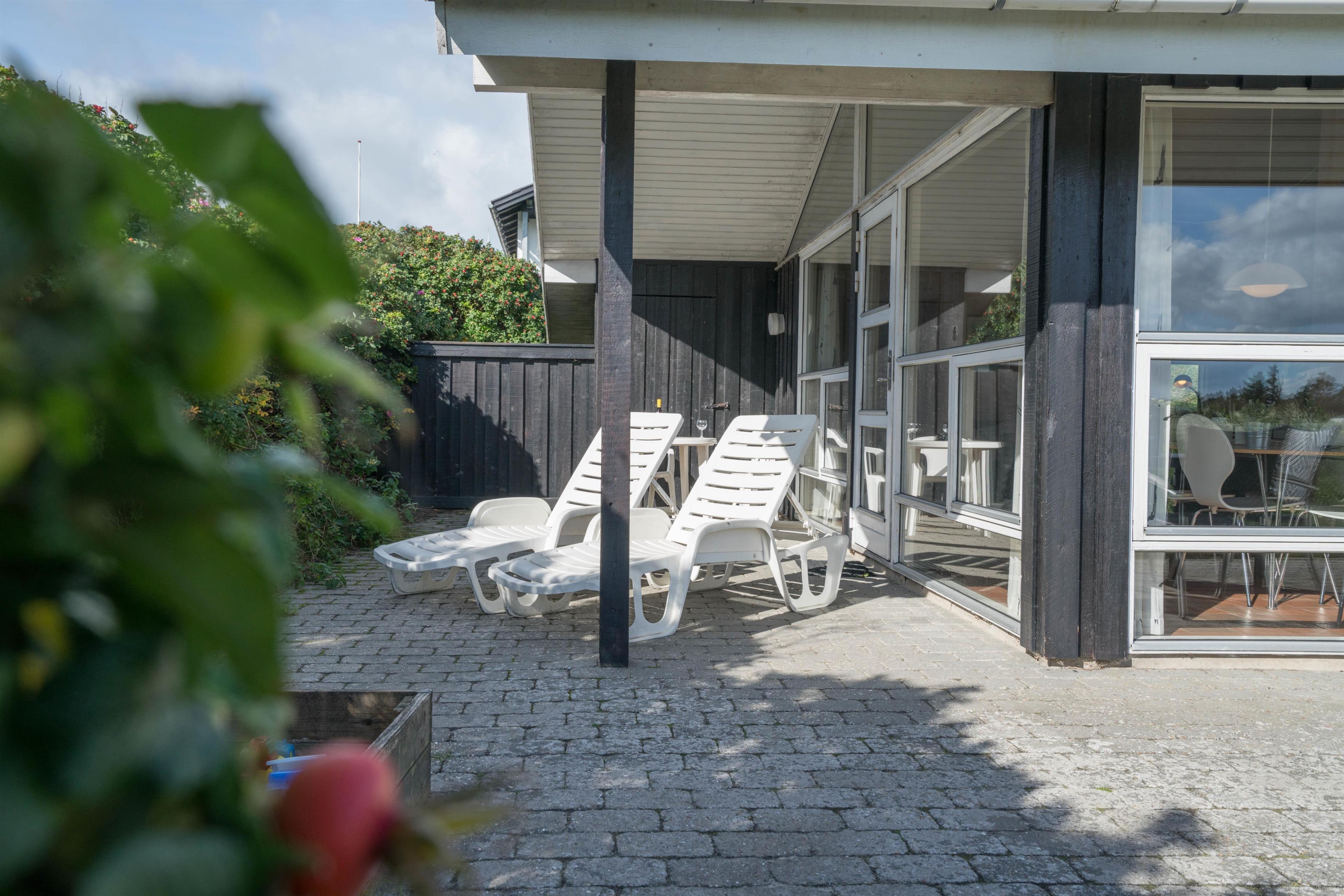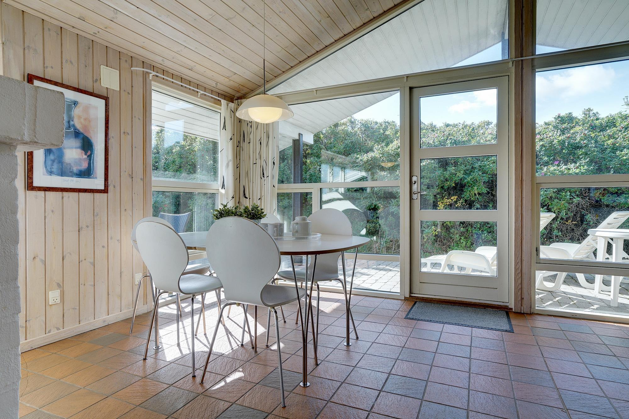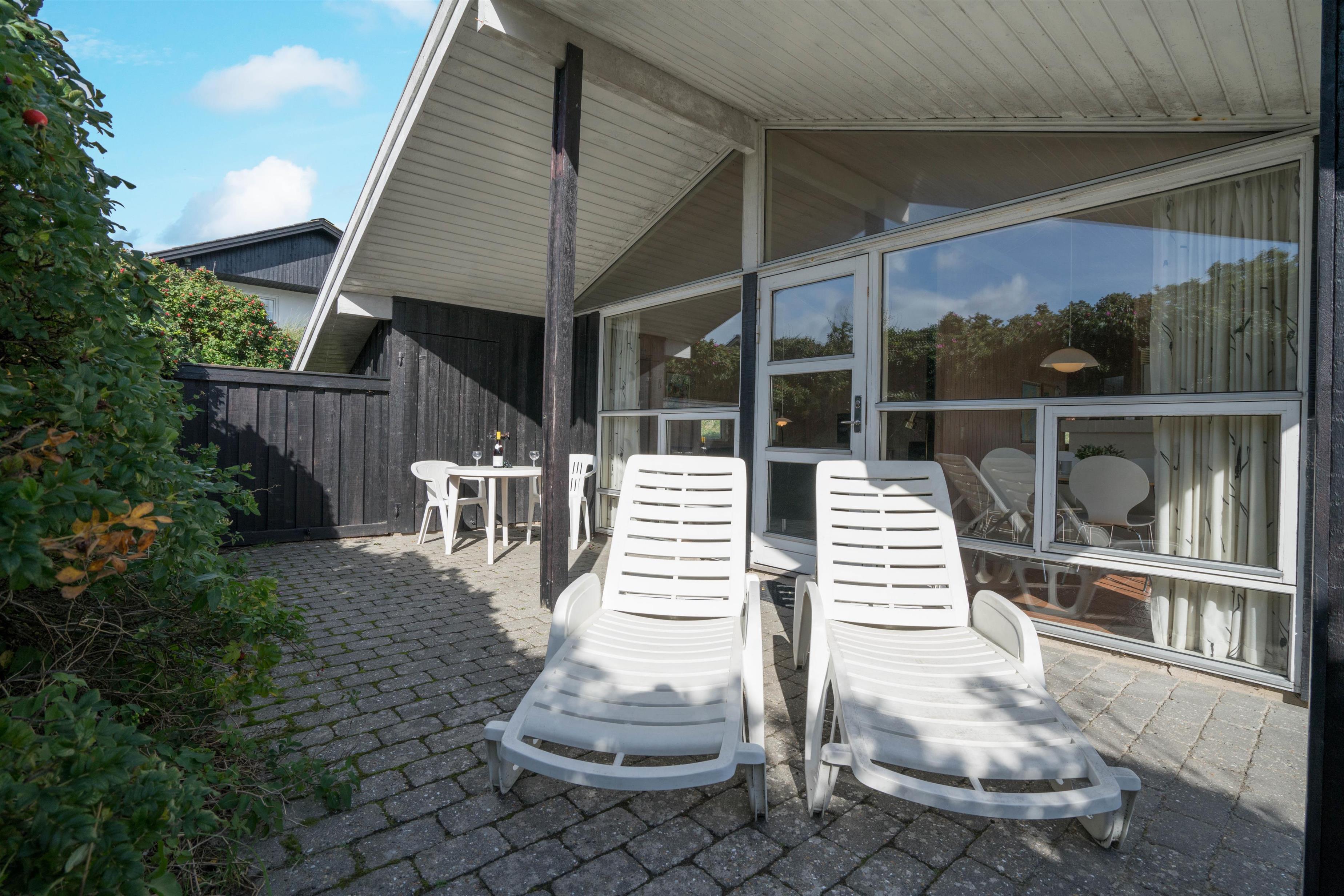 På en dejlig, ugeneret kuperet klitgrund på blind vej ikke langt fra Vesterhavet ligger dette velholdte feriehus. Huset fremstår lyst og venligt. Godt badeværelse med sauna. Fra stuen er der udgang til både delvis overdækket og åben terrasse.