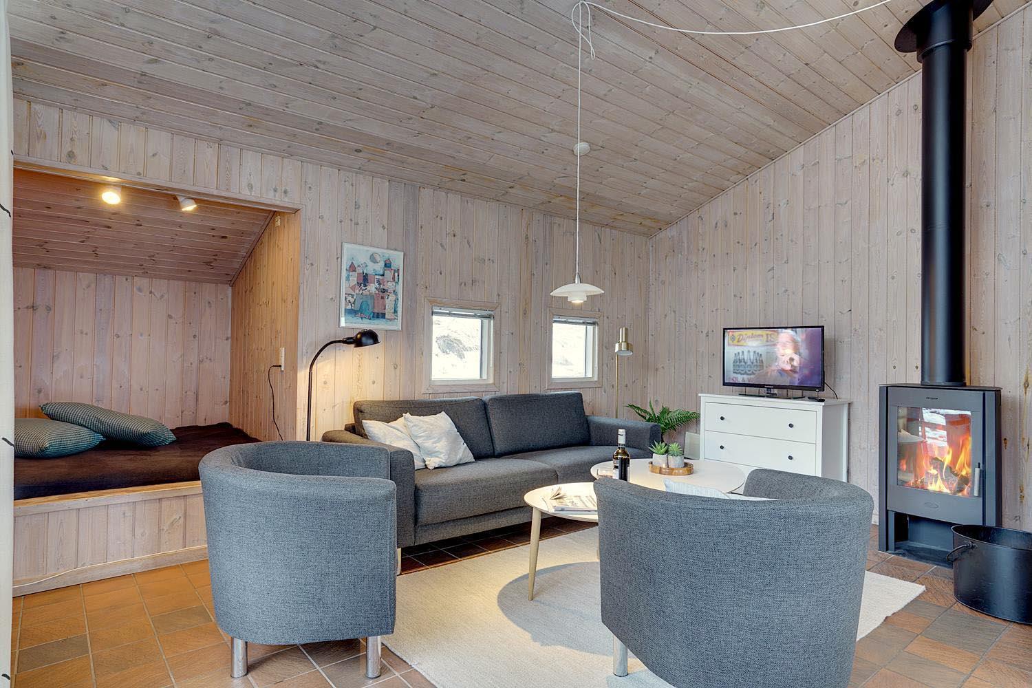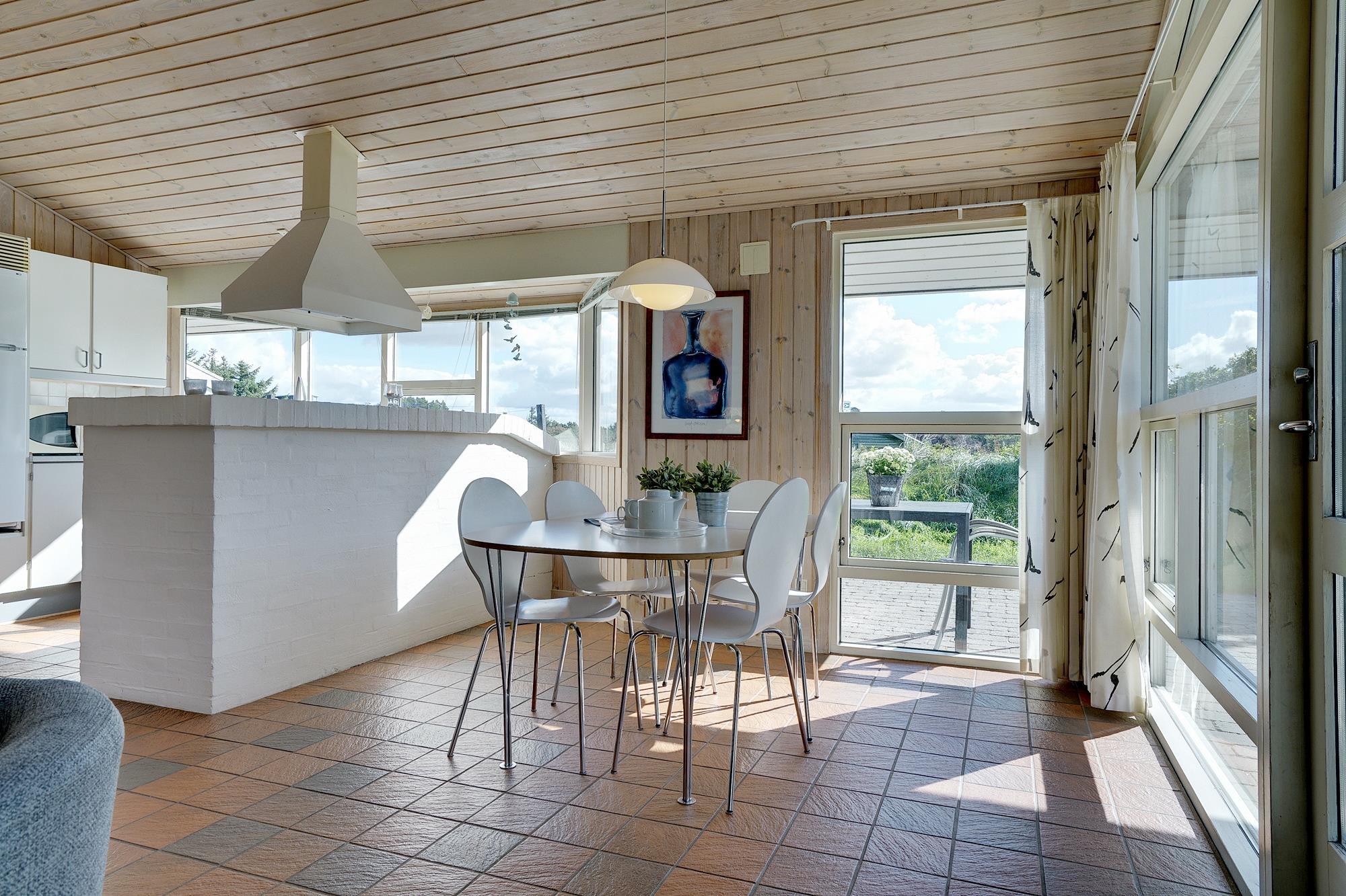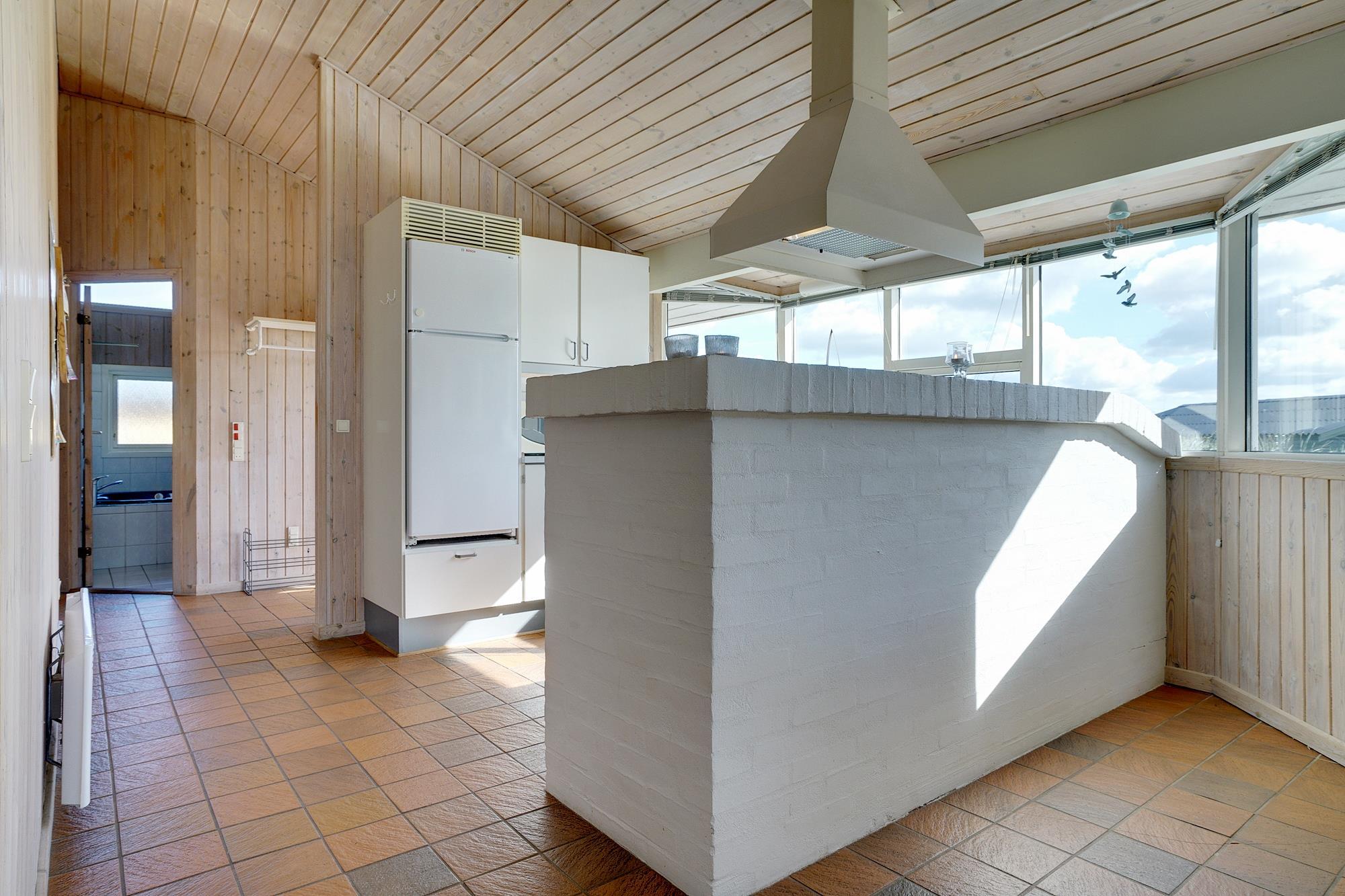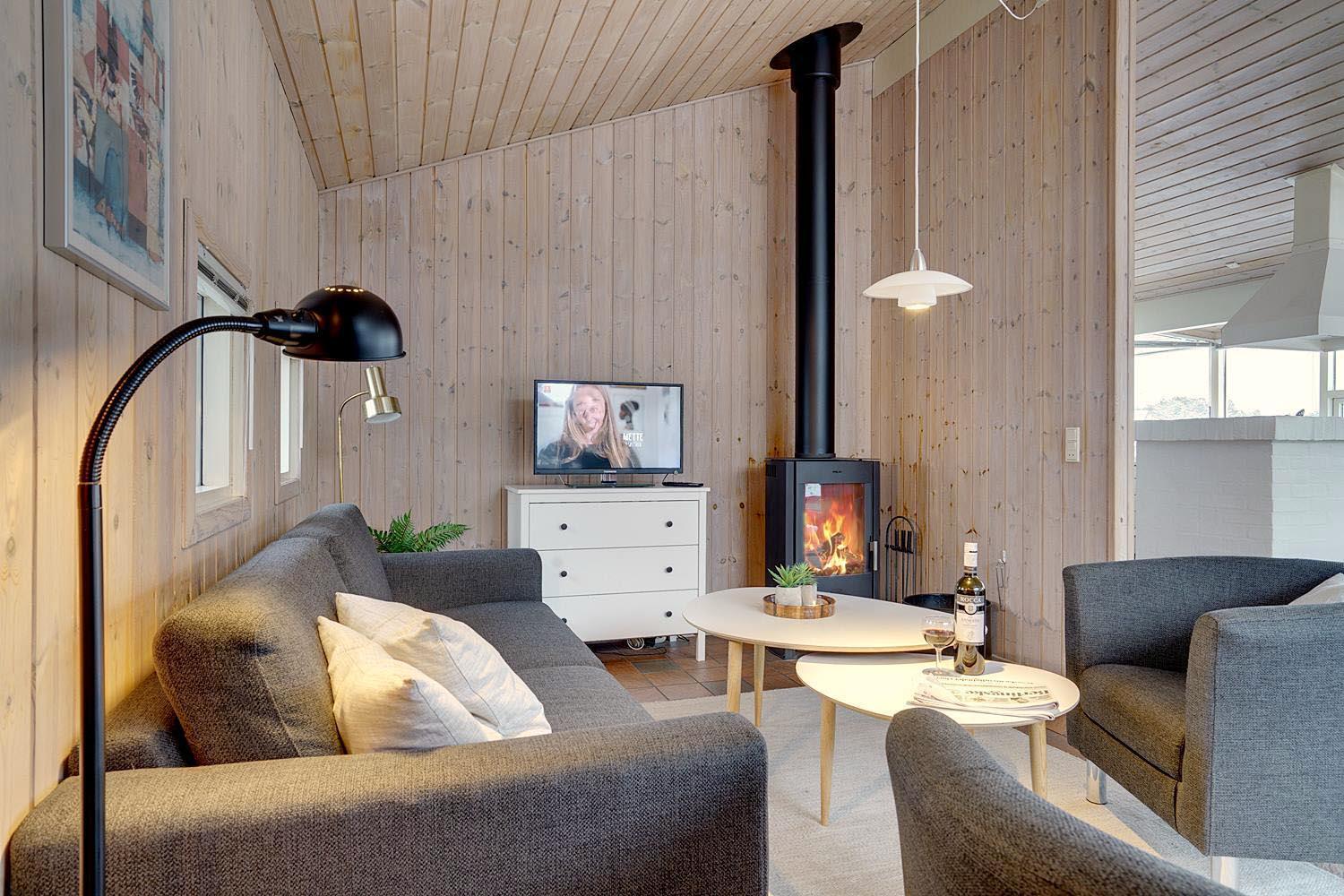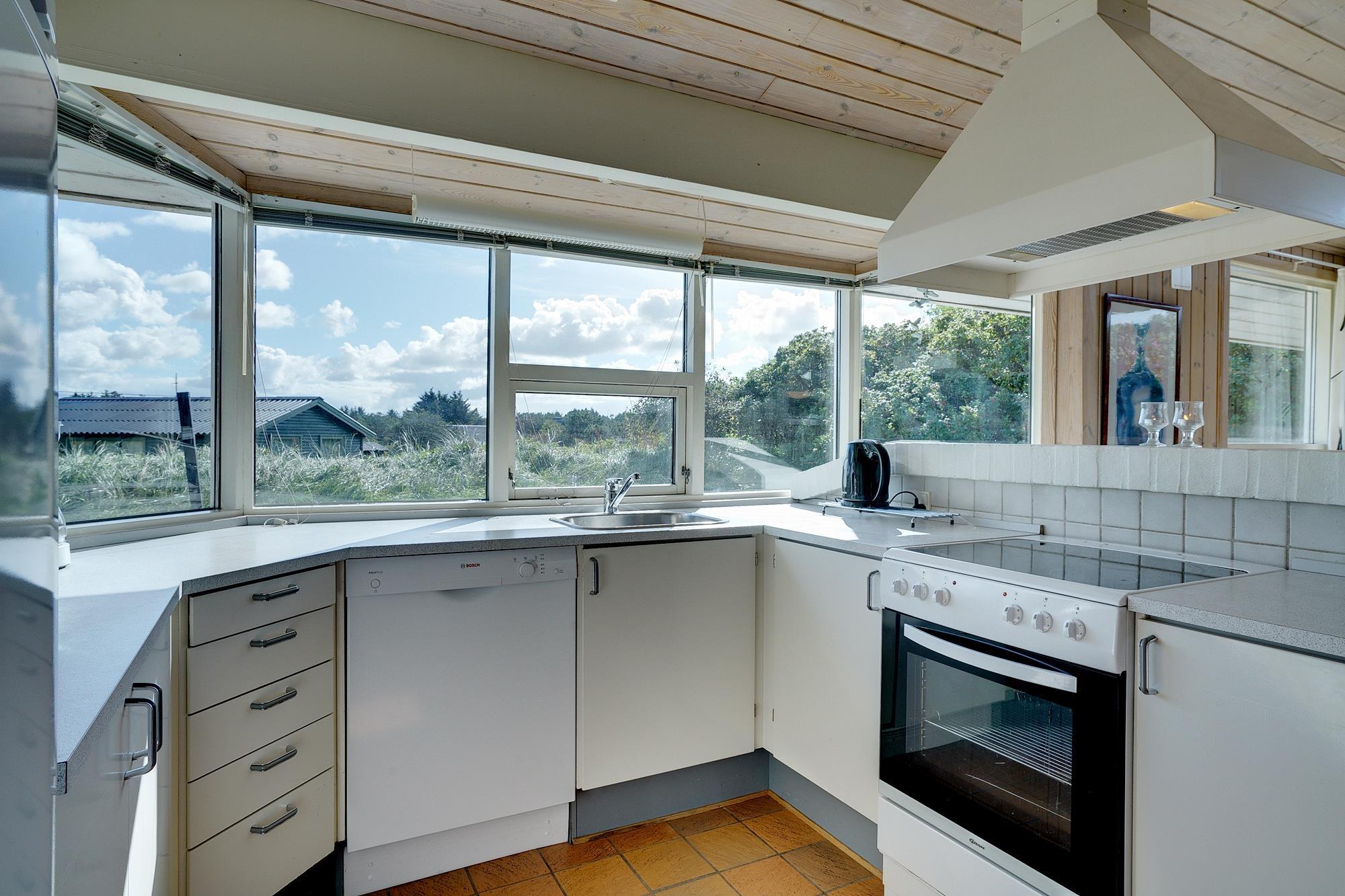 På en dejlig, ugeneret kuperet klitgrund på blind vej ikke langt fra Vesterhavet ligger dette velholdte feriehus. Huset fremstår lyst og venligt. Godt badeværelse med sauna. Fra stuen er der udgang til både delvis overdækket og åben terrasse.