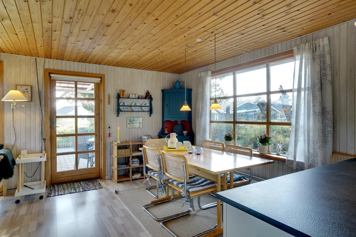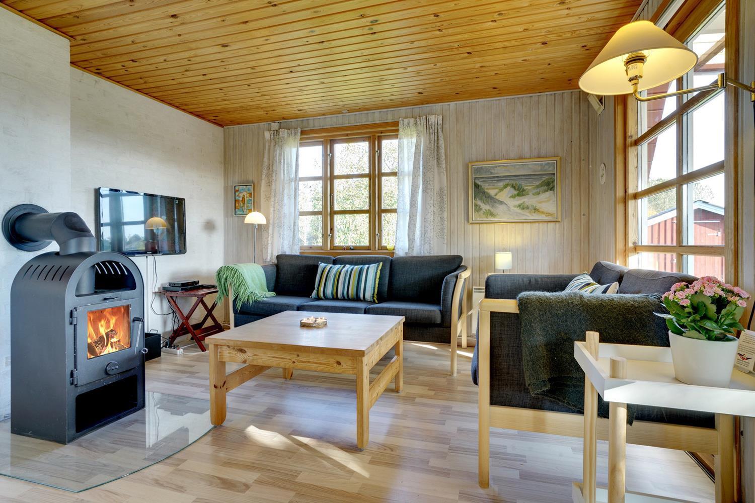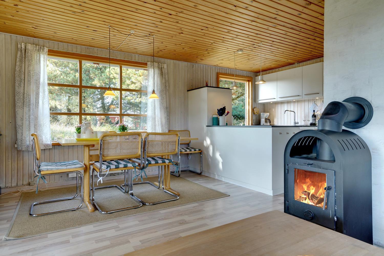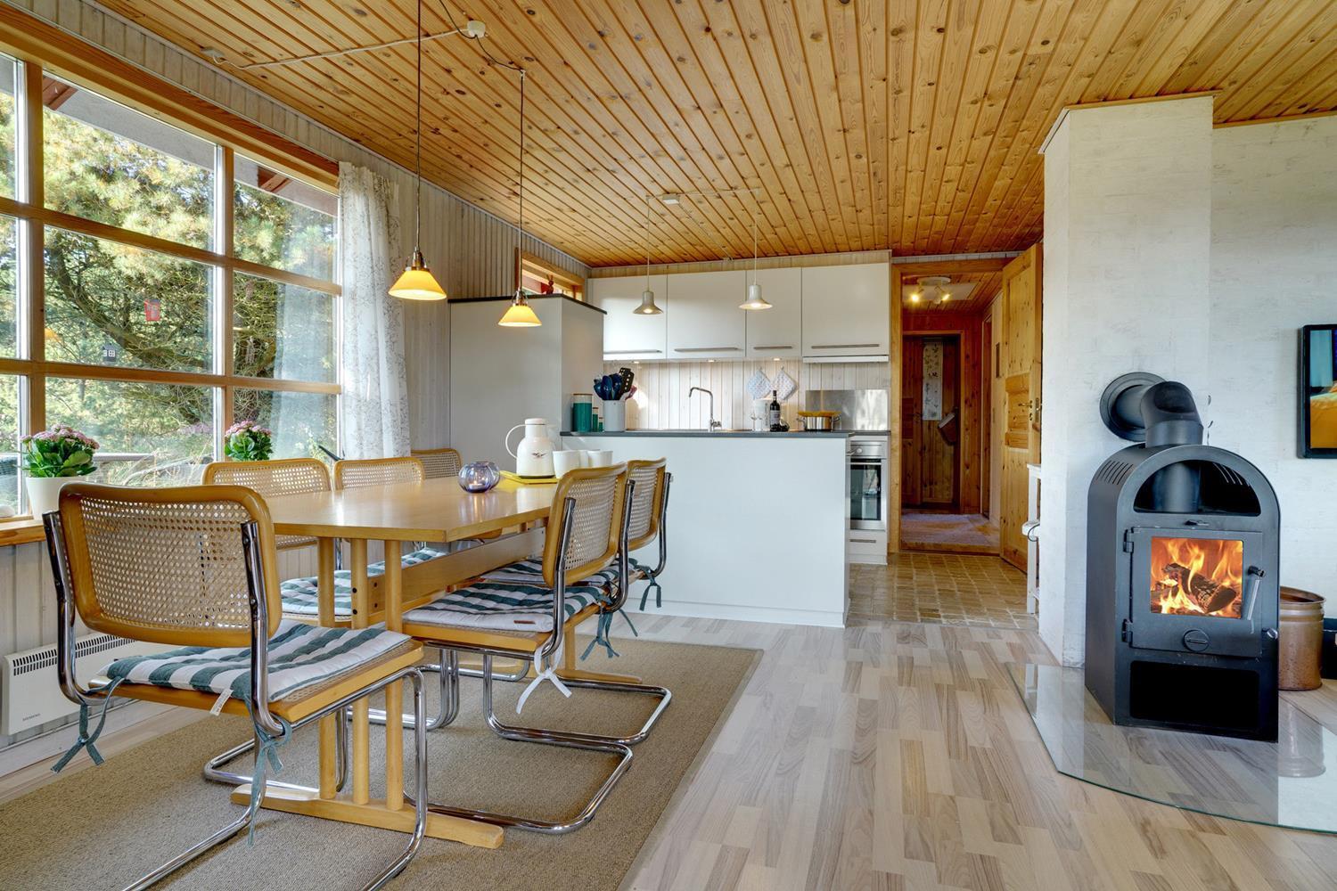Hyggeligt og velholdt feriehus beliggende på en lyngklædt naturgrund. Fra det ene soveværelse er der udgang til terrasse med fantastisk udsigt til fredet hede. Badeværelse fra 2018 med gulvvarme. Køkken i åben forbindelse med hyggelig stue.