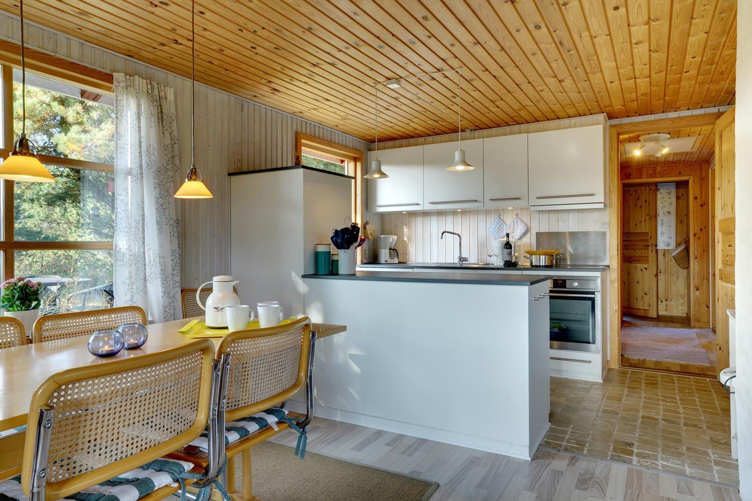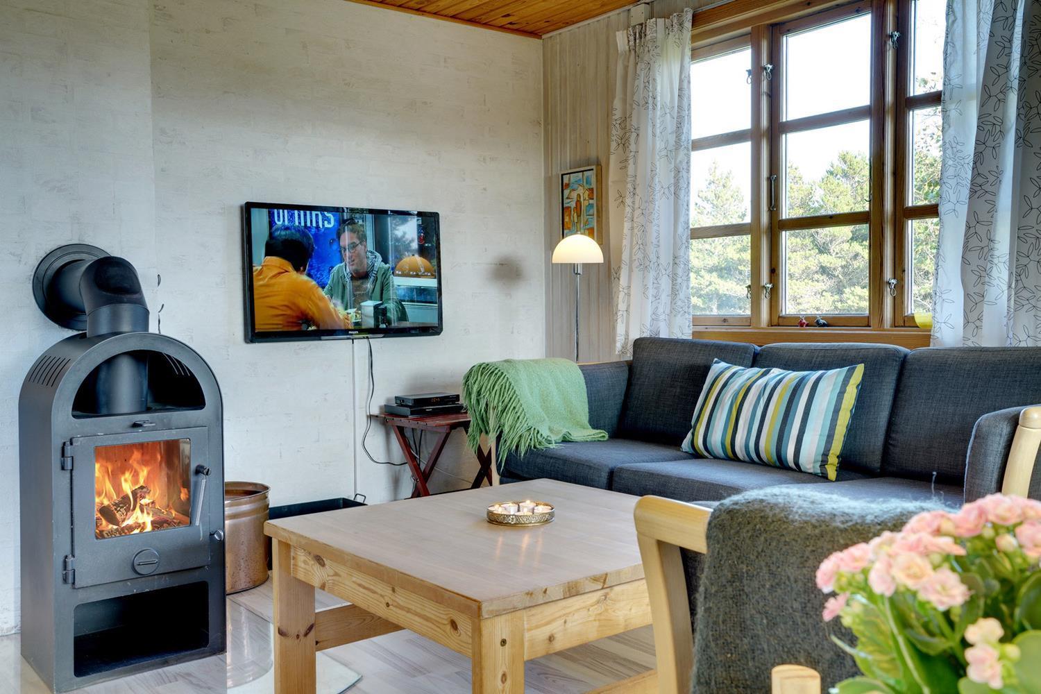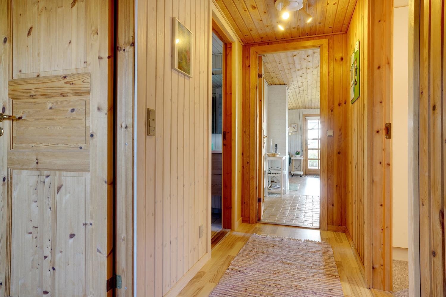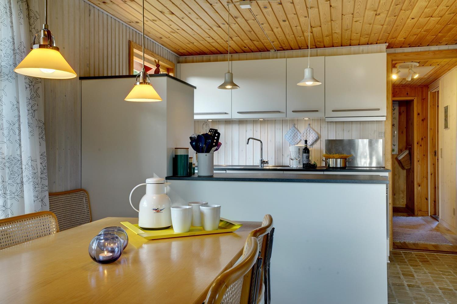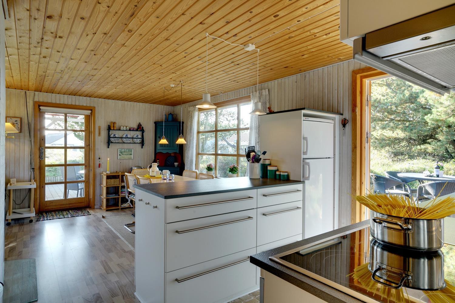 Hyggeligt og velholdt feriehus beliggende på en lyngklædt naturgrund. Fra det ene soveværelse er der udgang til terrasse med fantastisk udsigt til fredet hede. Badeværelse fra 2018 med gulvvarme. Køkken i åben forbindelse med hyggelig stue.