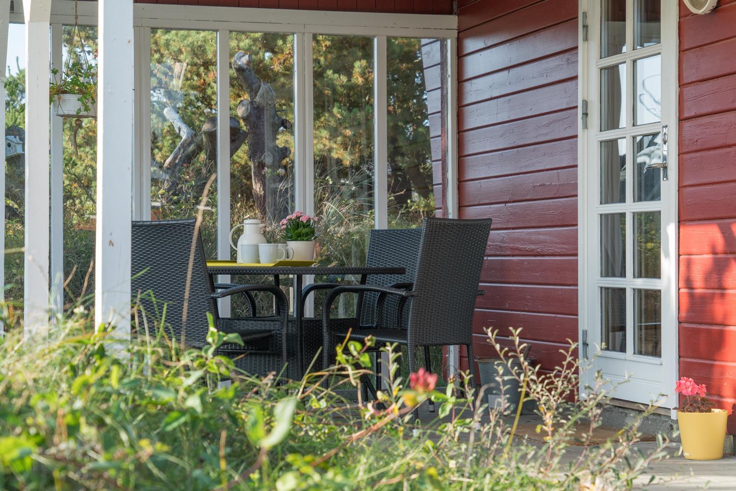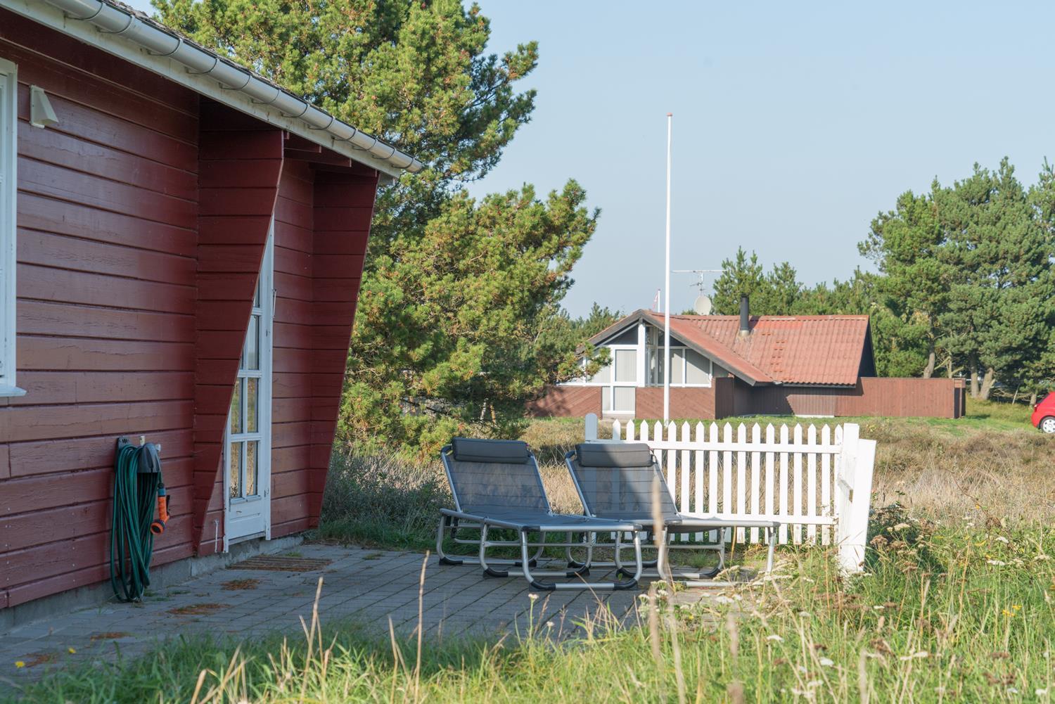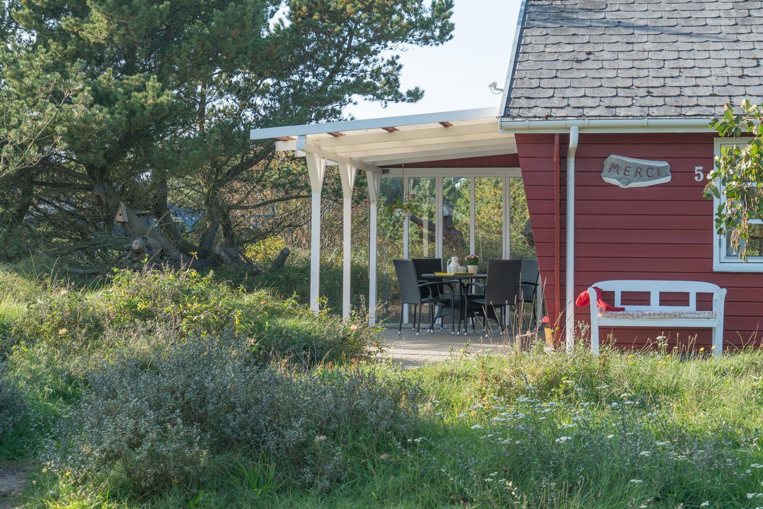 Hyggeligt feriehus på lyngklædt naturgrund med terrasse og udsigt til fredet hede, tæt på strand og indkøb.