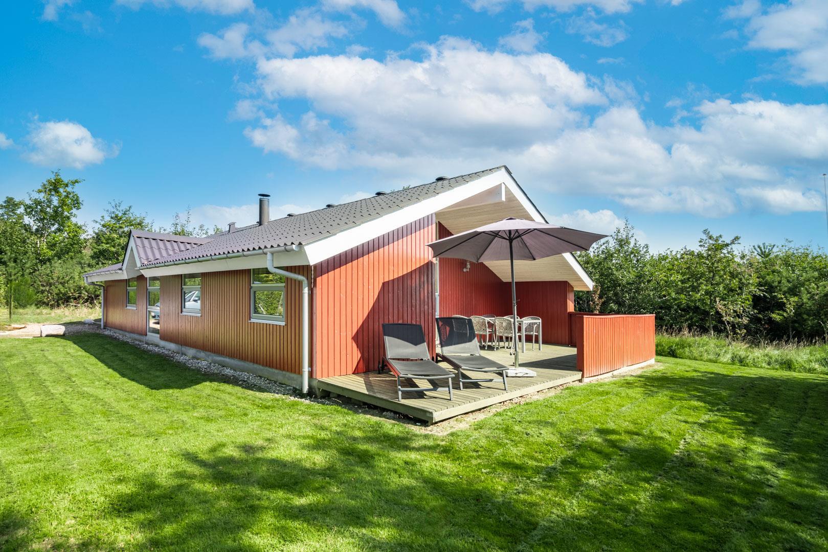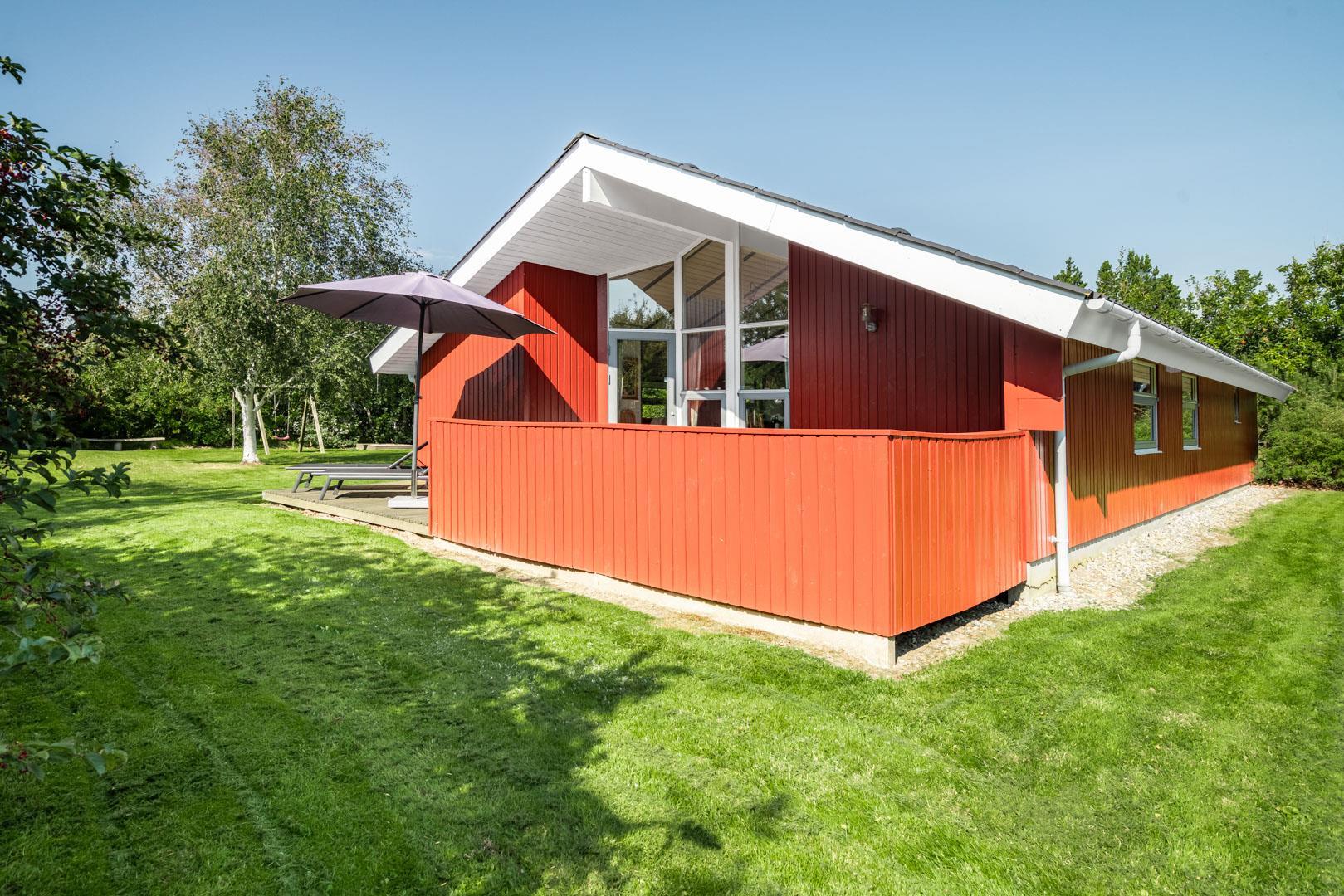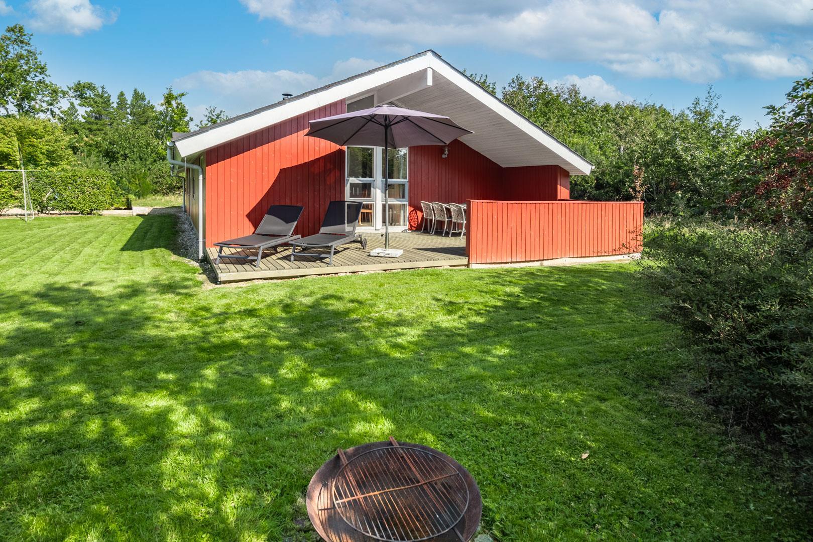 Flot og velholdt feriehus beliggende på en dejlig ugeneret naturgrund for enden af stikvej. Huset fremstår overalt meget velpasset og den hyggelig stue er indrettet med gode og pæne møbler. Huset råder over 3 værelser og et flot badeværelse med spa og sauna. Der er flere dejlige terrasser en er delvis overdækket. Grunden er meget børnevenlig, så børne kan rigtig boltre sig.