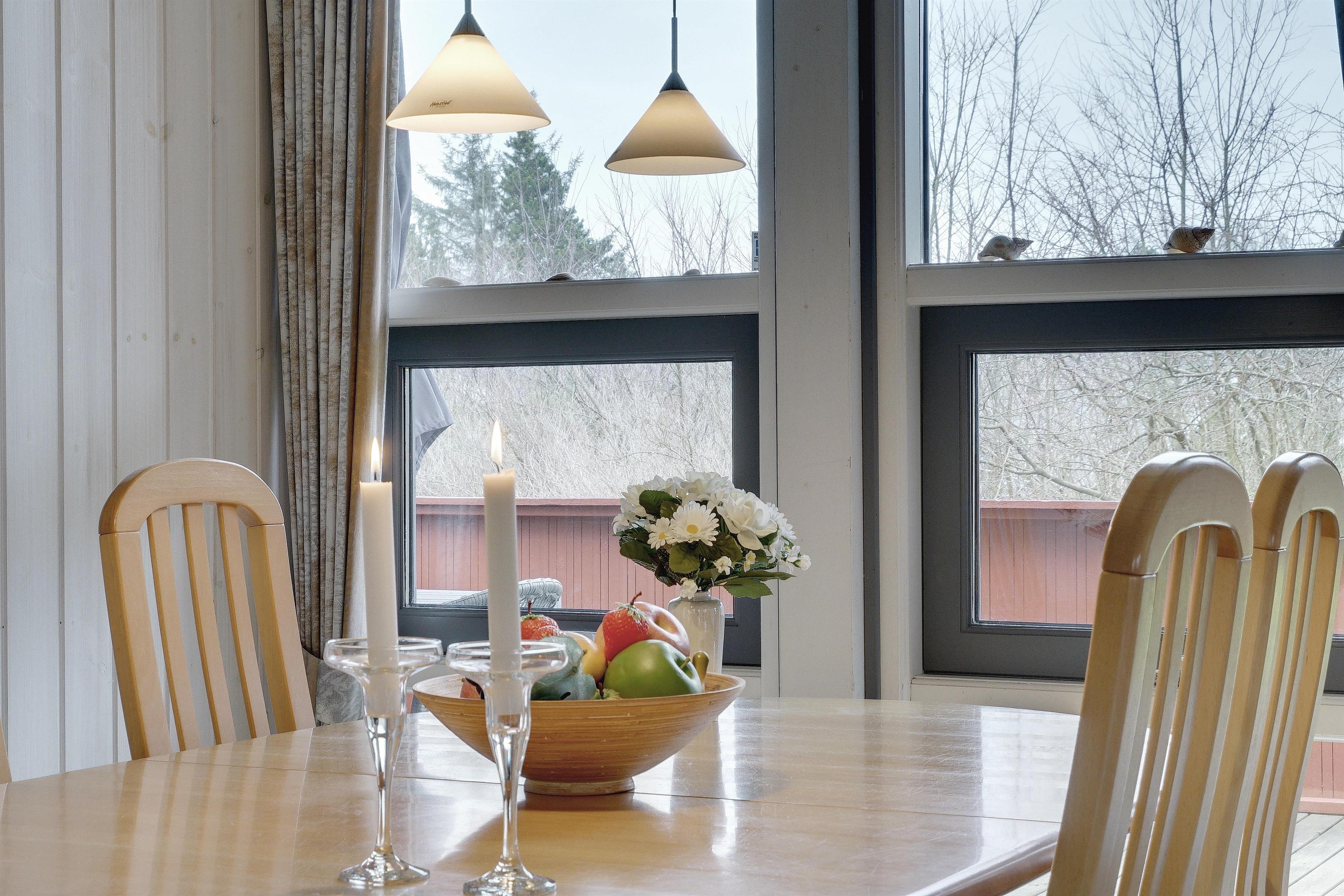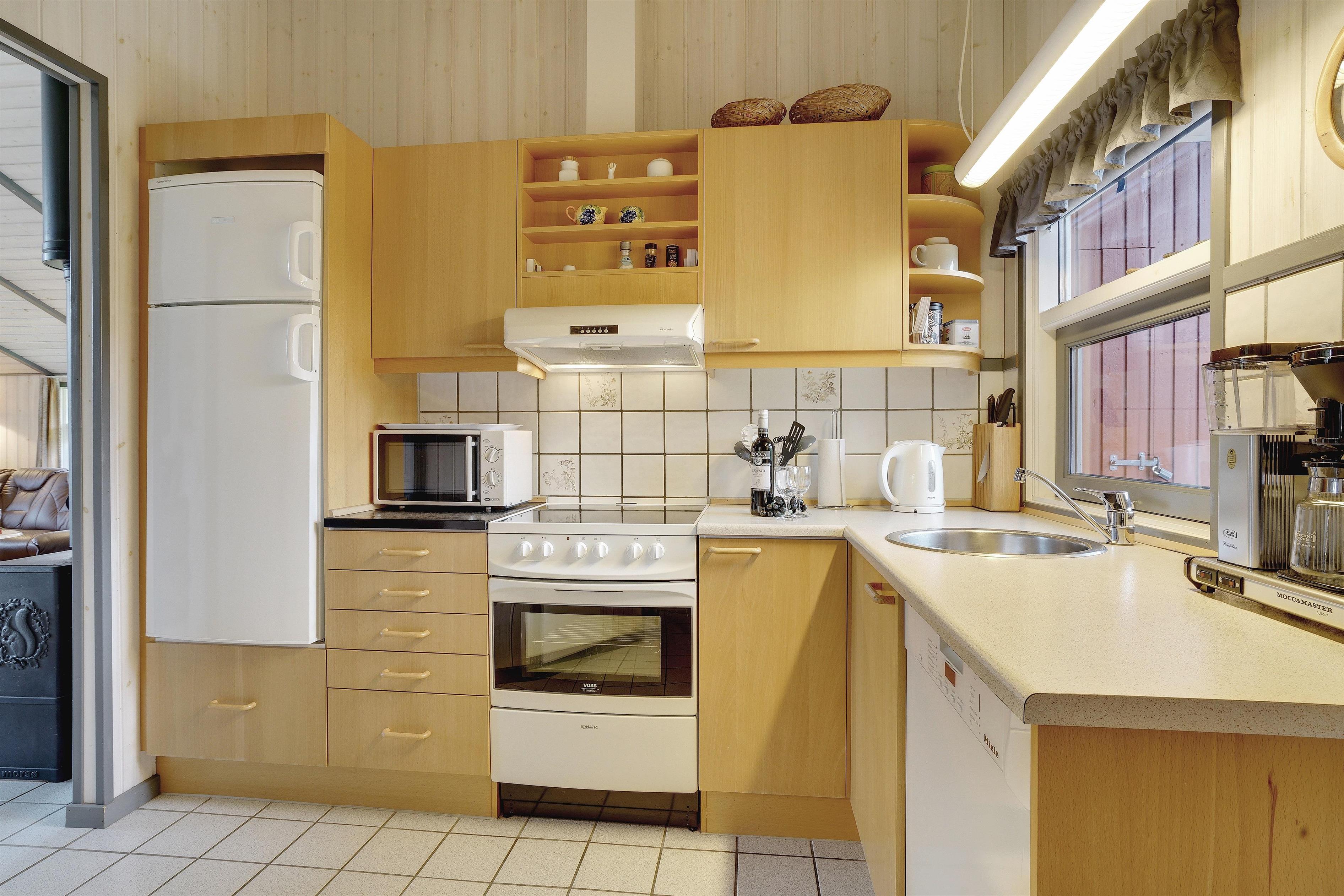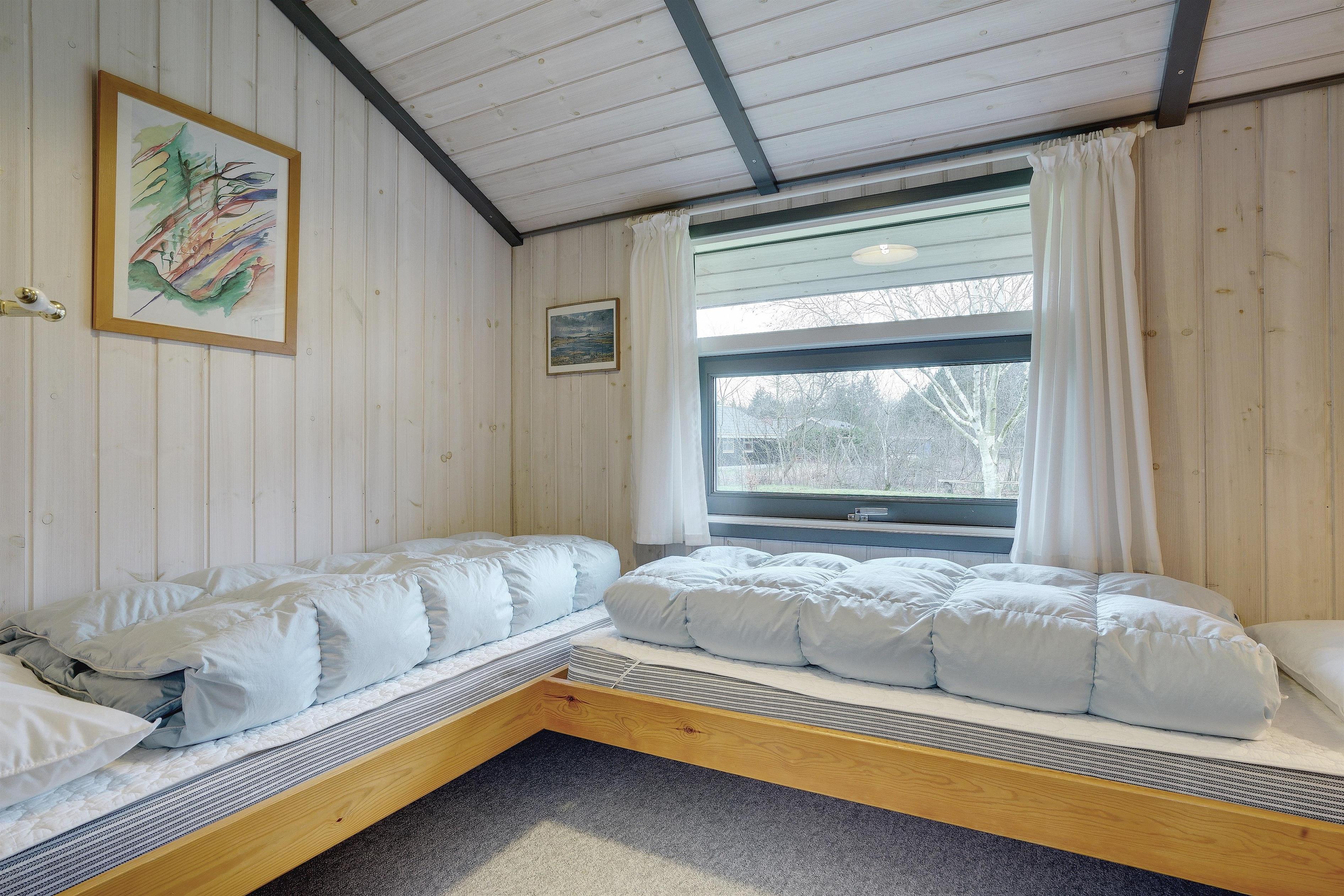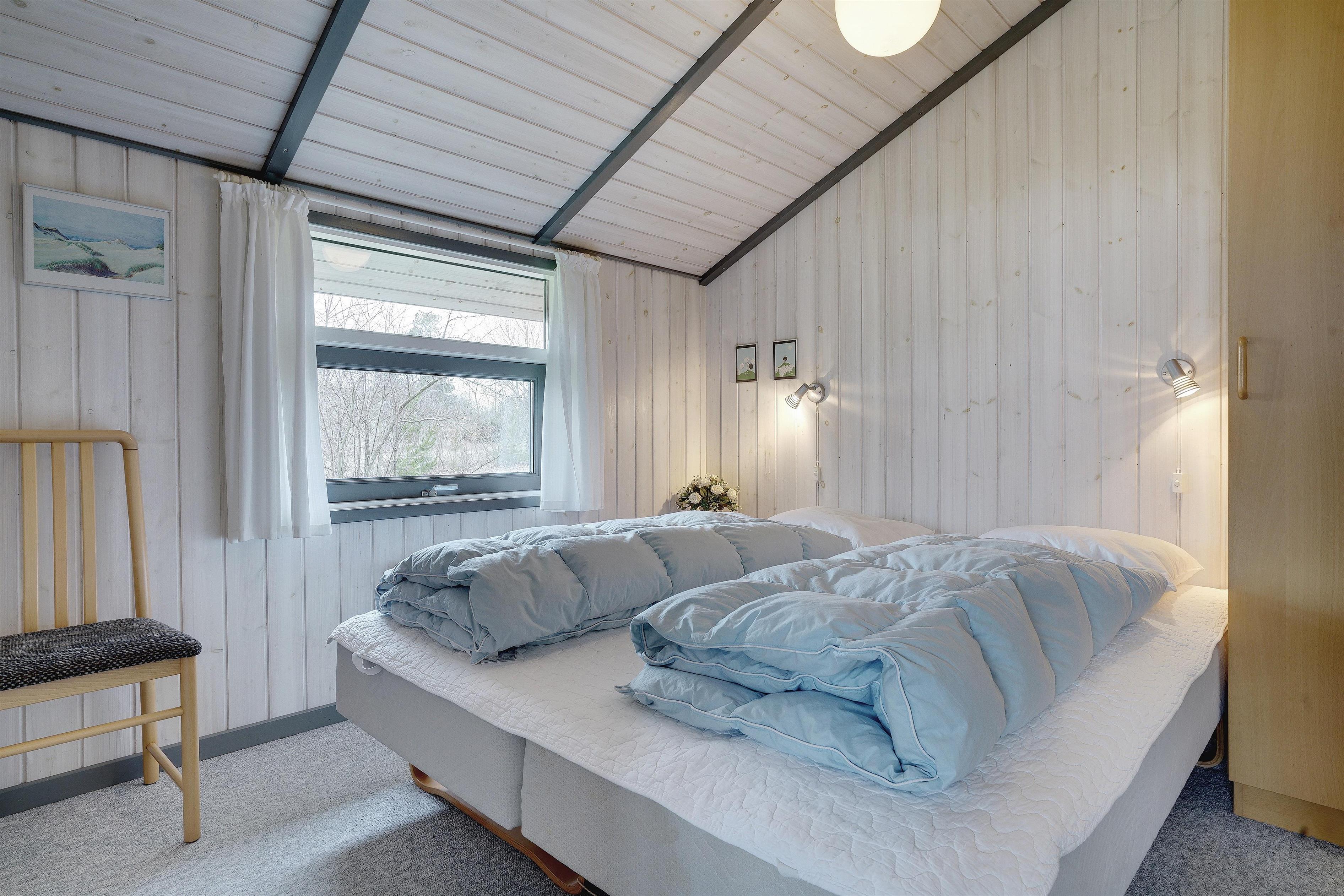 Flot og velholdt feriehus beliggende på en dejlig ugeneret naturgrund for enden af stikvej. Huset fremstår overalt meget velpasset og den hyggelig stue er indrettet med gode og pæne møbler. Huset råder over 3 værelser og et flot badeværelse med spa og sauna. Der er flere dejlige terrasser en er delvis overdækket. Grunden er meget børnevenlig, så børne kan rigtig boltre sig.