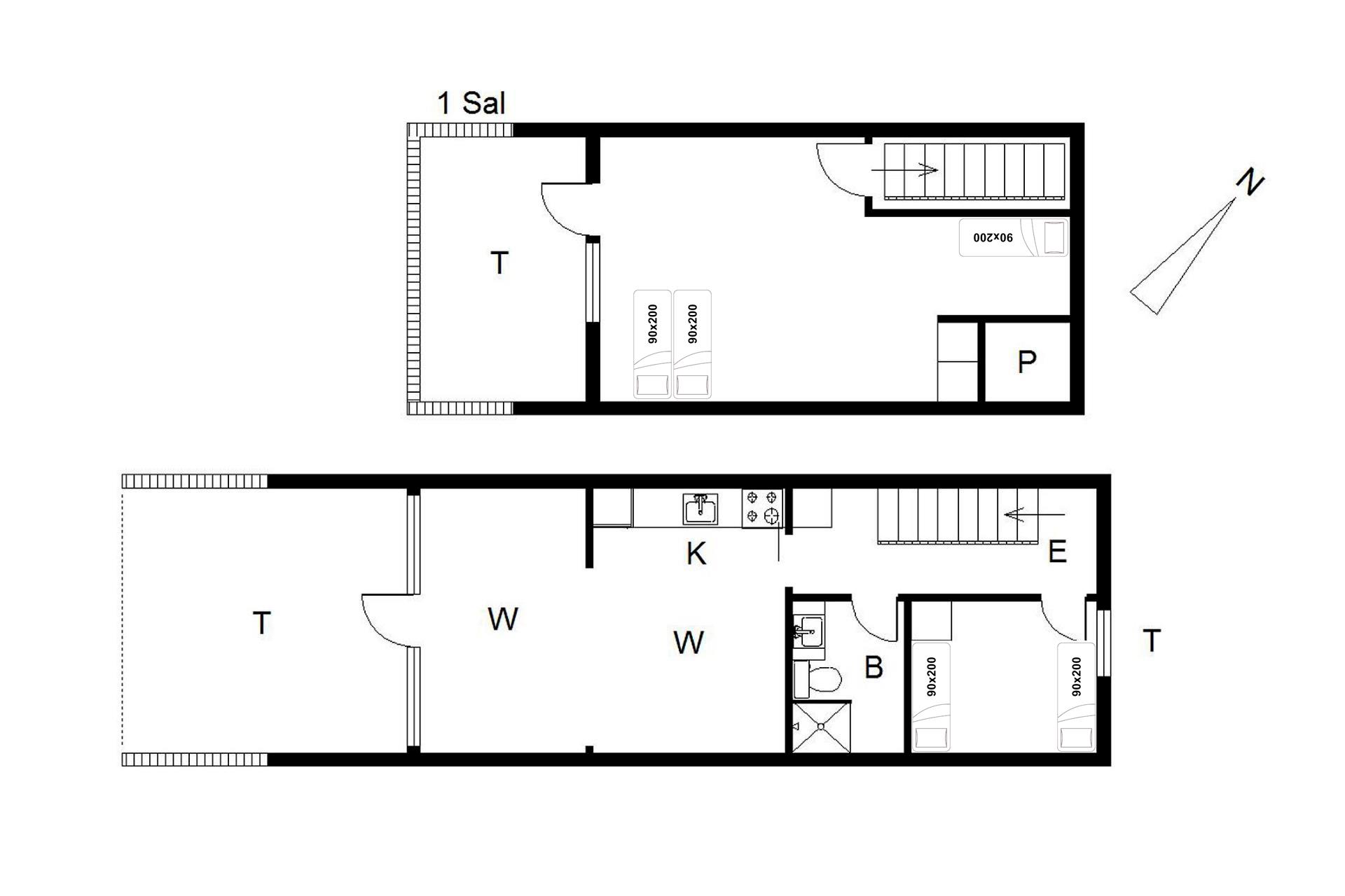 Sengestørrelse: 1 dobbeltseng med 2 madrasser 90 x 200 cm + 3 enkeltsenge 90 x 200 cm.