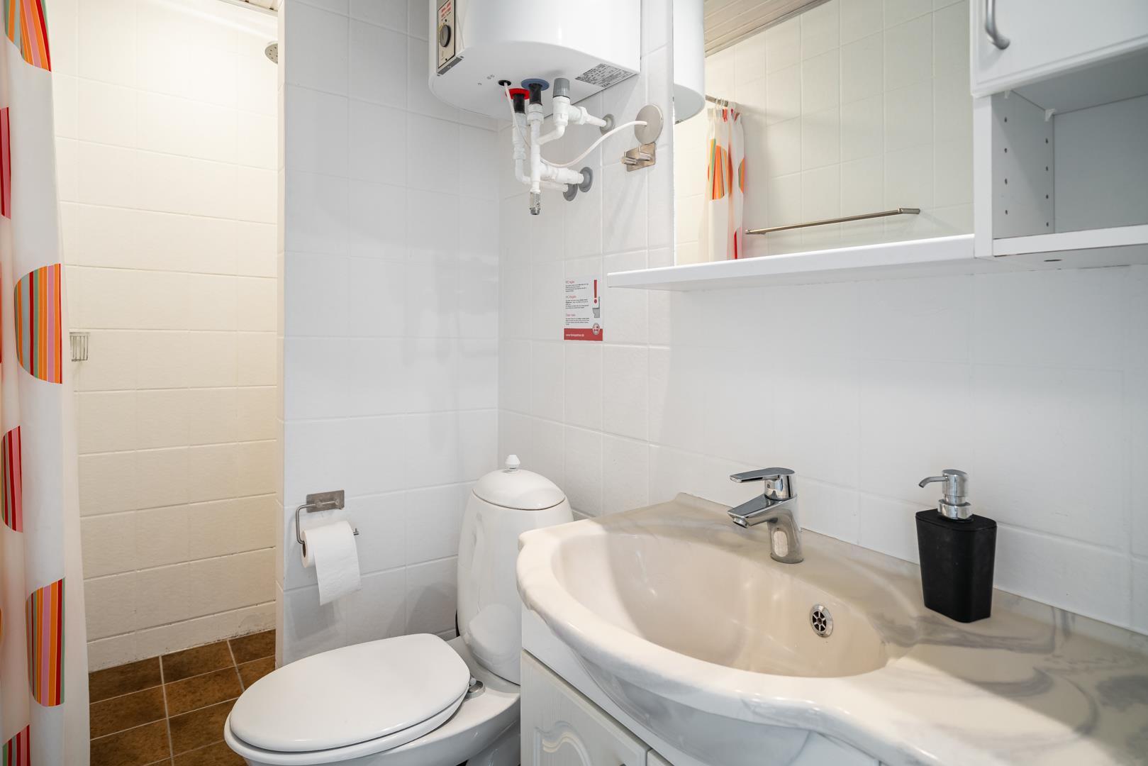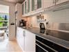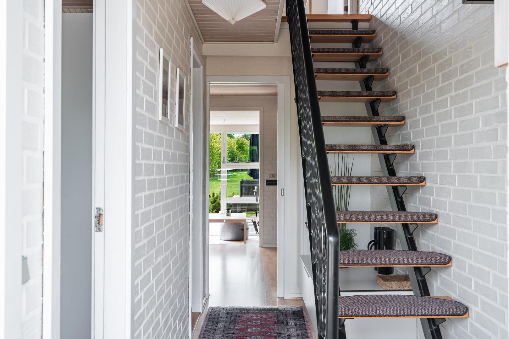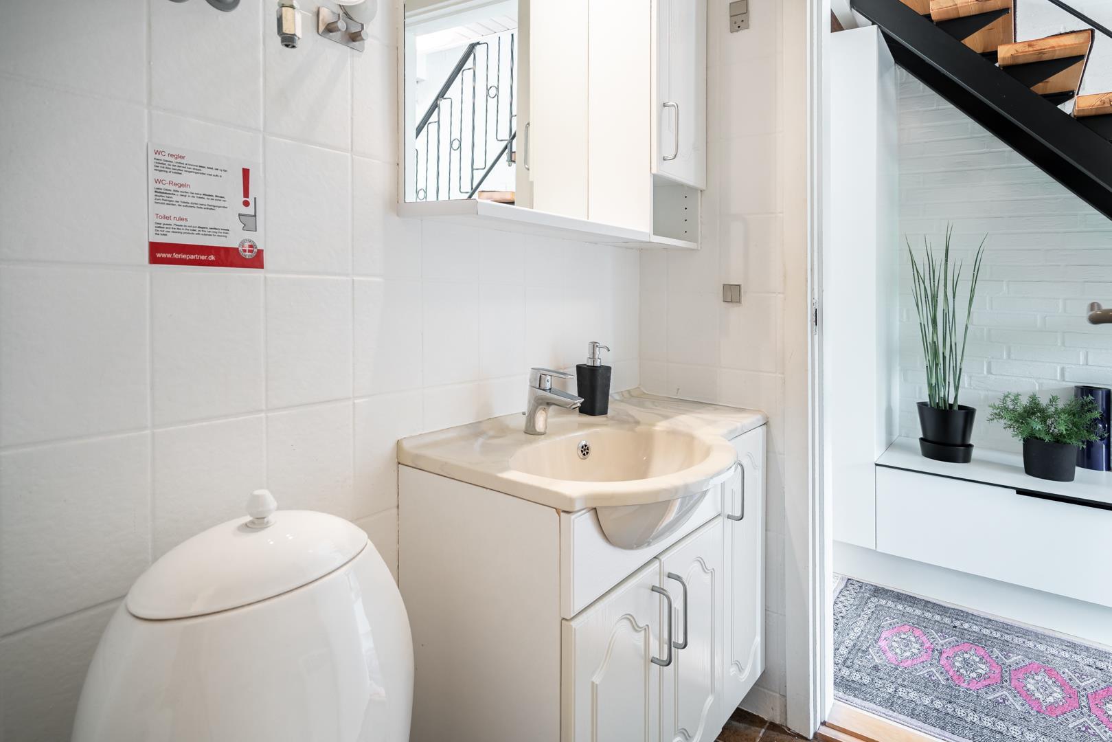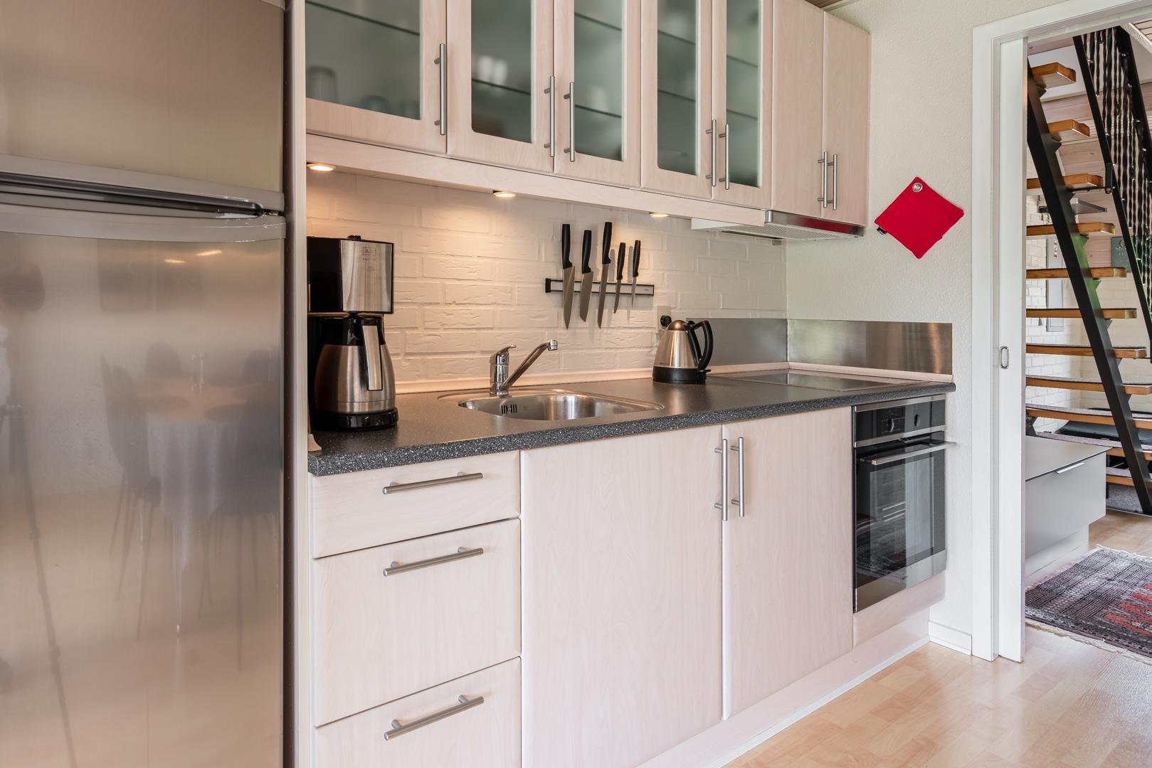 I stueplan ligger lejlighedens veludstyrede køkken, som er åbent forbundet med den hyggelige stue – et skønt samlingspunkt for måltider og afslapning. Herfra er der udgang til en dejlig terrasse med havemøbler og grill, perfekt til hyggelige sommeraftener i det fri. Derudover rummer stueplan også et soveværelse samt et moderne badeværelse.