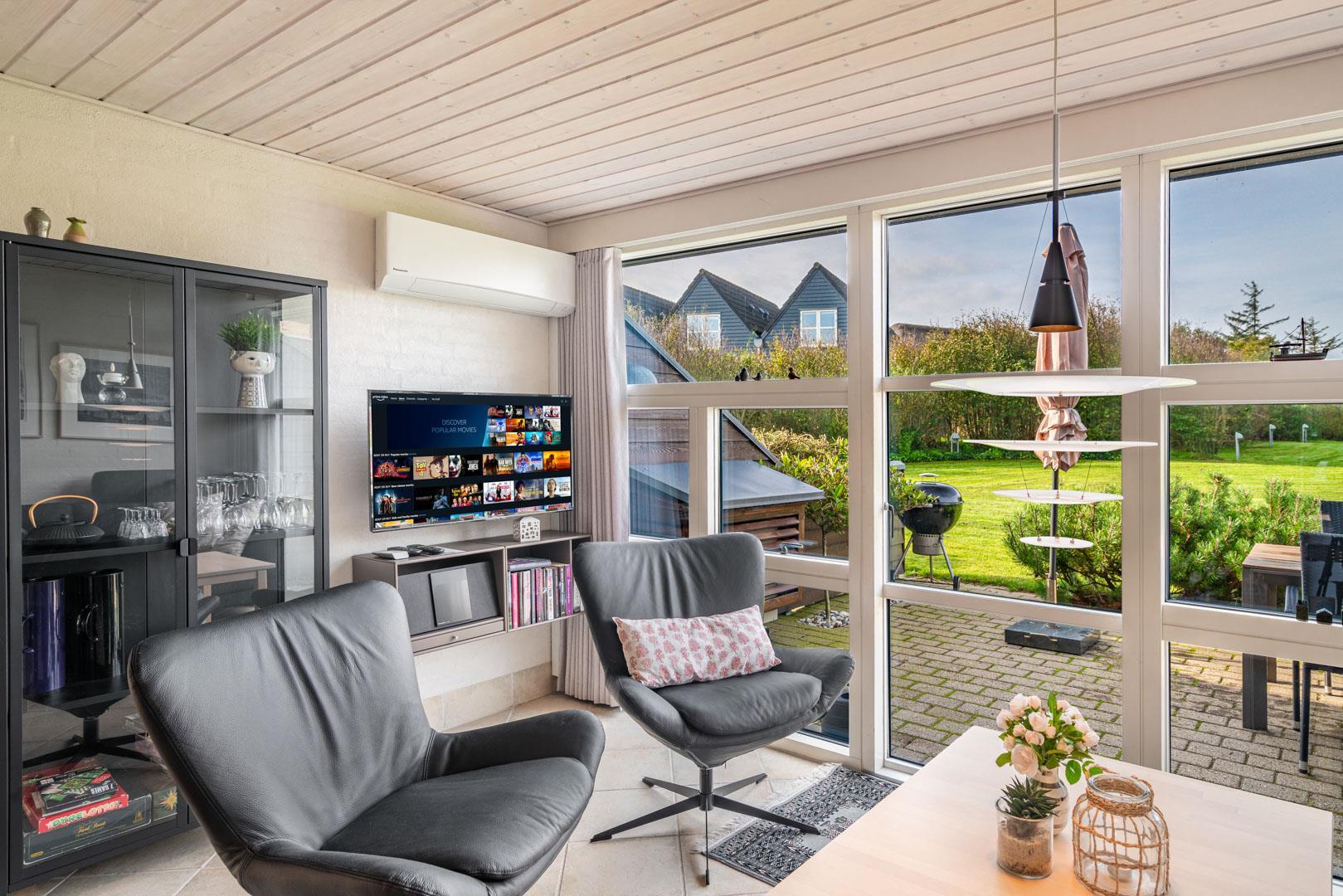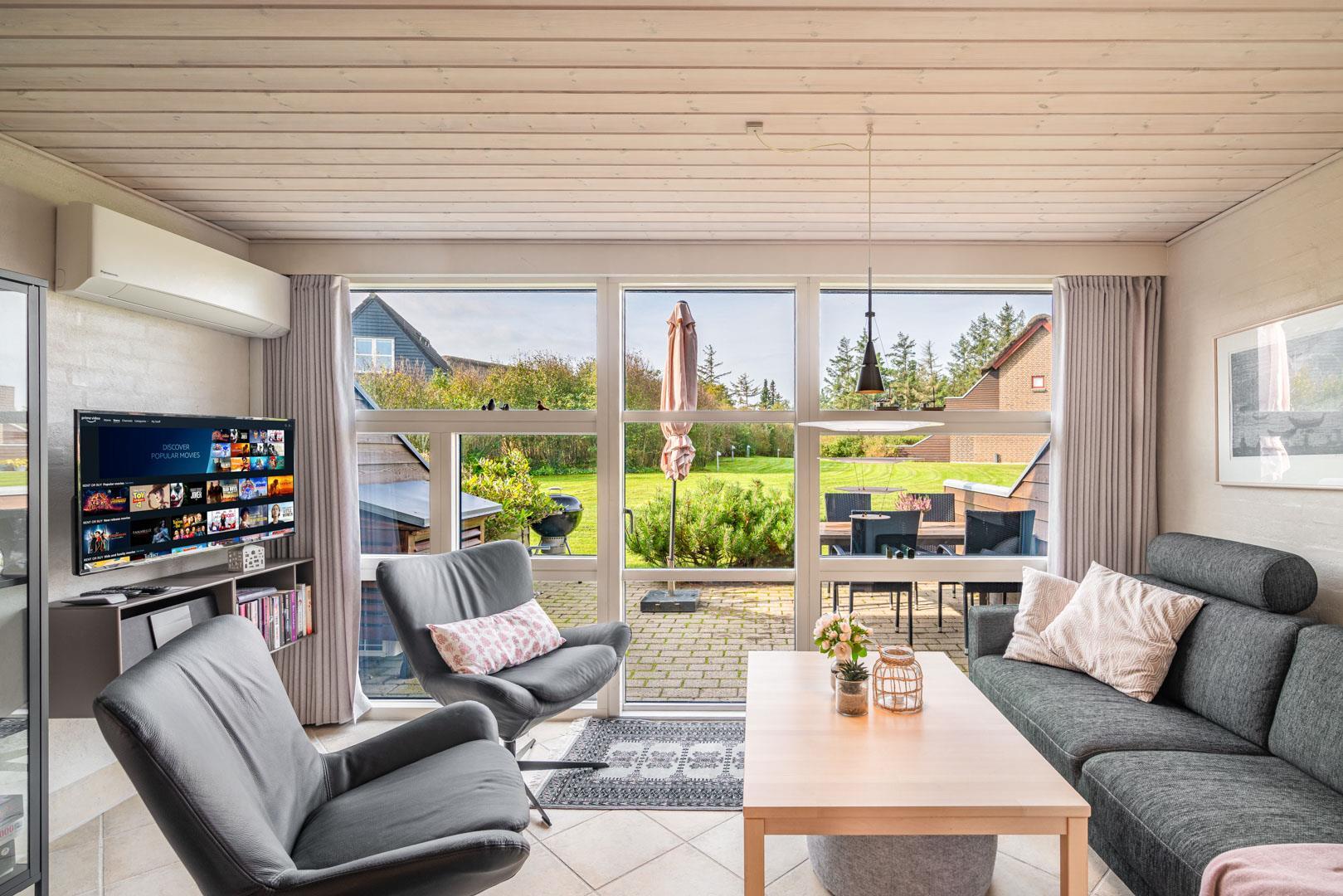 Drømmer du om en ferie, hvor komfort og naturoplevelser går hånd i hånd? Denne smagfuldt indrettede ferielejlighed, ikke langt fra Henne Strand og Vesterhavet, er den perfekte base for både afslapning og aktive eventyr. Med en unik beliggenhed lige ud til golfbanen, hvor der kan spilles til sommergreens året rundt, og tæt på Blåbjerg Plantages populære mountainbike-spor samt flere naturskønne vandreruter, er lejligheden ideel for naturelskere og aktive feriegæster.