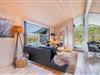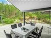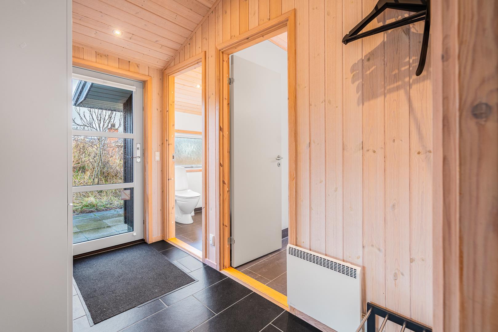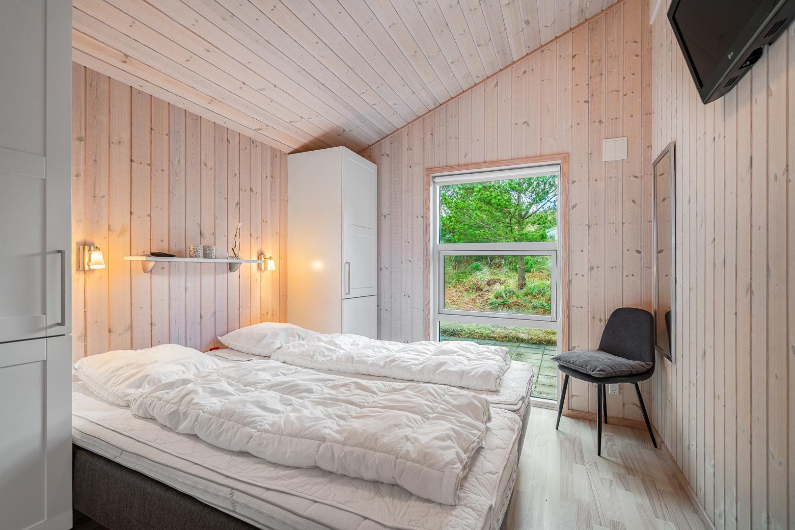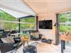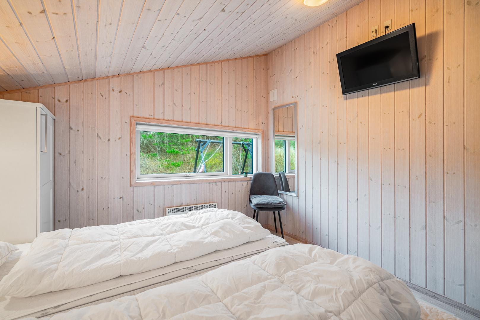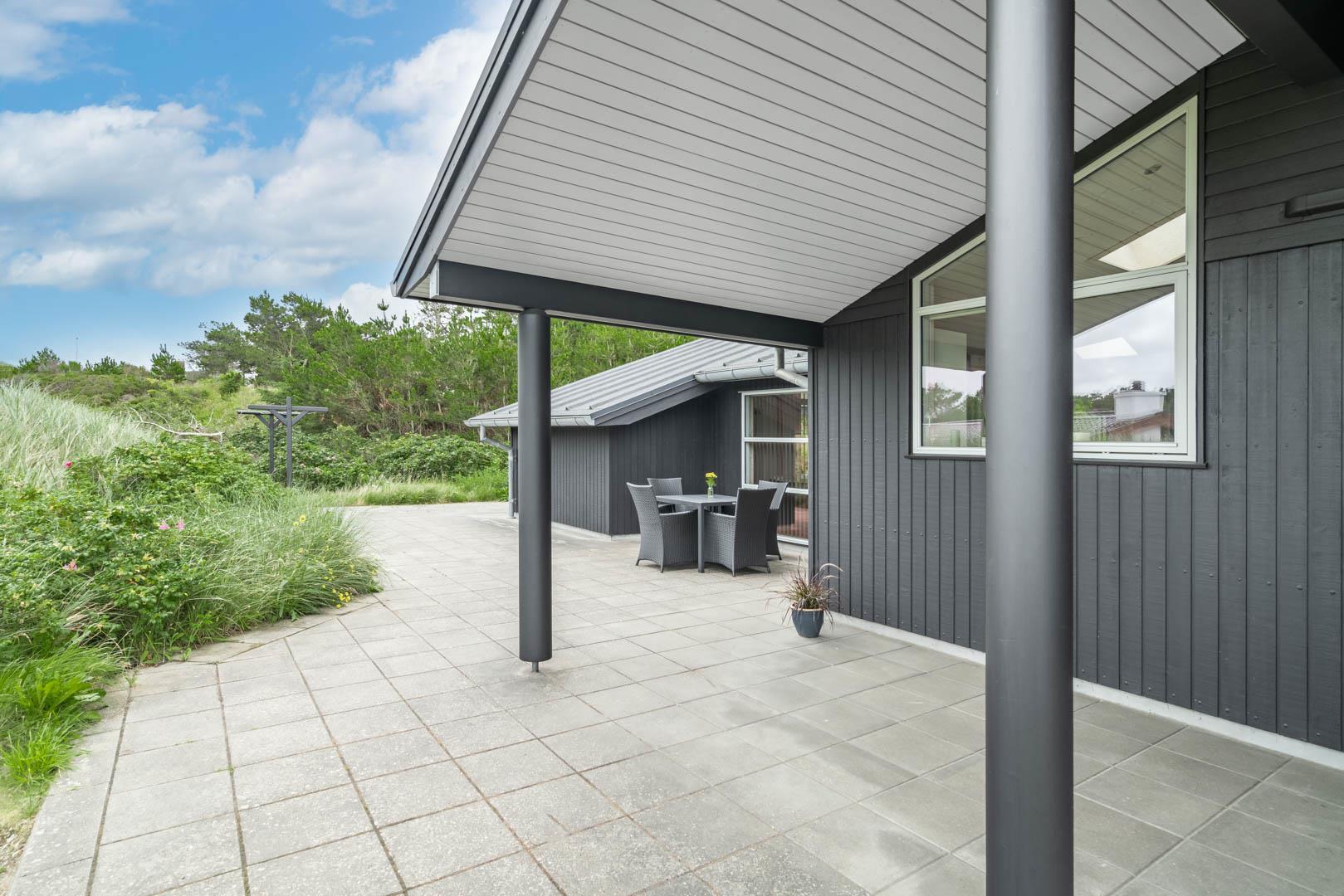 Omkring hele sommerhuset finder du terrasser, så du kan nyde solen fra morgen til aften. Den overdækkede terrasse gør det muligt at grille og hygge udendørs, uanset vejret. På grunden er der også tænkt på de yngste feriegæster, som kan boltre sig på gyngestativet eller bygge sandslotte i sandkassen.