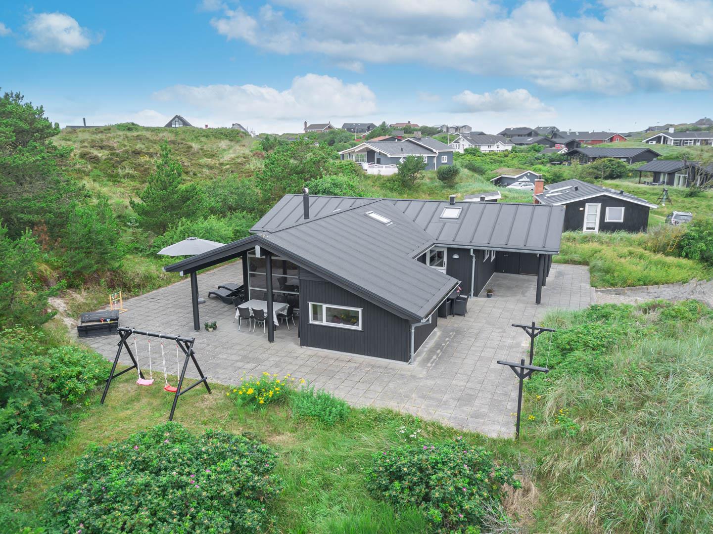 Velkommen til dette moderne og stilfulde feriehus på Blåbærvej 14 i Henne Strand, hvor alt er skabt til en afslappende og mindeværdig ferie. Sommerhuset ligger på en pragtfuld og ugeneret grund, kun kort afstand fra Vesterhavet, og byder på både komfort og luksus i naturskønne omgivelser.