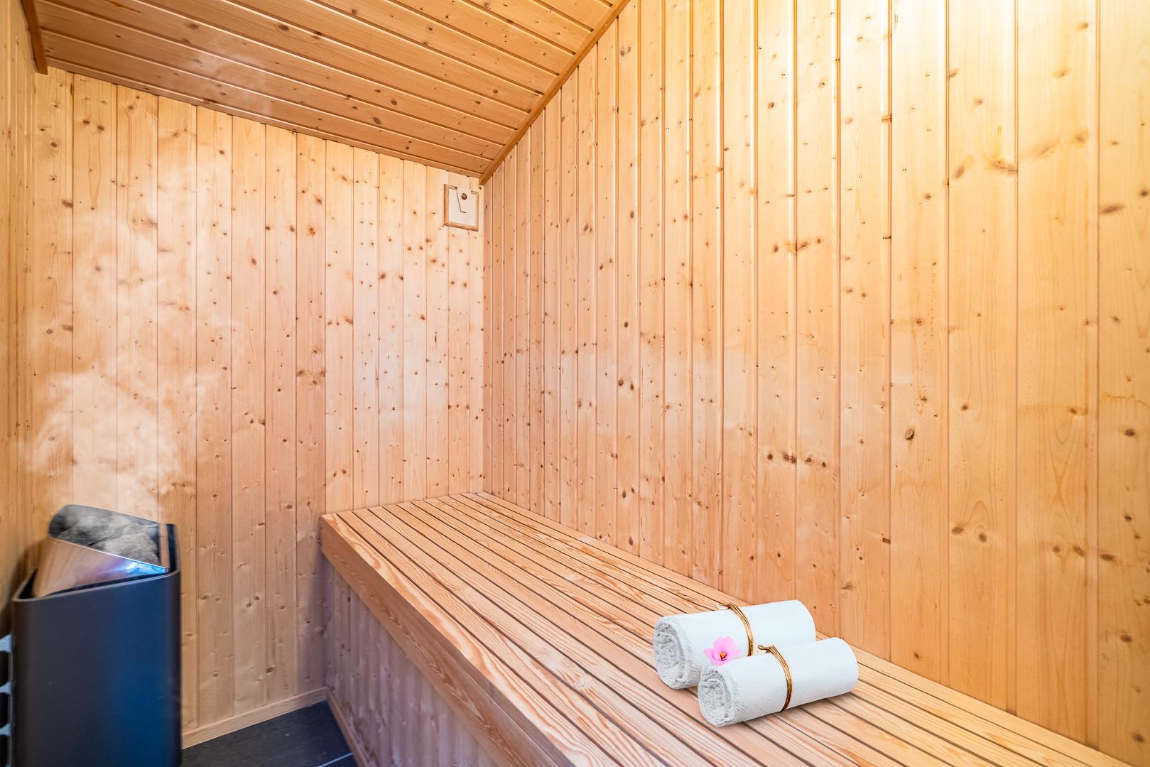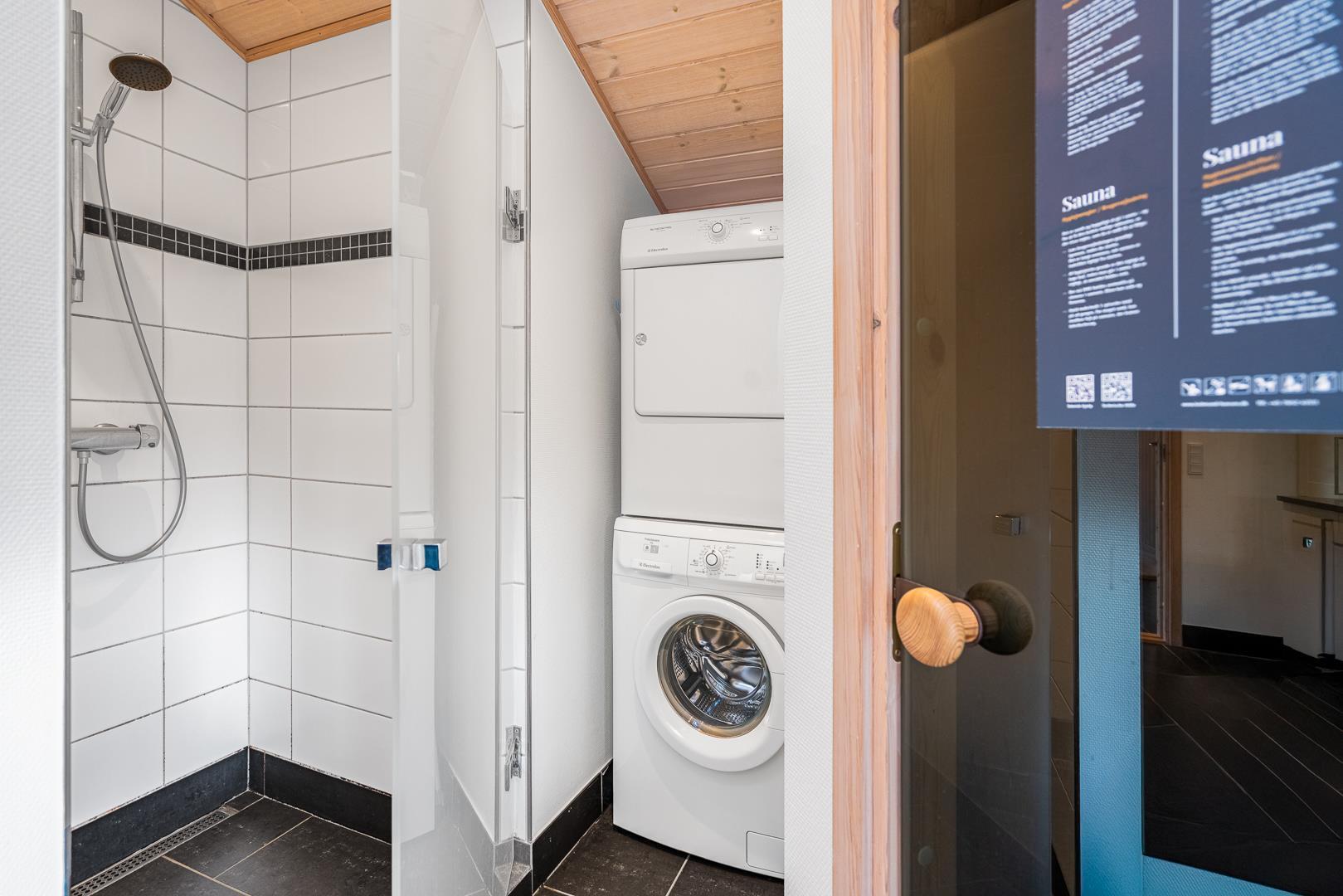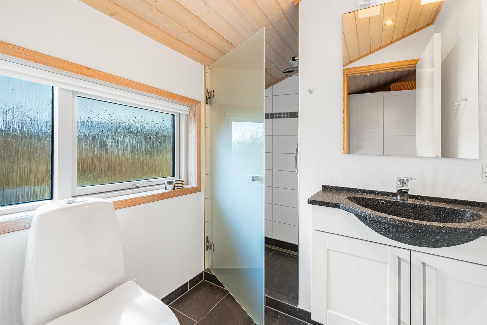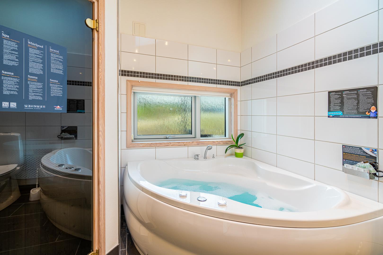Feriehuset har hele to badeværelser med bruser, hvoraf det ene er udstyret med både spa og sauna – perfekte rammer for total afslapning efter en dag ved stranden eller på eventyr i området.