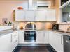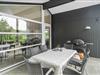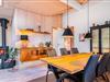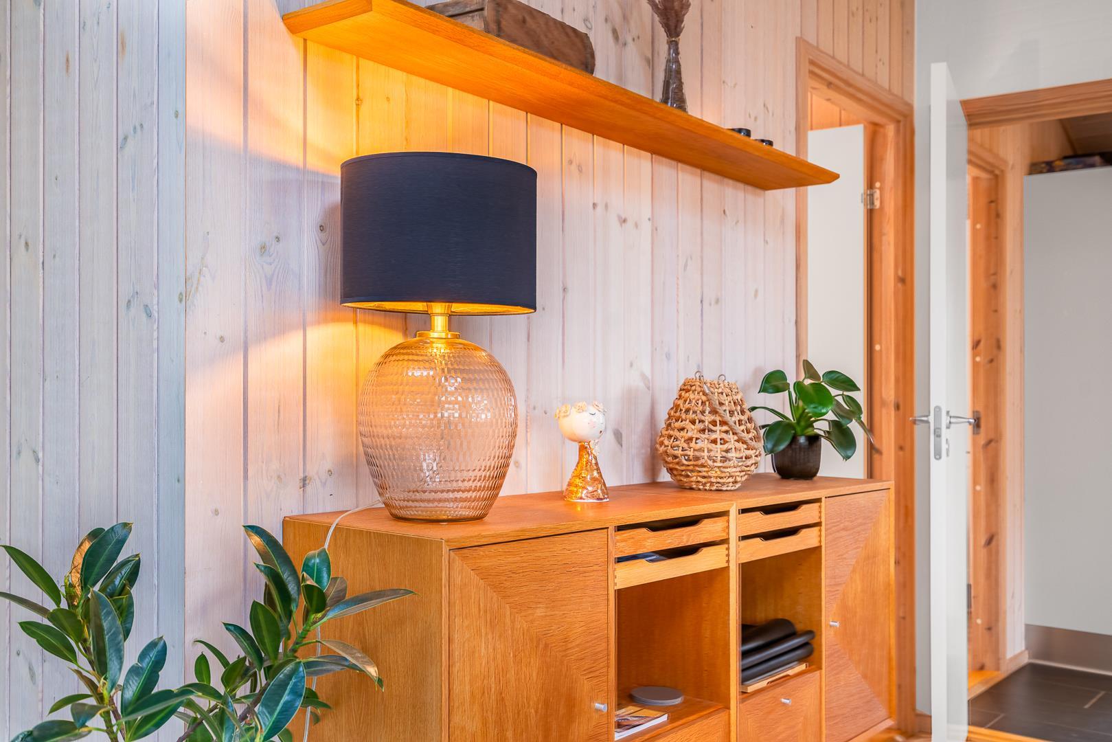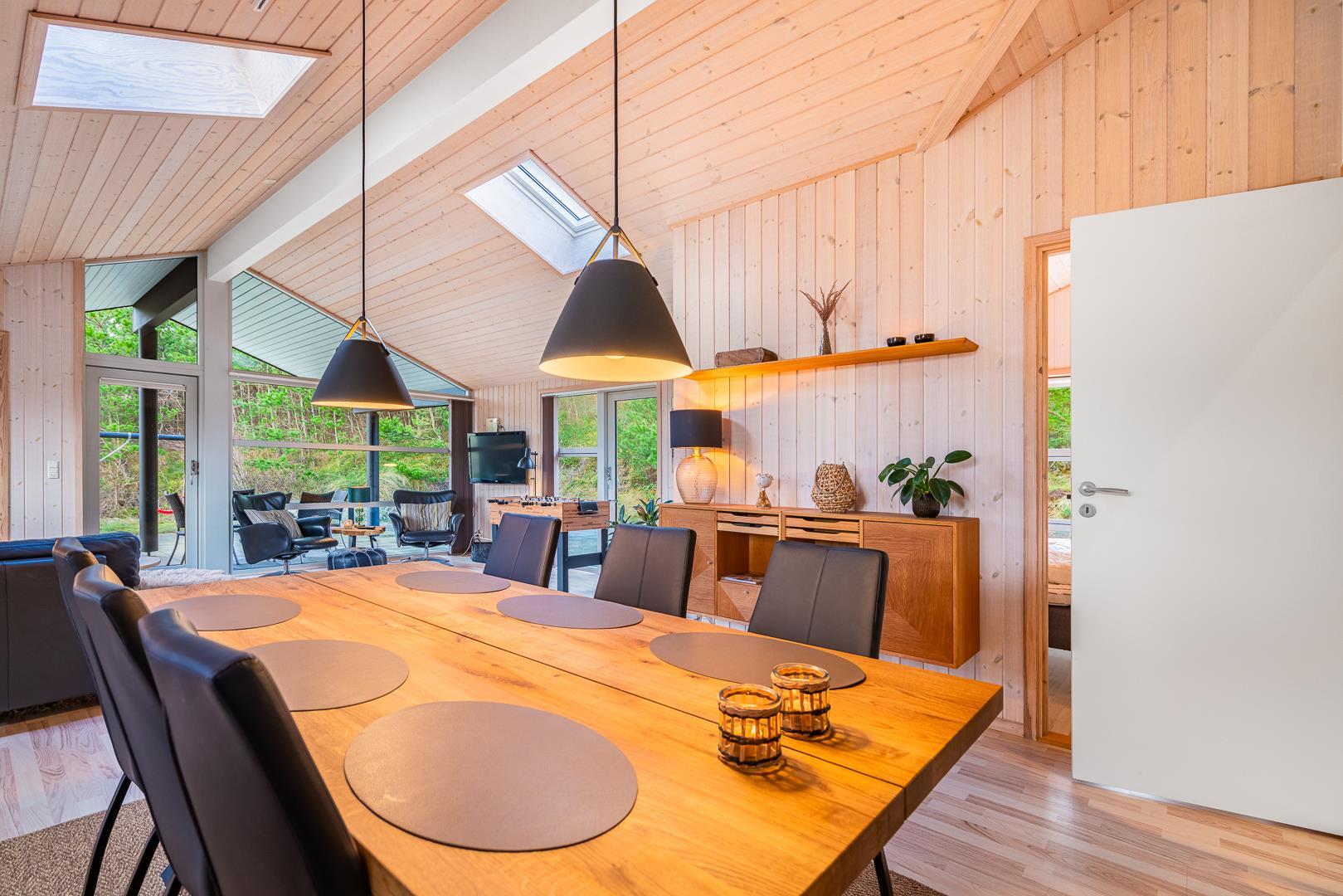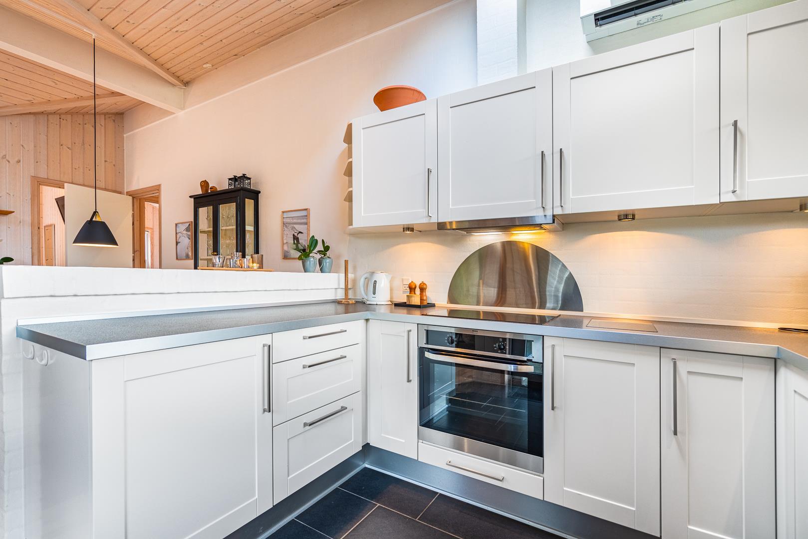 Husets hjerte er det åbne køkken-alrum, der er kombineret med den rummelige og smagfuldt indrettede stue. Møblerne er af høj kvalitet, og de store vinduespartier lader dagslyset strømme ind, hvilket skaber en lys og behagelig atmosfære. Brændeovnen sørger for varme og hygge på de køligere dage, så du altid føler dig hjemme.