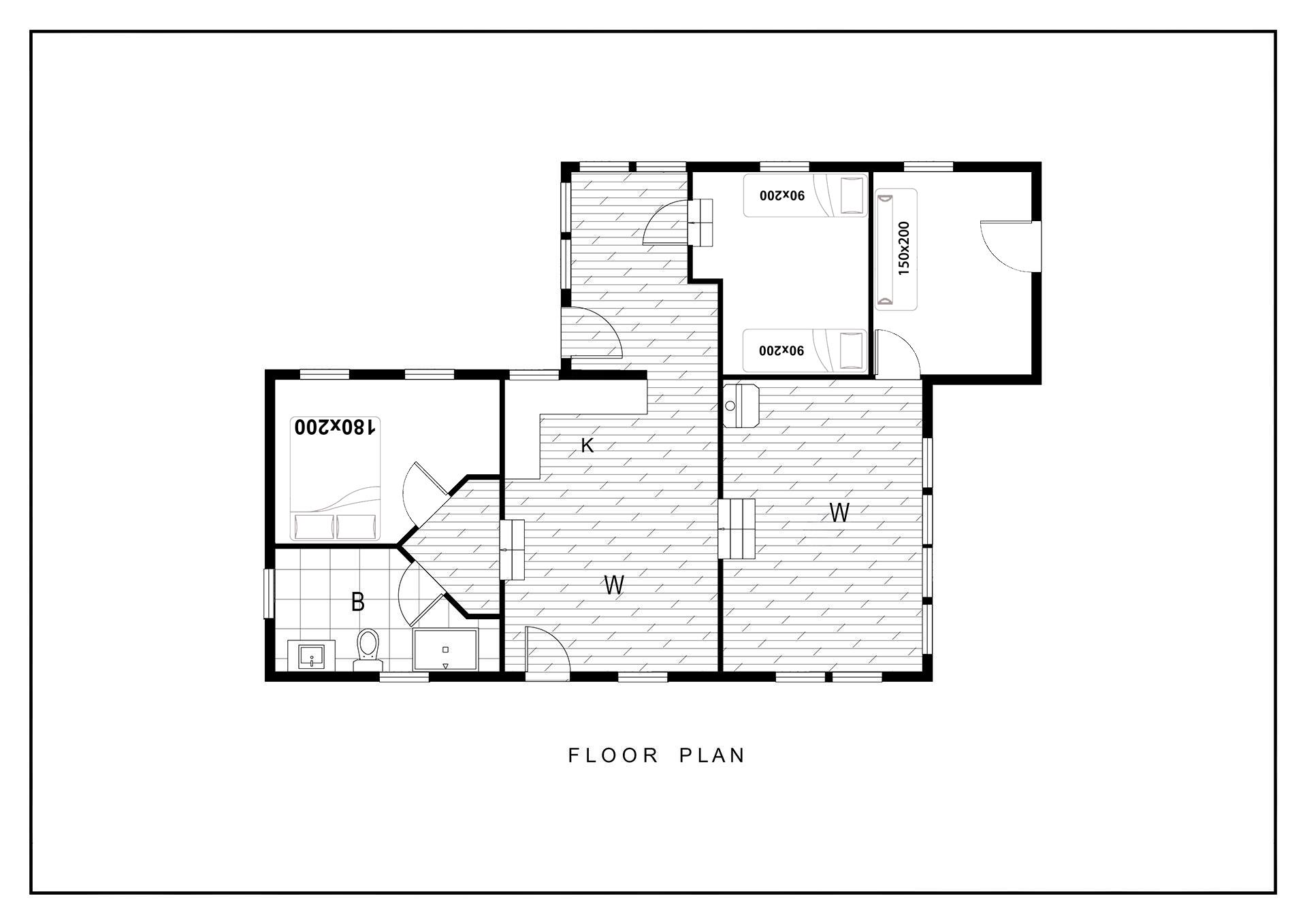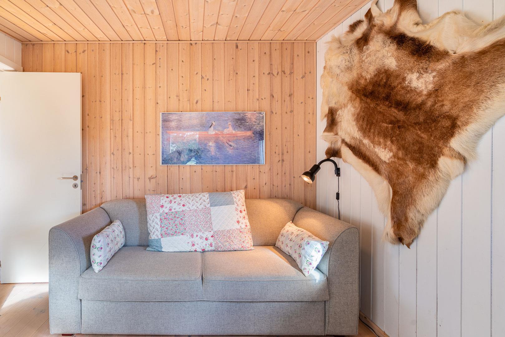 Sengestørrelse: 1 dobbeltseng 180 x 200 cm + 2 enkeltsenge 90 x 200 cm + 1 sovesofa 150 x 200 cm.