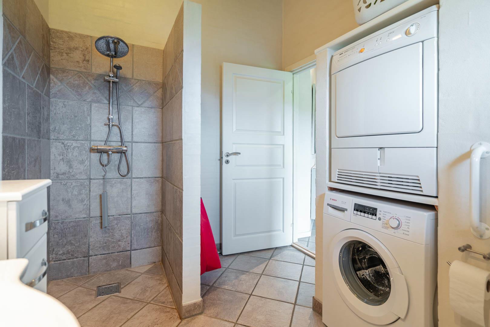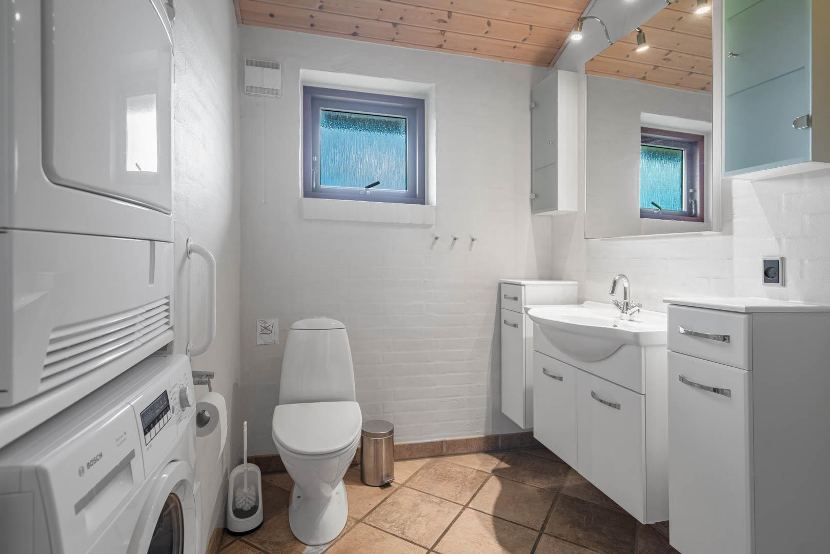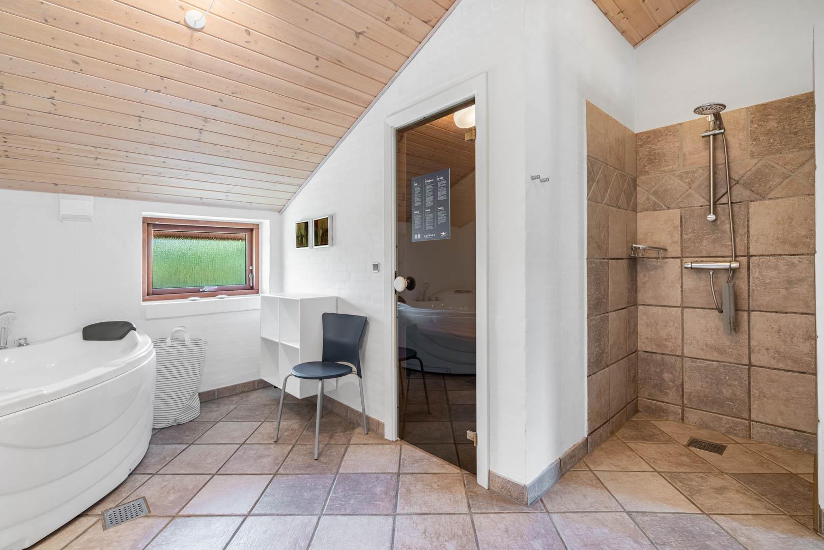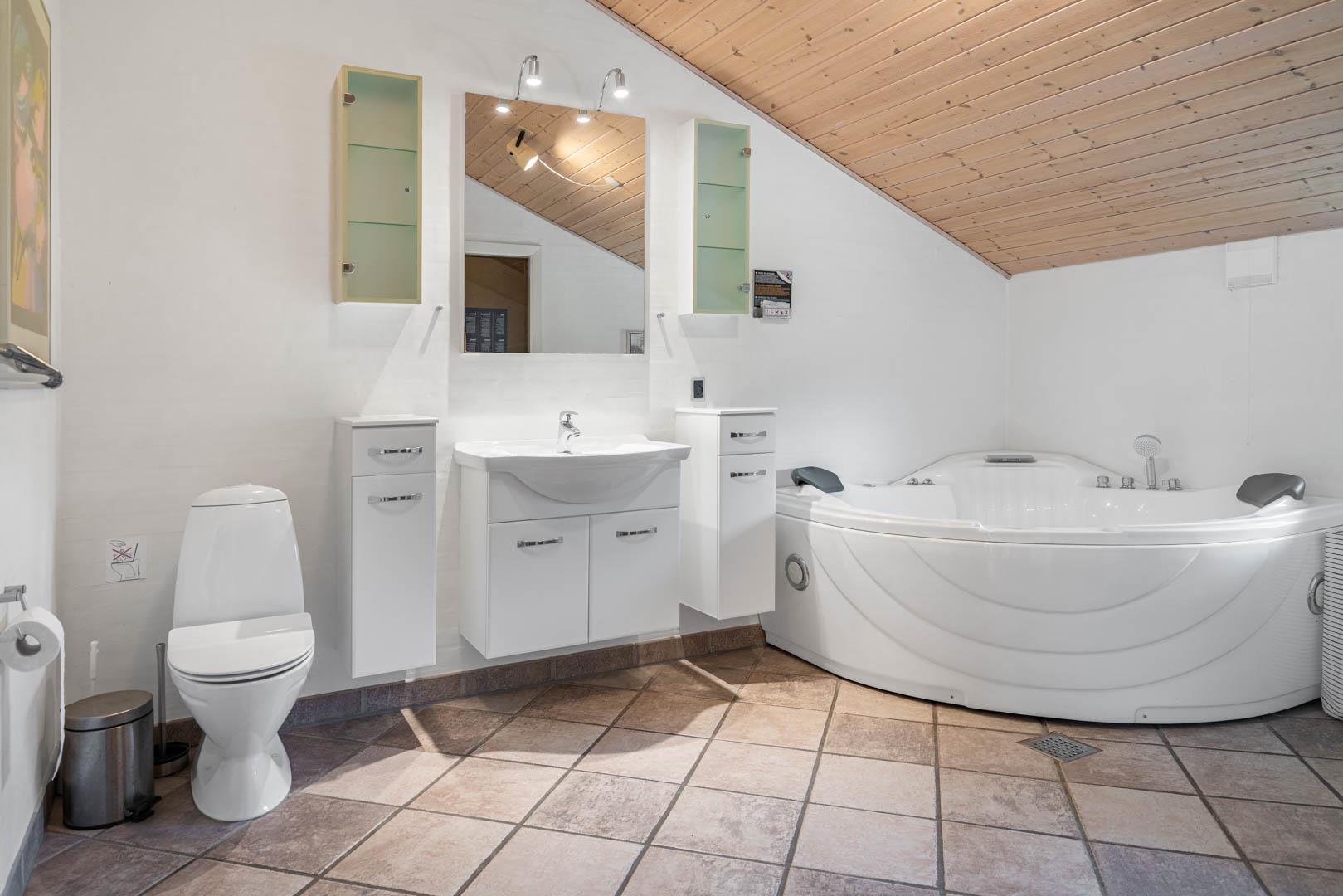 Der er to moderne badeværelser i huset, hvoraf det ene er udstyret med både spabad og sauna. Øvrige rum har flisegulve med behagelig gulvvarme – perfekt til ophold året rundt.