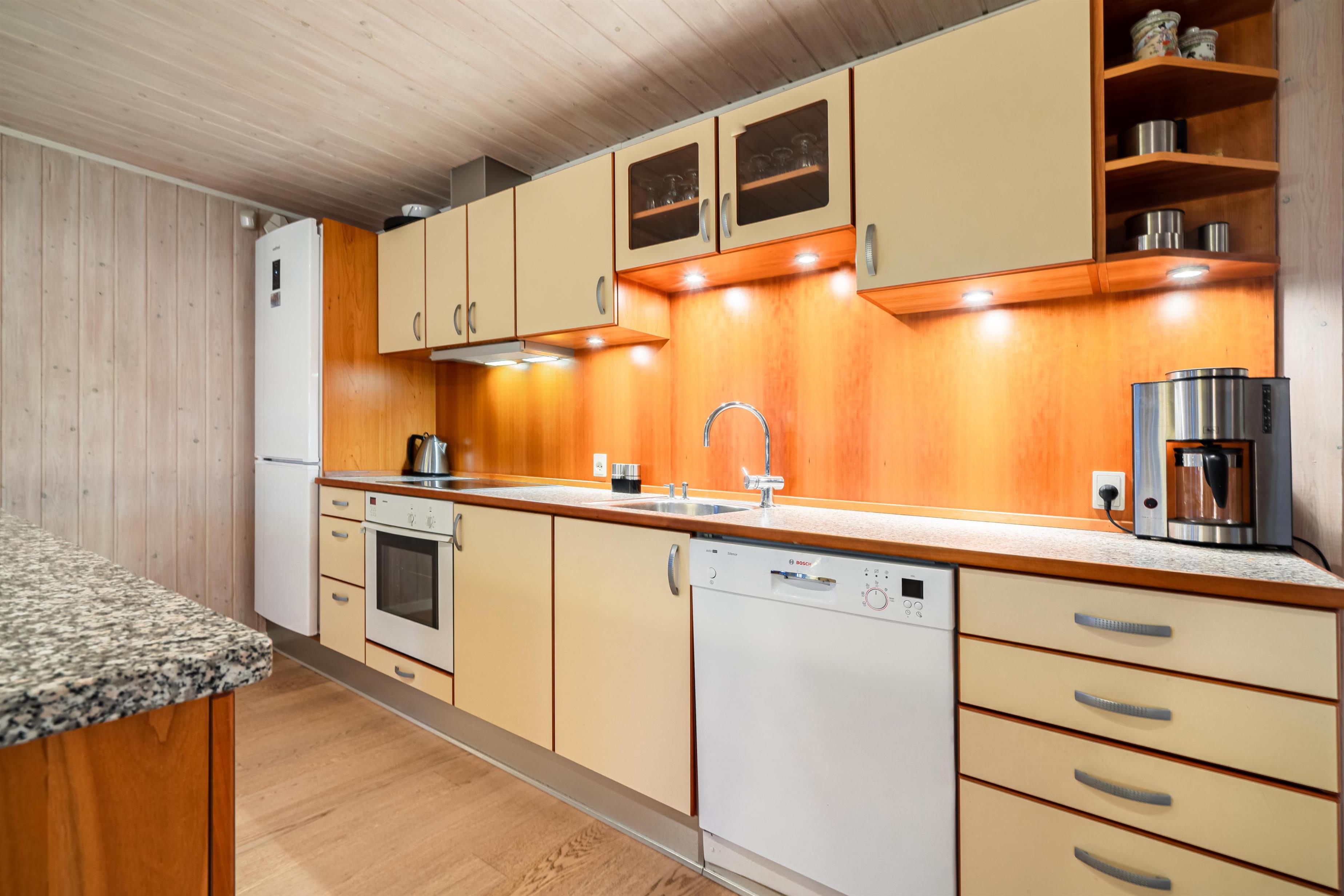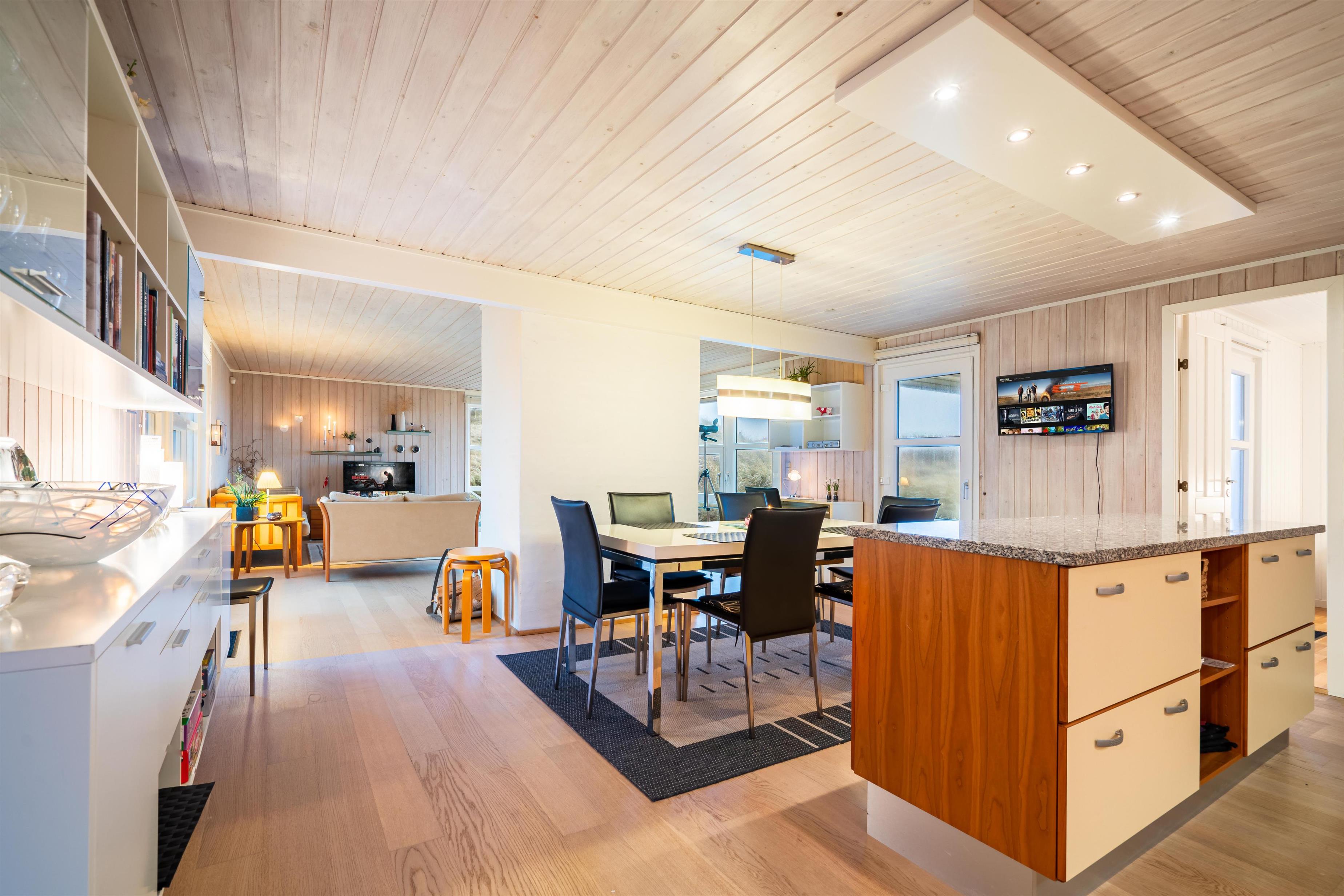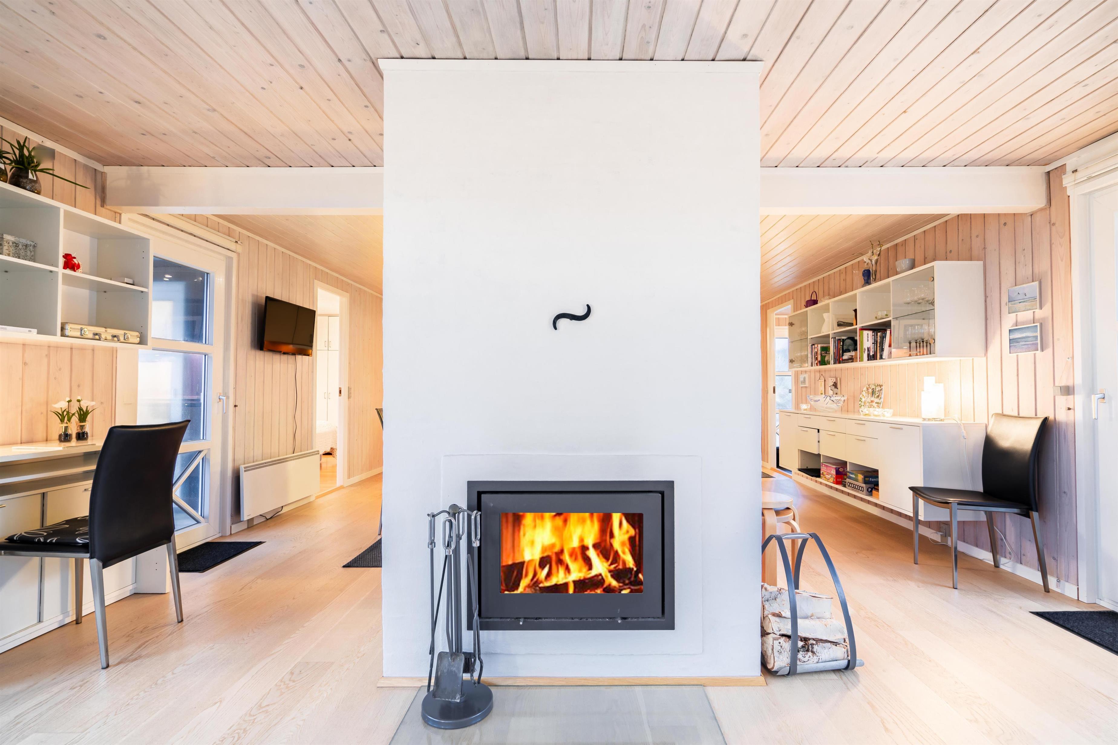 Flot og smagfuldt indrettet med stor og rummelig køkken/alrum med brændeovn og med udgang til hele 2 terrasser.