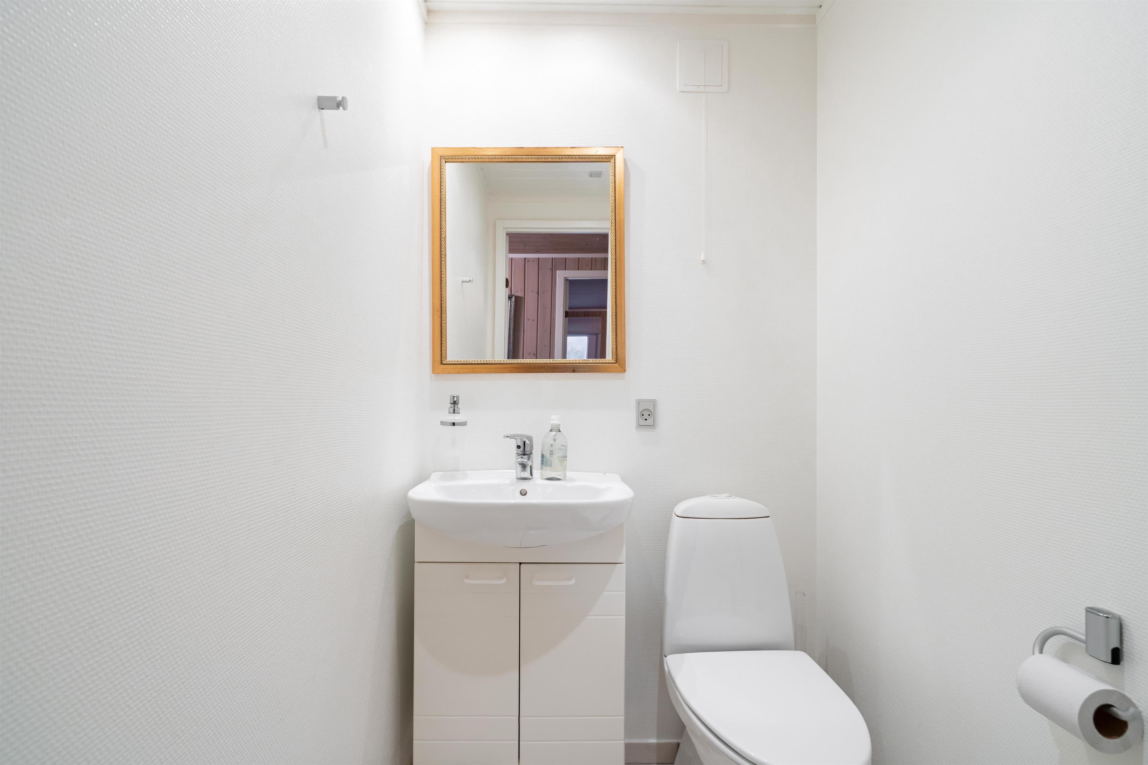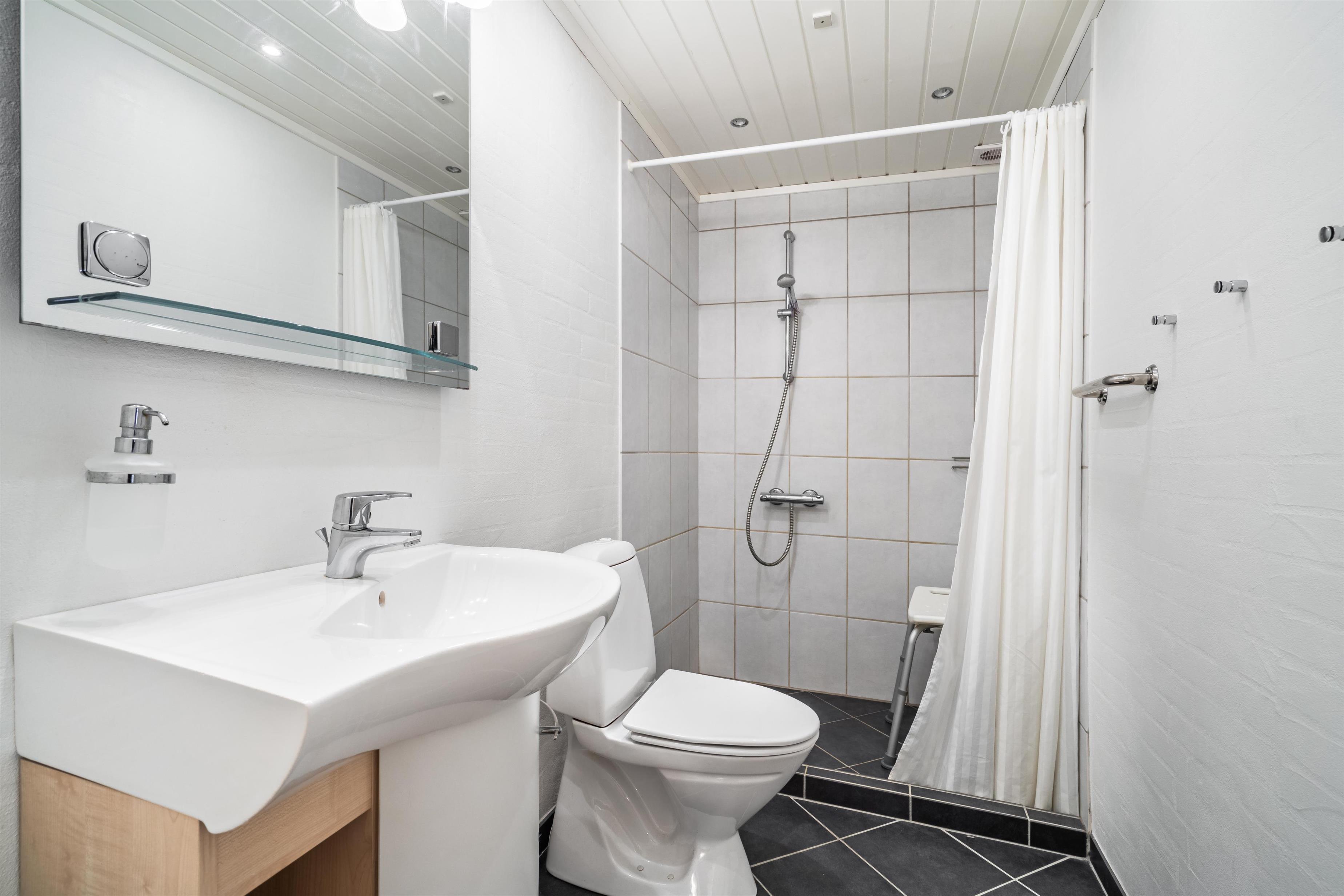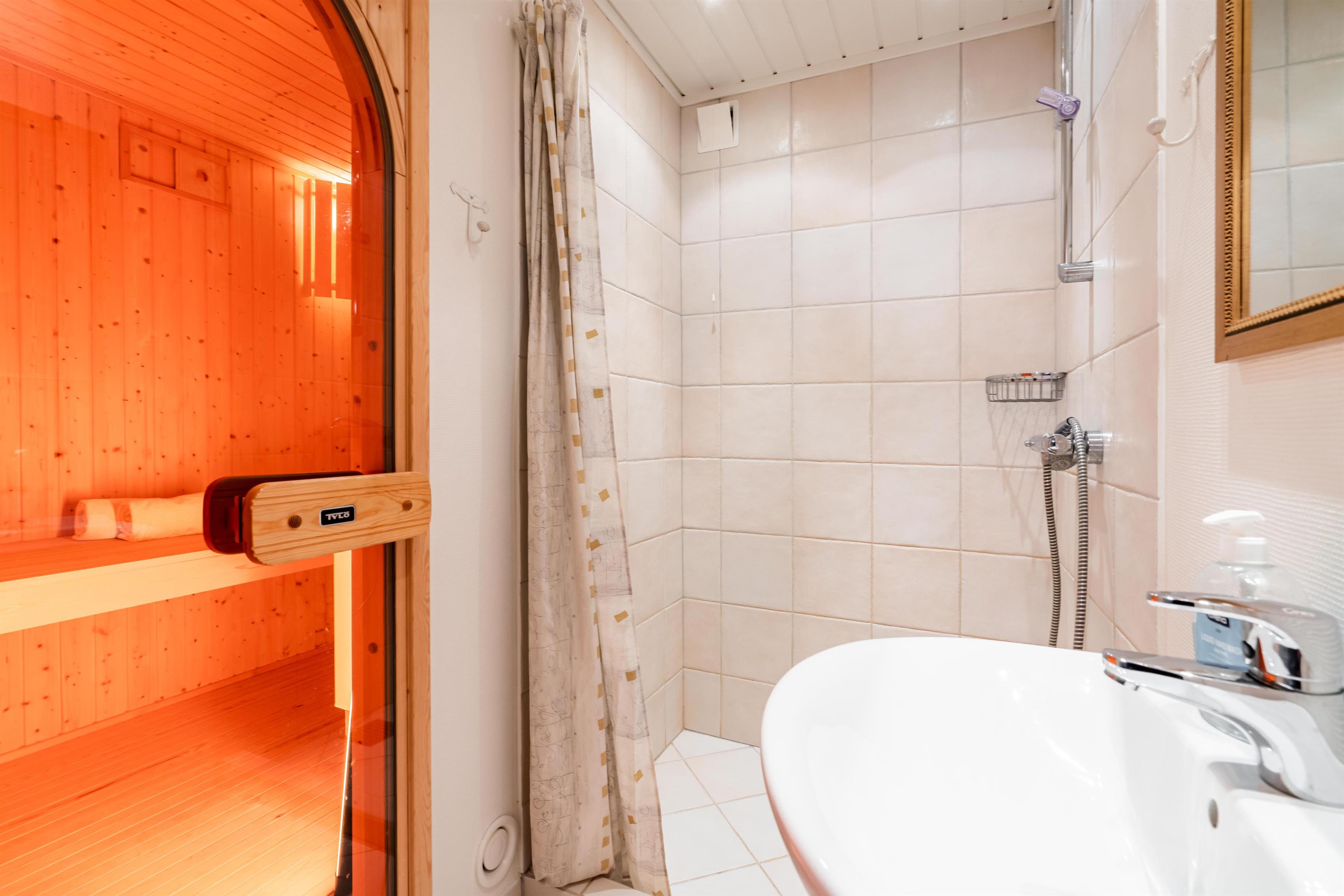 Der er ekstra badeværelse med adgang til sauna og separat toilet.