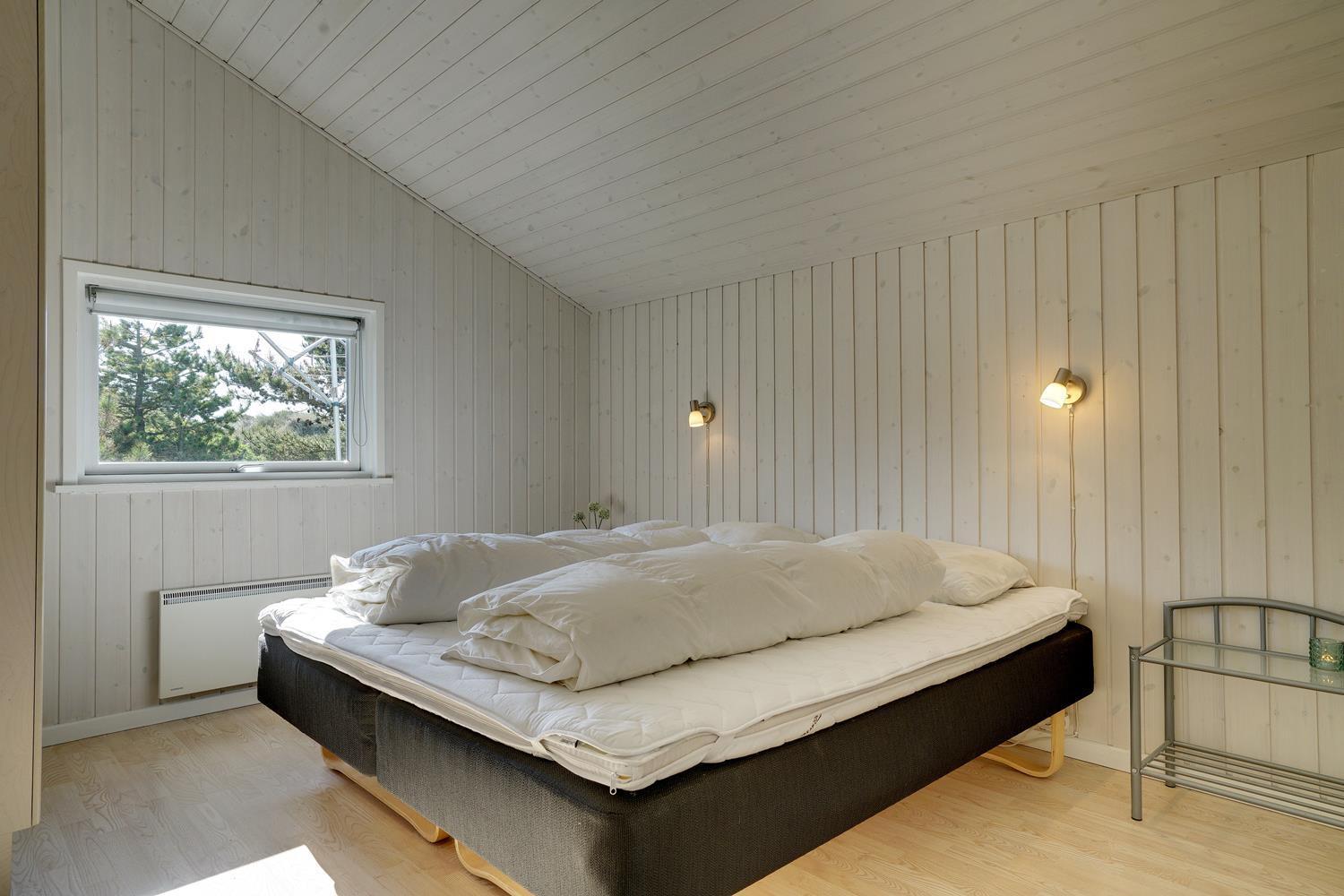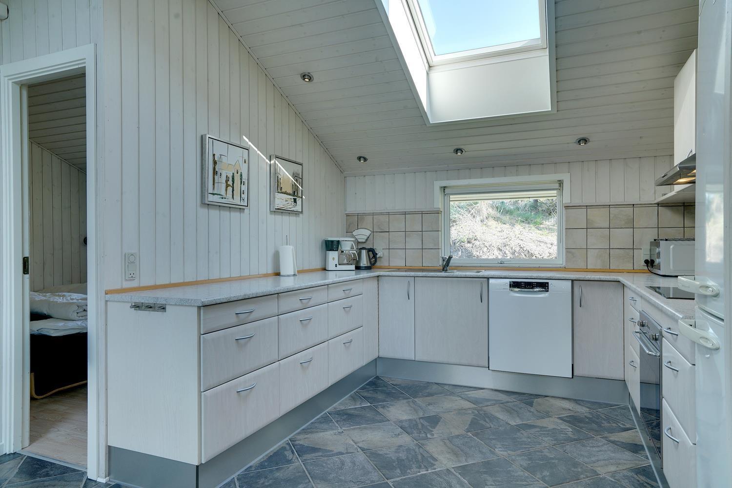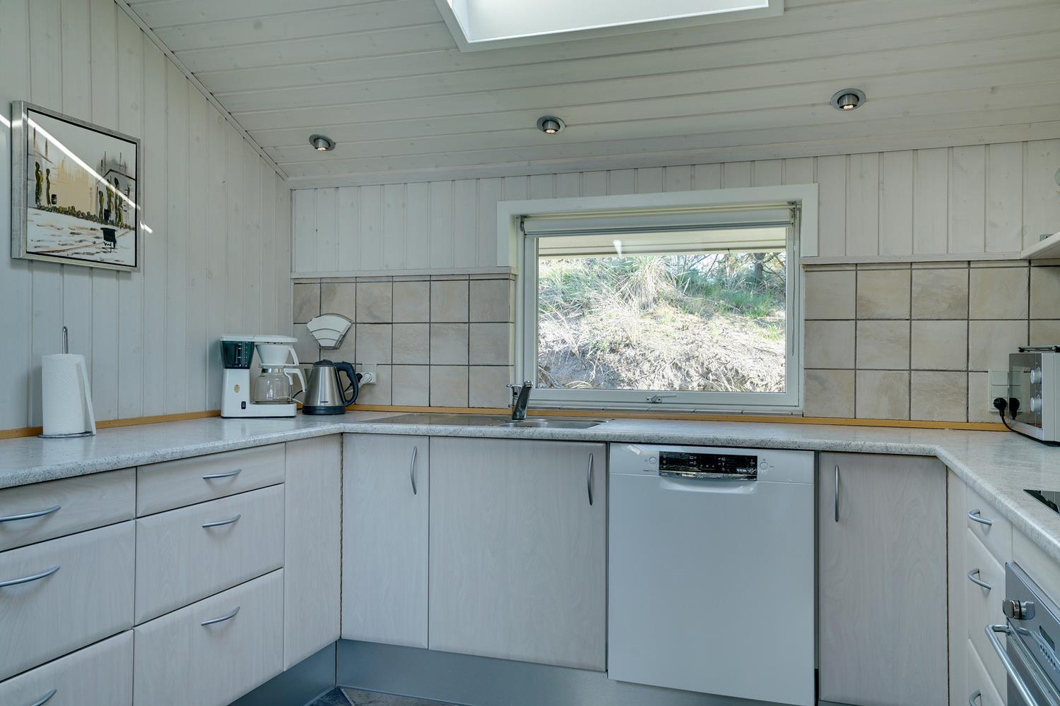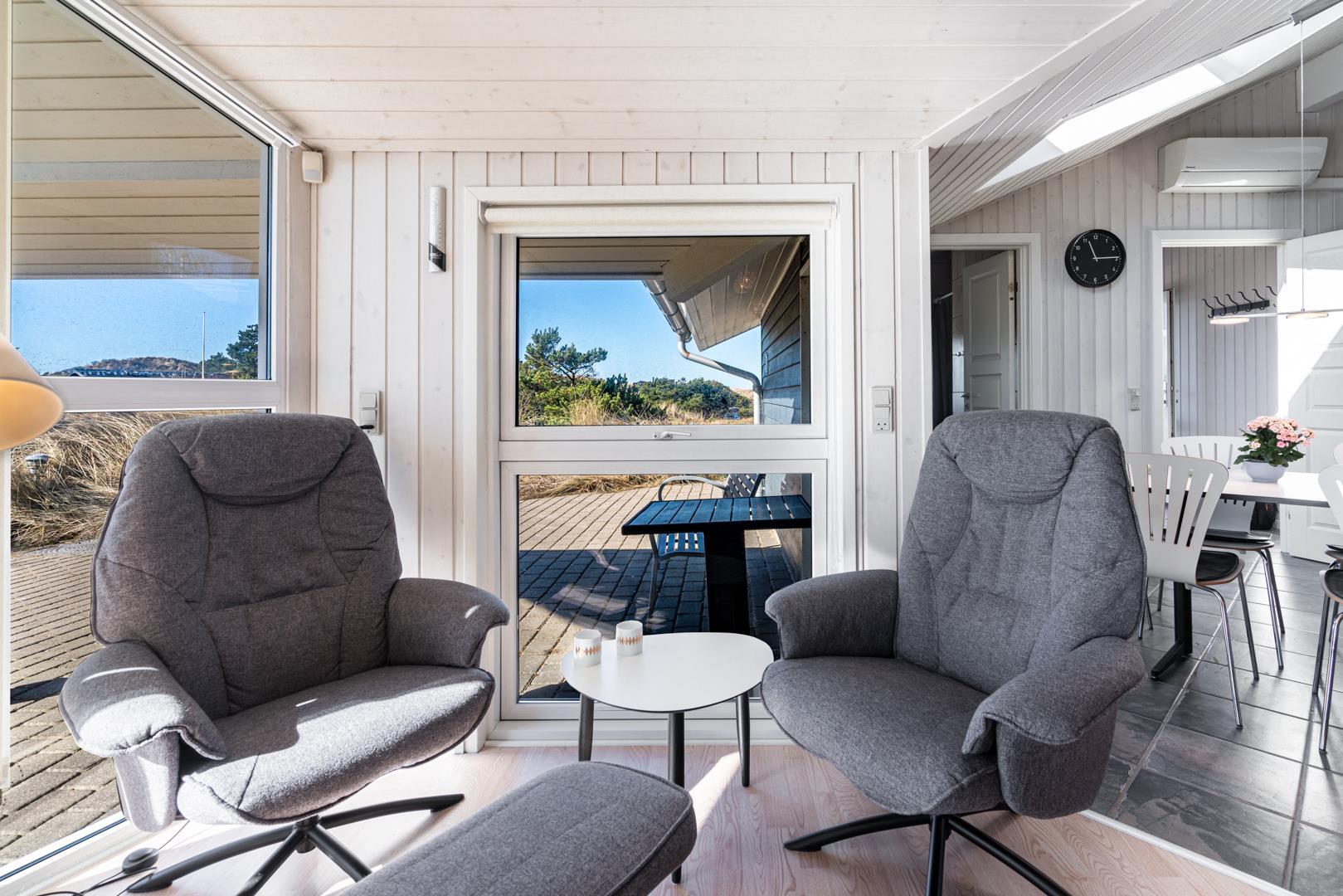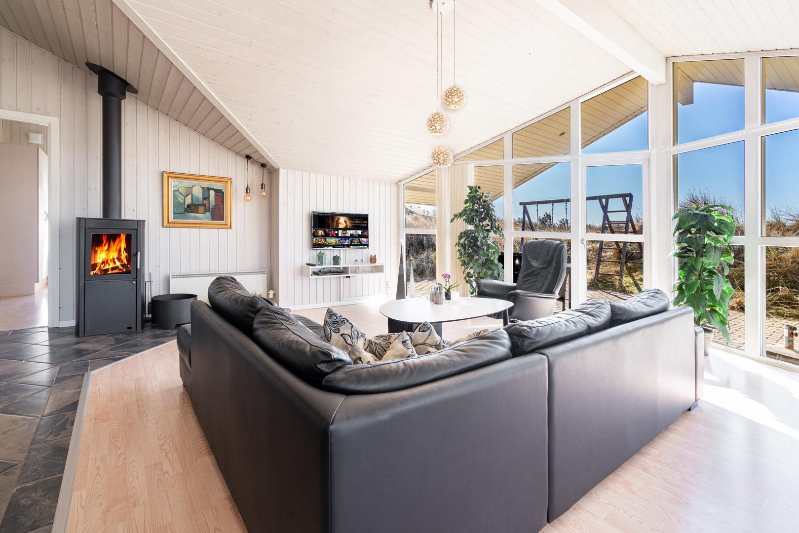 På en pragtfuld højtbeliggende kuperet klitgrund med udsigt over klitterne ligger dette pragtfulde og velholdte feriehus. Flot køkken kombineret med velmøbleret stue med loft til kip. Der er 2 flotte badeværelser med bruser, i det ene er der spa og sauna. 3 gode rummelige soverum. Fra stuen er der udgang til ugeneret terrasse, hvor udsigten og solen kan nydes. Gratis ADSL-Internetforbindelse.