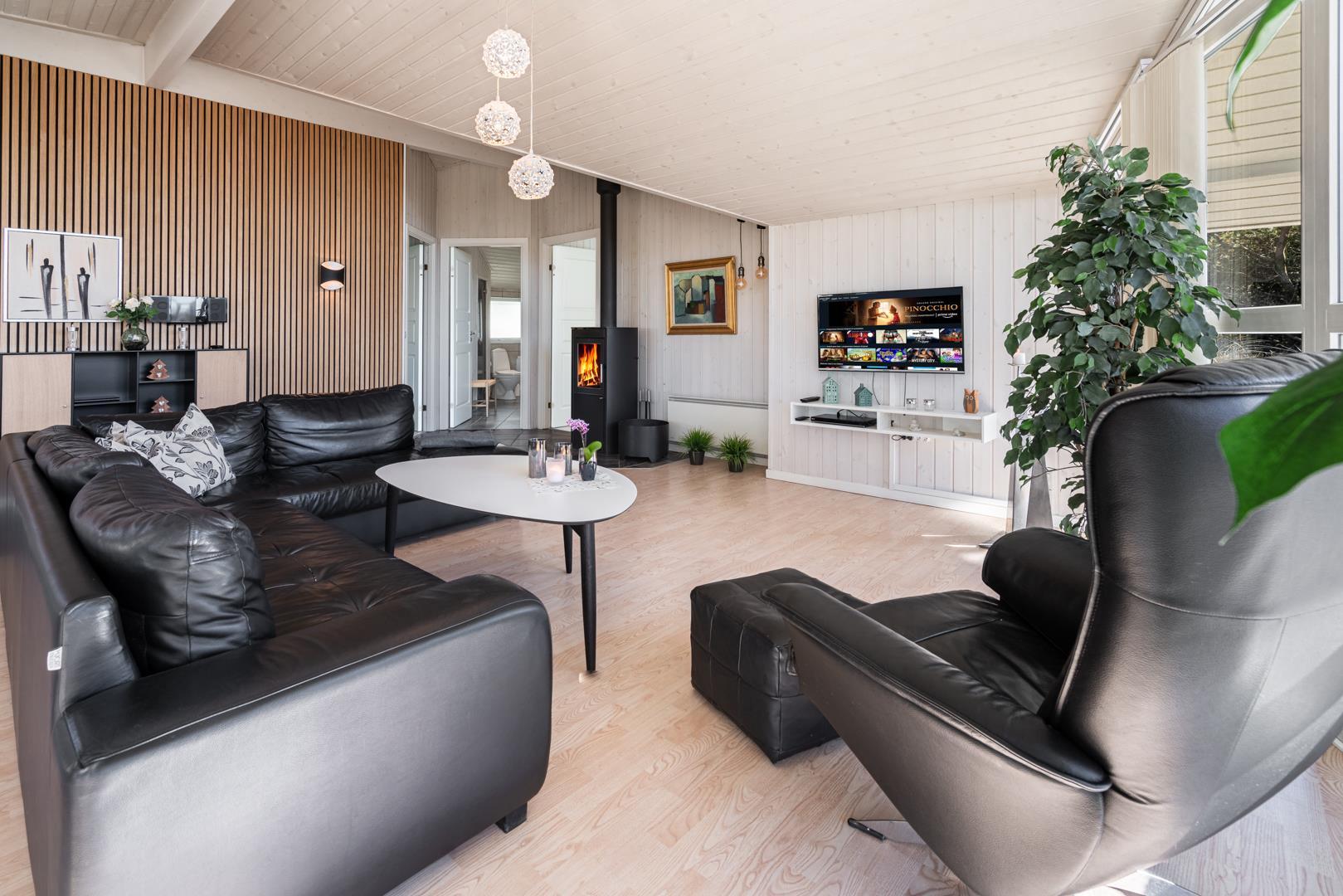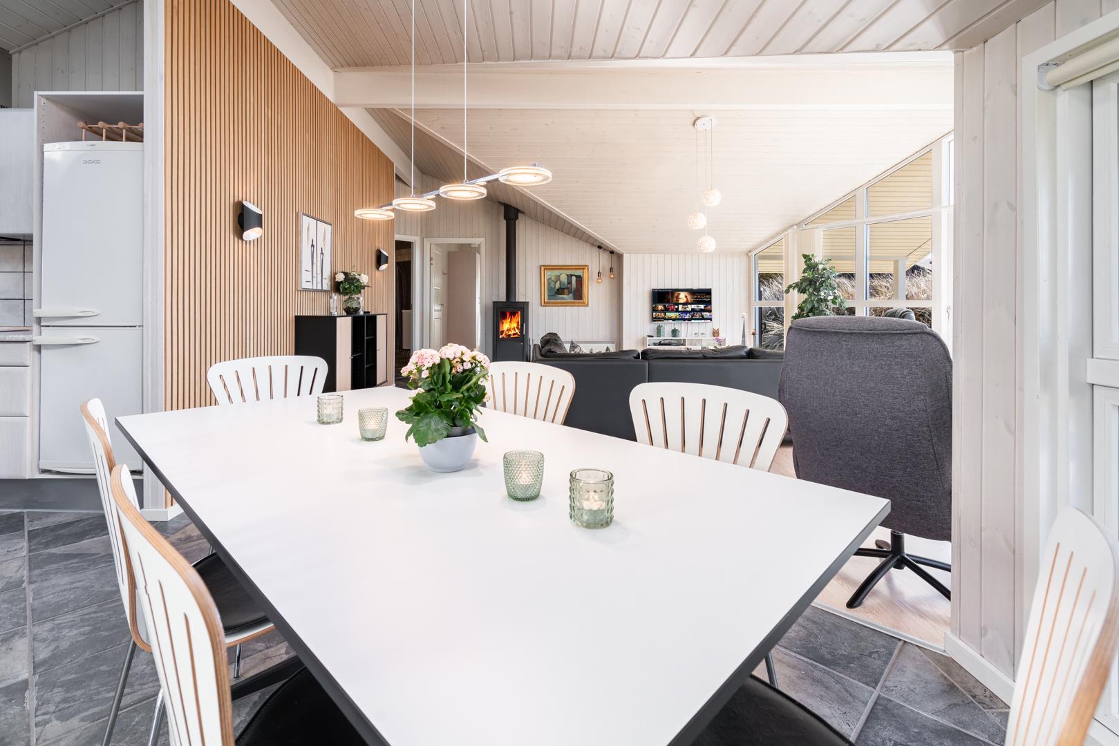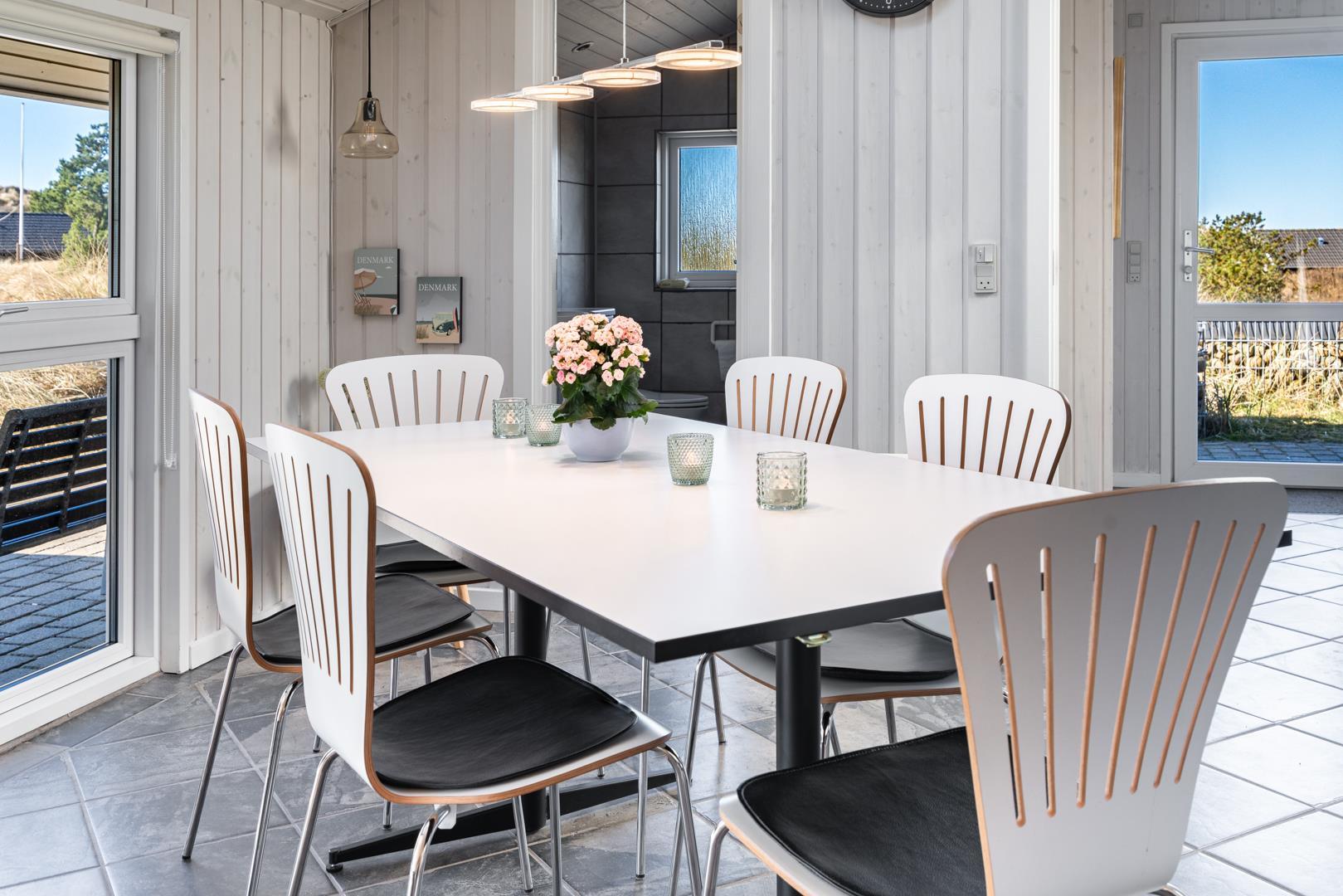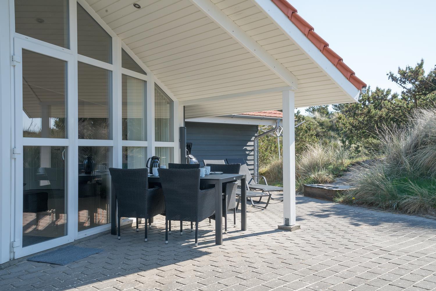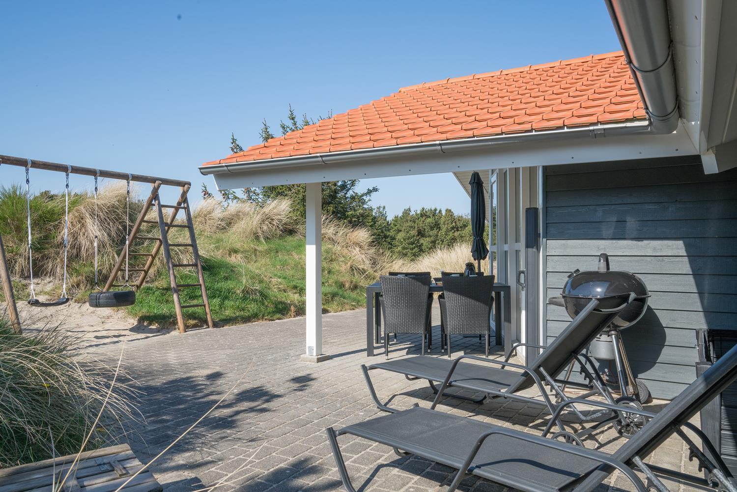 Velholdt feriehus i Henne Strand med spa, sauna, stor terrasse og gratis internet for en afslappende ferie.