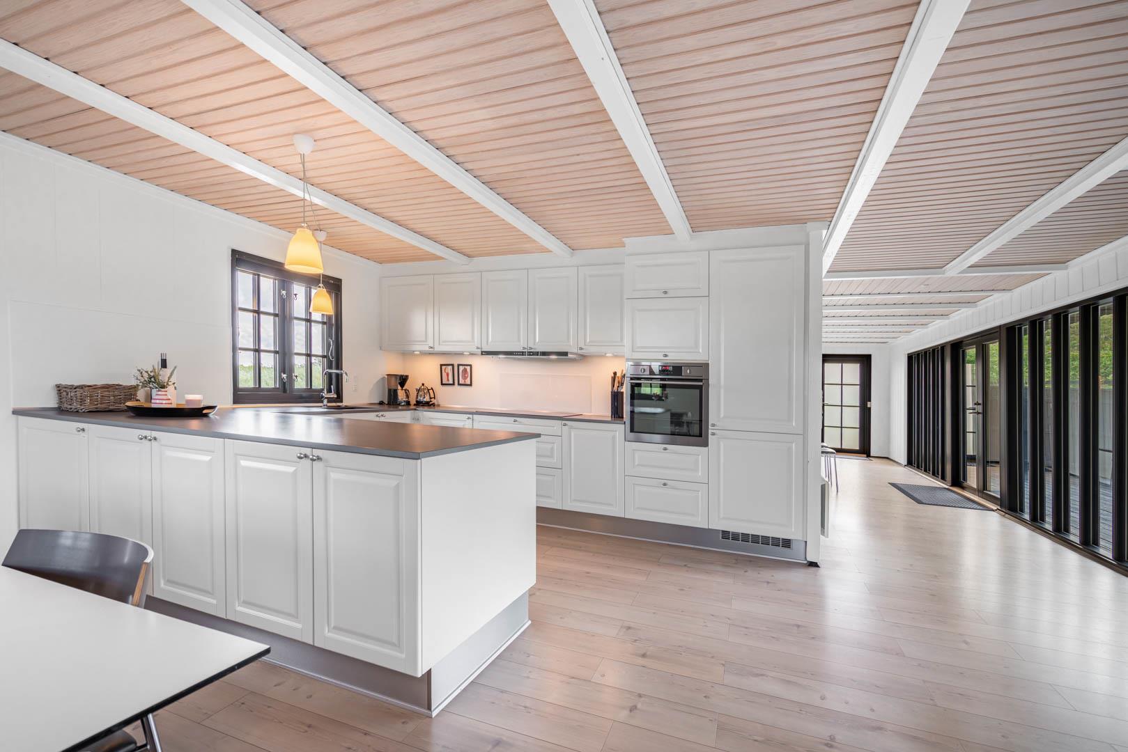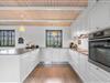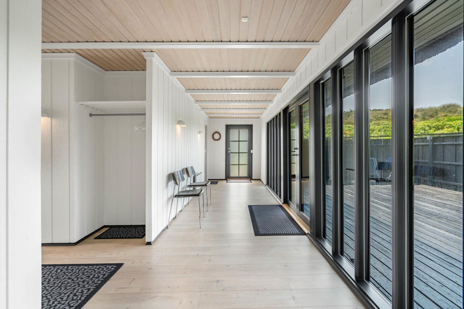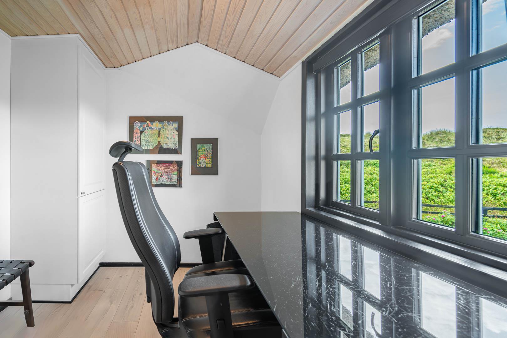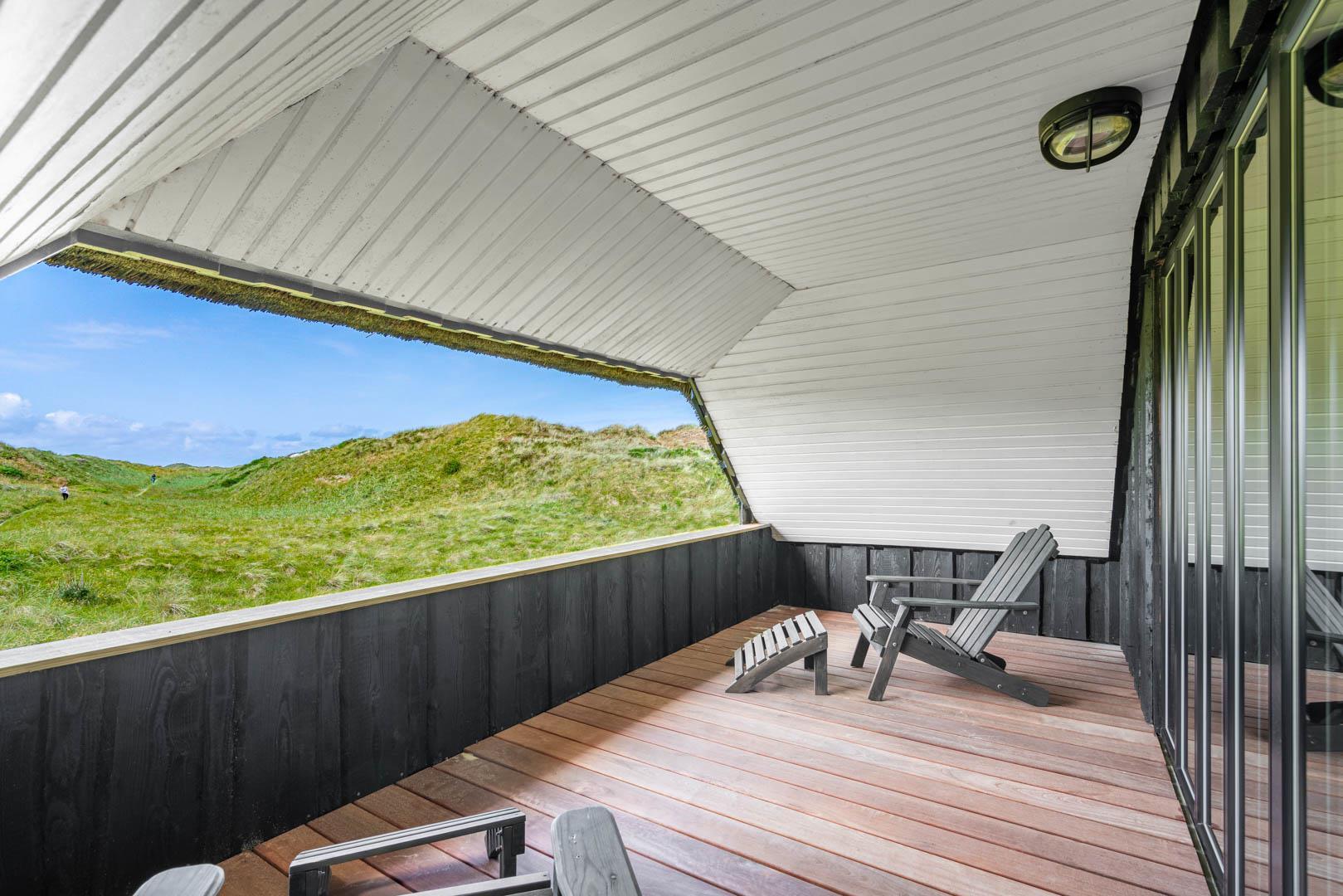 Sommerhusets charmerende ydre med stråtag, sortmalet træbeklædning og hvide sprossevinduer er som en lille reminder om en tid, hvor alt var mere simpelt, hvor himlen var mere blå og solen skinnede hele sommeren. Og det føles næsten også som en mere simpel tid, når man er på ferie her, for naturens rolige lyde, og den måde marehalmen vajer i vinden på, udenfor de store panoramavinduer, gør, at man automatisk sænker skuldrene og slipper hverdagens travlhed og bekymringer.