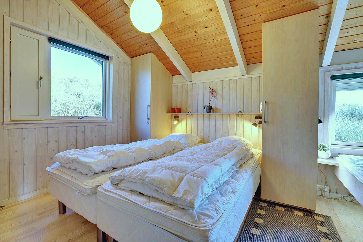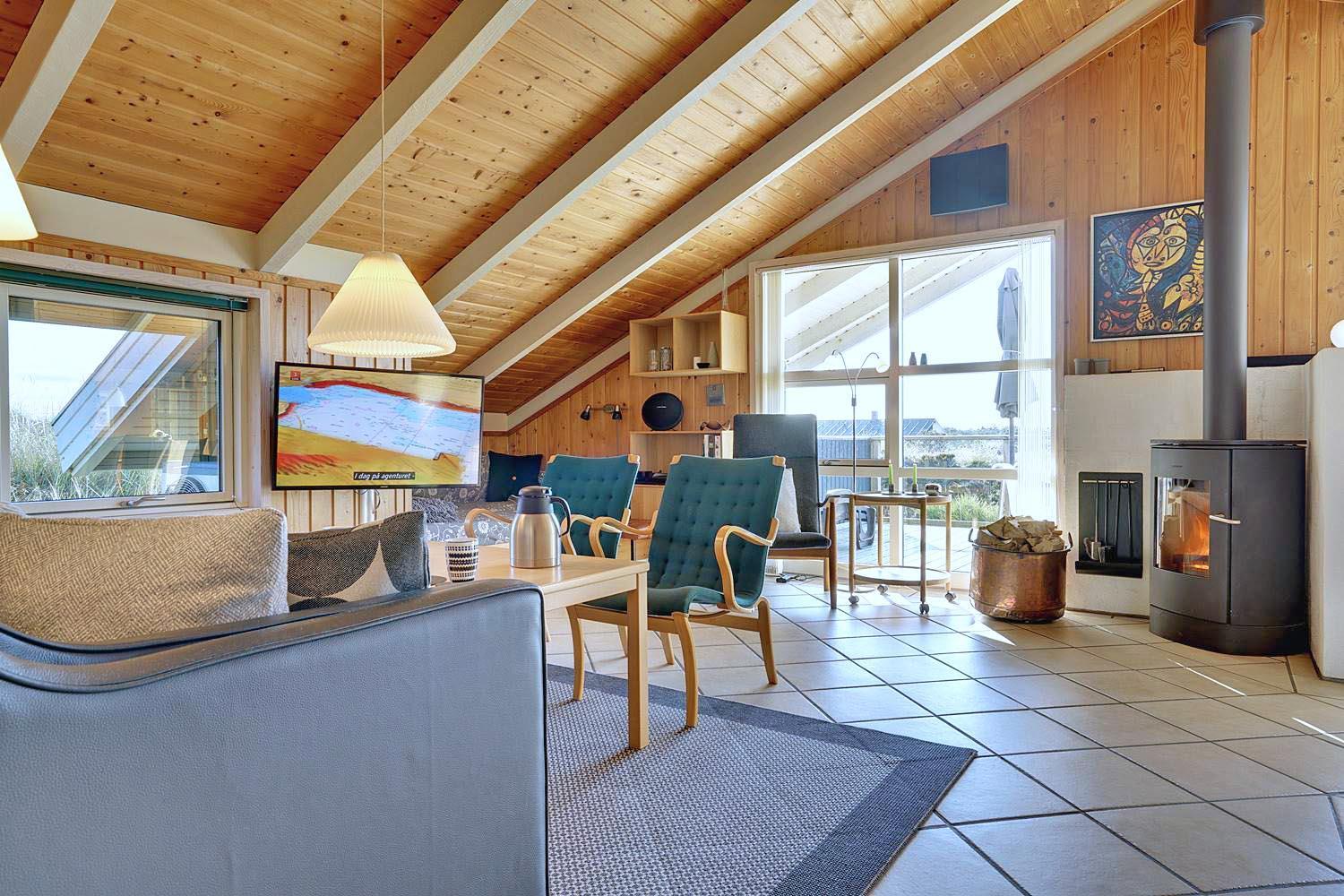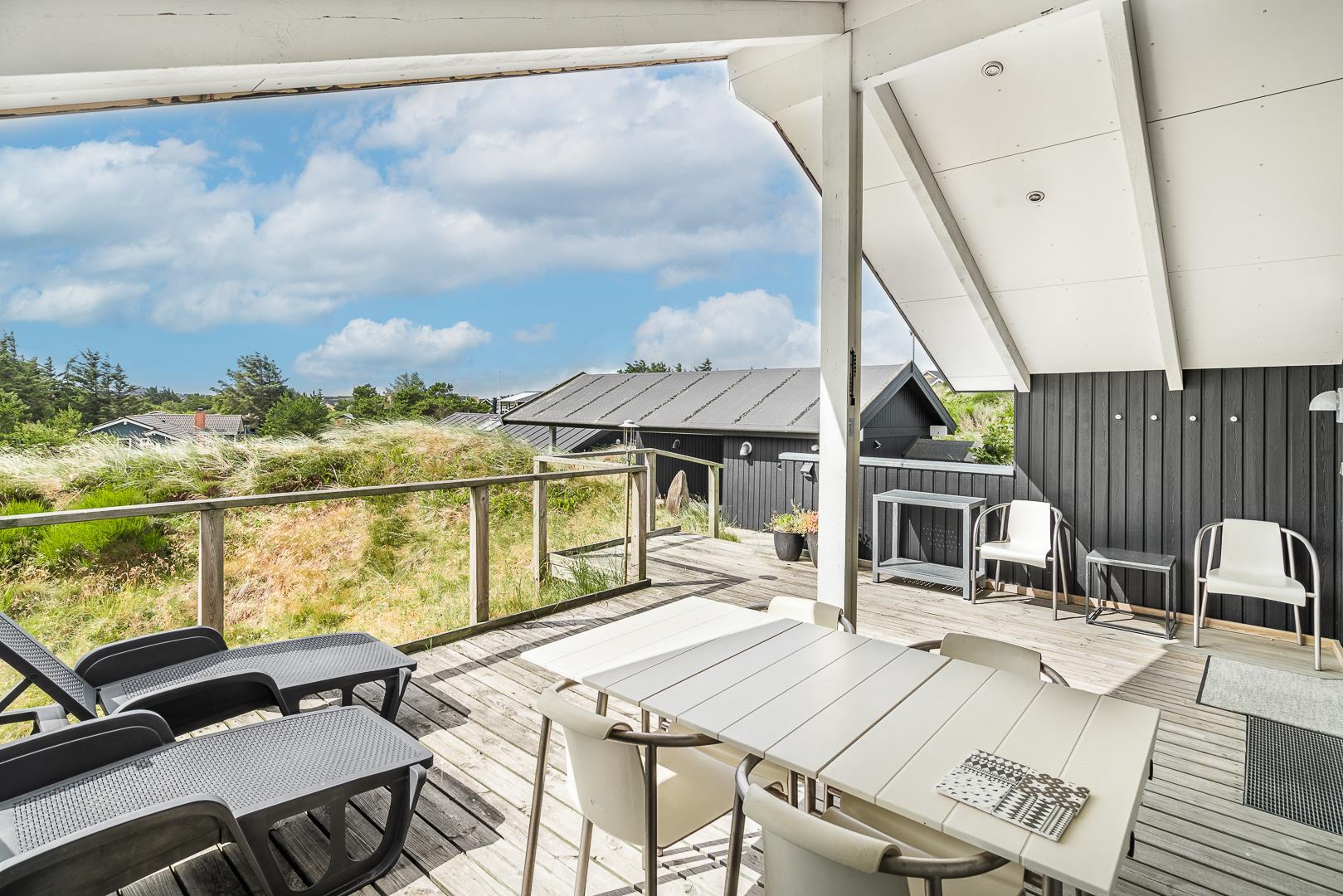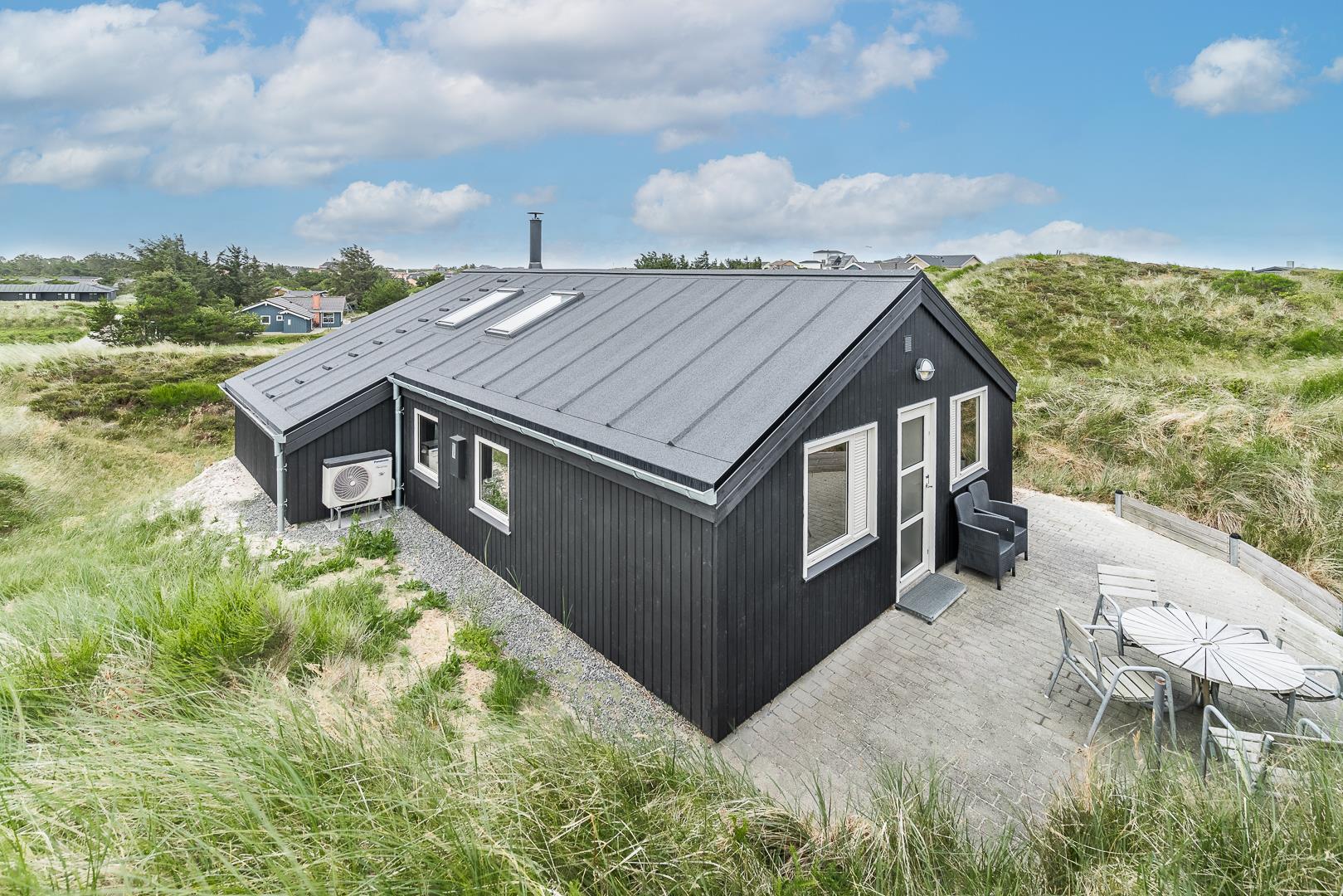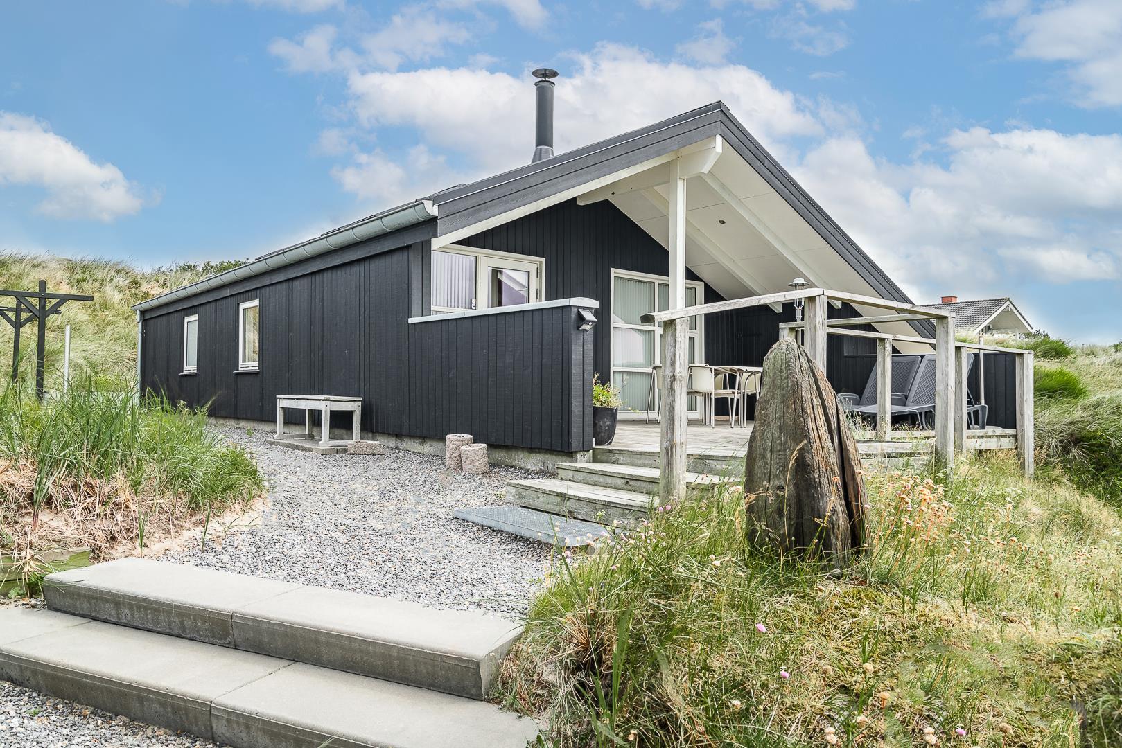 Dejligt og meget velholdt feriehus beliggende på en pragtfuld højtliggende klitgrund, for enden af blind vej. Huset fremtræder lyst og venligt og der er nyere badeværelse samt køkken. Skøn delvis overdækket træterrasse mod syd og læfuld flisebelagt morgen terrasse bag huset. Feriehuset har carport og ladestander til opladning af elbil.