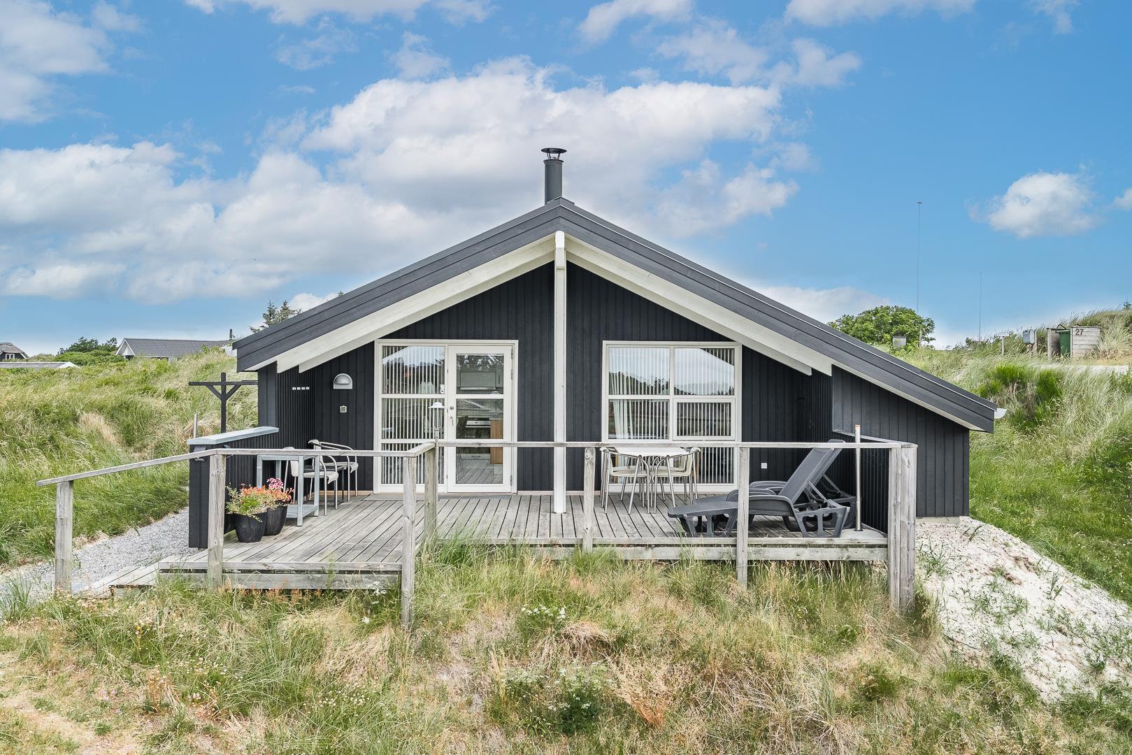 Charmerende feriehus i Henne Strand med højtliggende klitgrund, tæt på strand og indkøb.