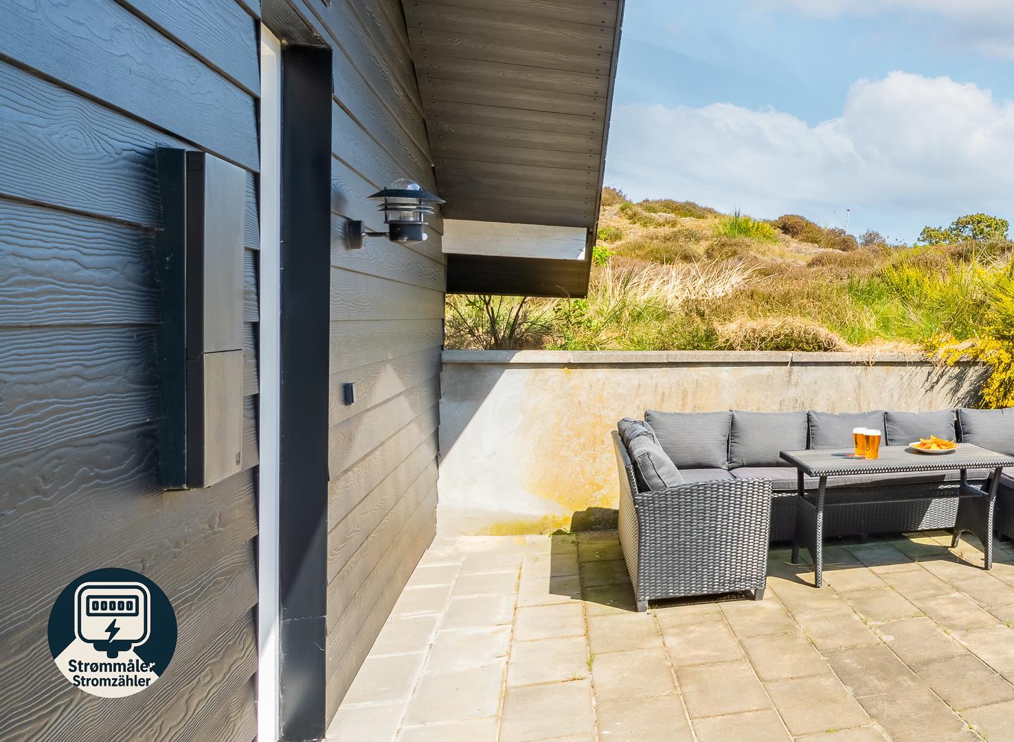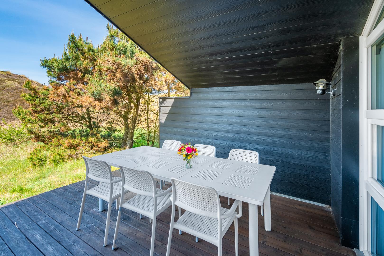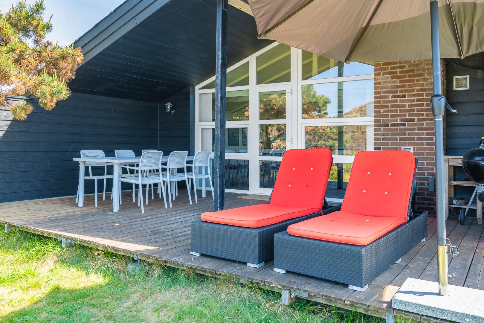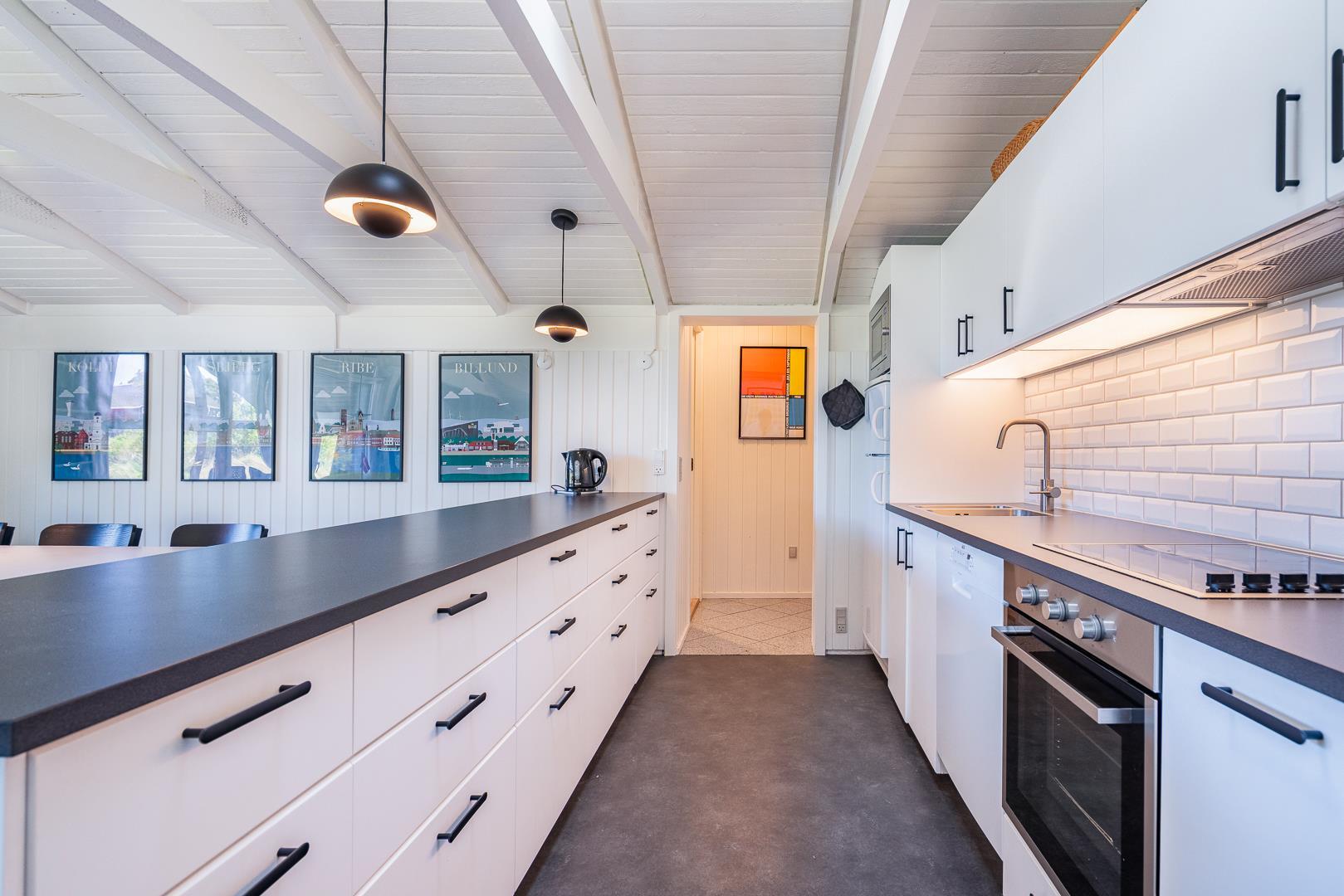 Hjelmevej 55 B, Henne Strand er hyggeligt feriehus med plads til 6 personer, er løbende blevet renoveret. Her er over alt lyse lofter og vægge, og et dejligt lysindfald i stuen. I opholdsstuen sørger brændeovnen for den rigtige hygge i en kold tid. Husets stue er smagfuld indrettet med komfortable kvalitets møbler.