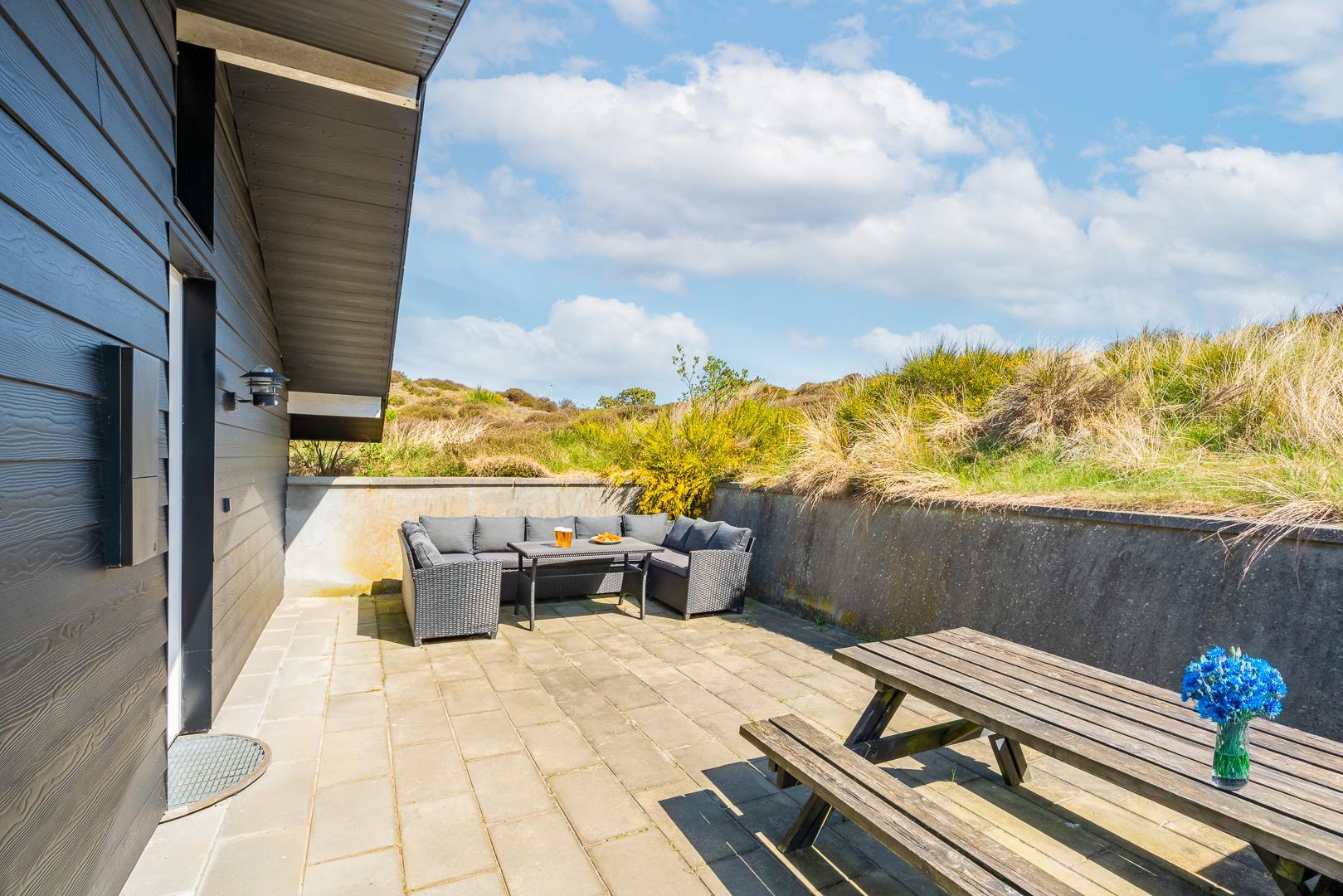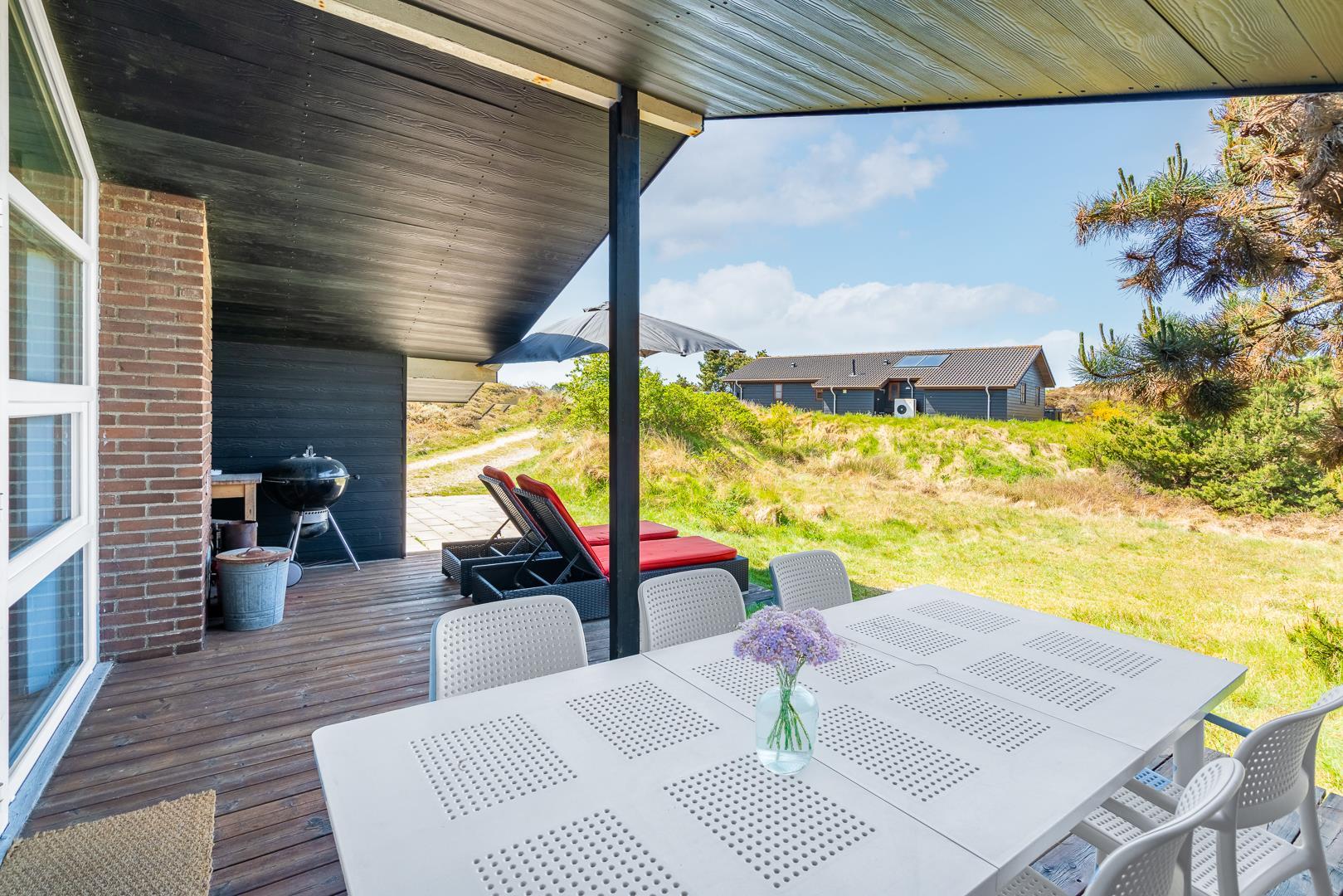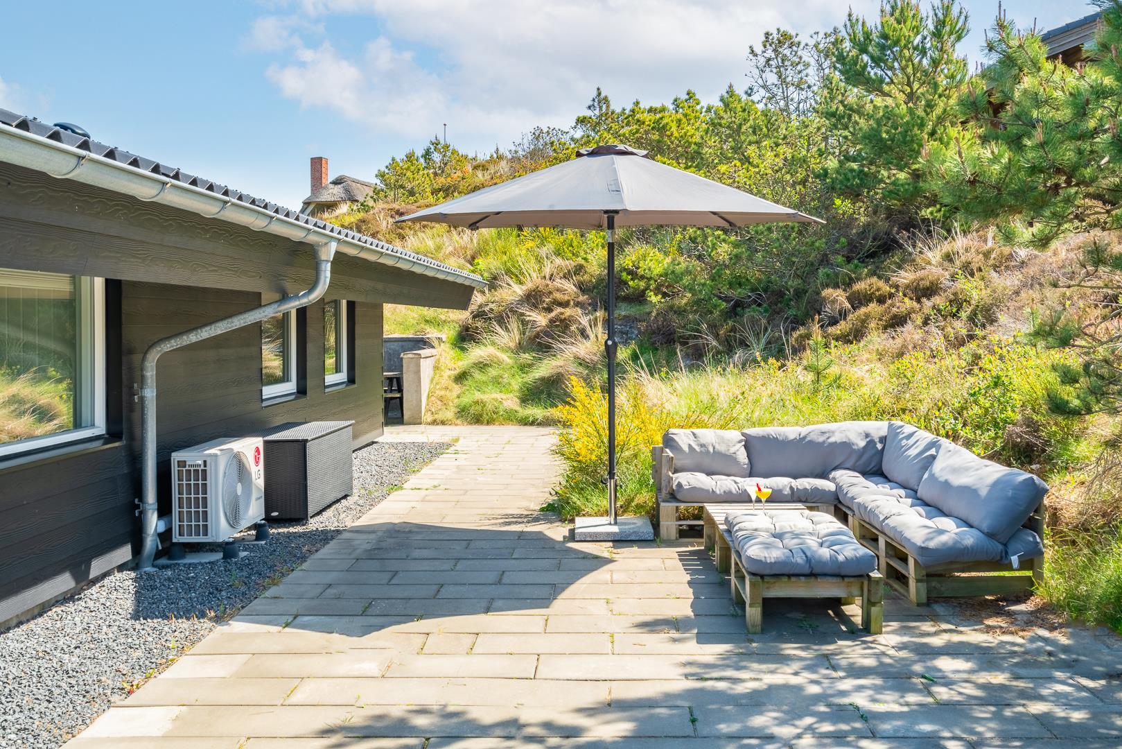 Huset byder på 3 soverum, veludstyret køkken i åben forbindelse med stuen, hvorfra der er udgang til delvis overdækket terrasse. Ved huset indgang er der også dejlig læ fuld og ugeneret terrasse.