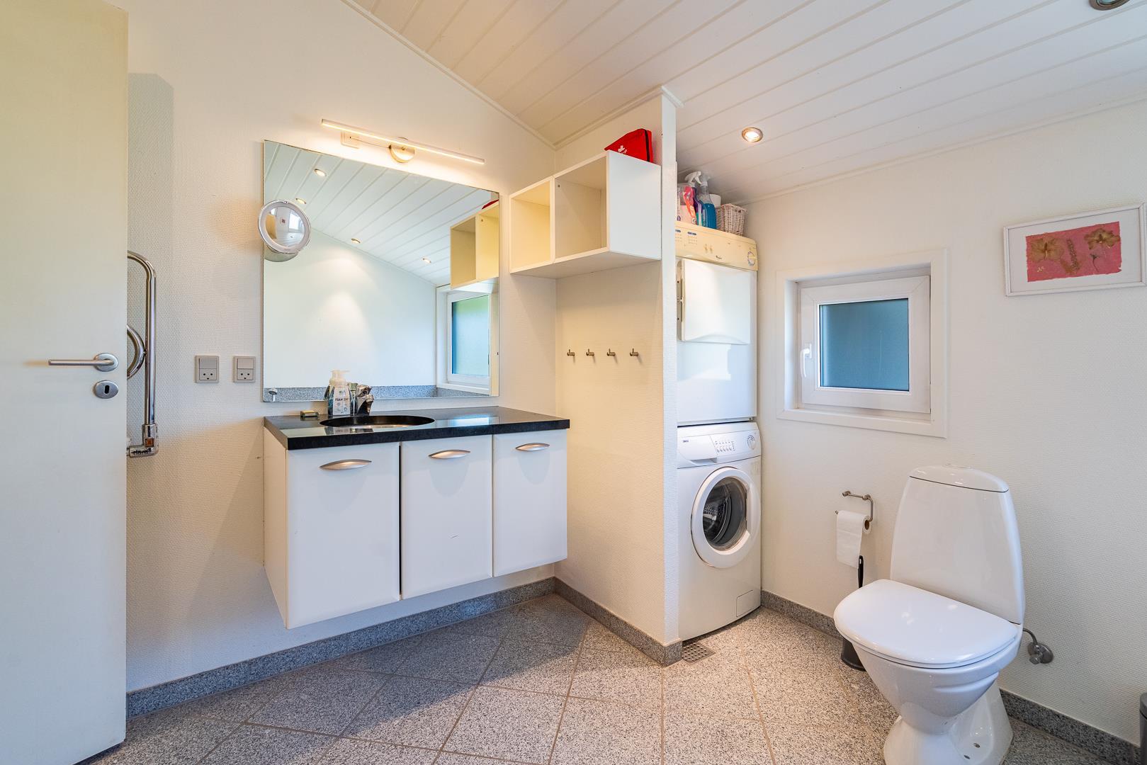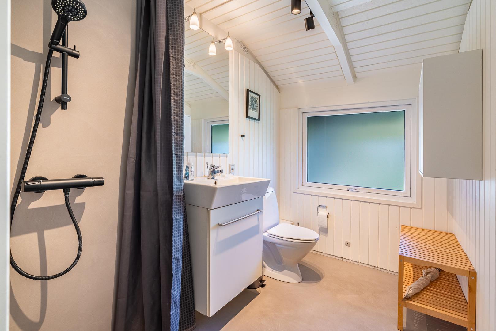 2 store badeværelser med gulvvarme og bruser. Huset er beliggende i gå afstand til Henne Strand centrum, med stort udvalg af butikker og restauranter. Der er kort afstand til sti som fører direkte til Henne Strands indbydende strand. Der er energibesparende varmepumpe i huset, samt godt isoleret.