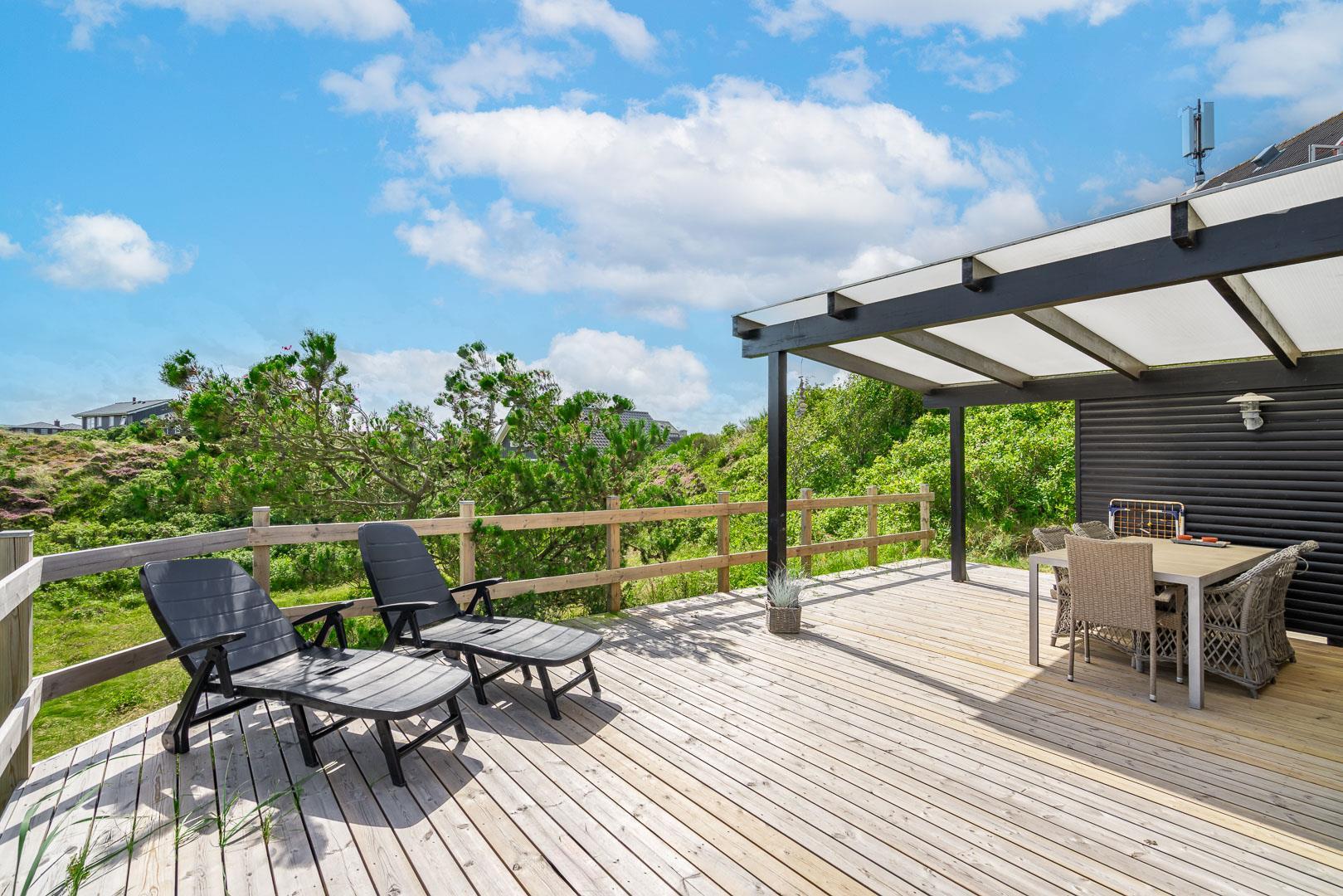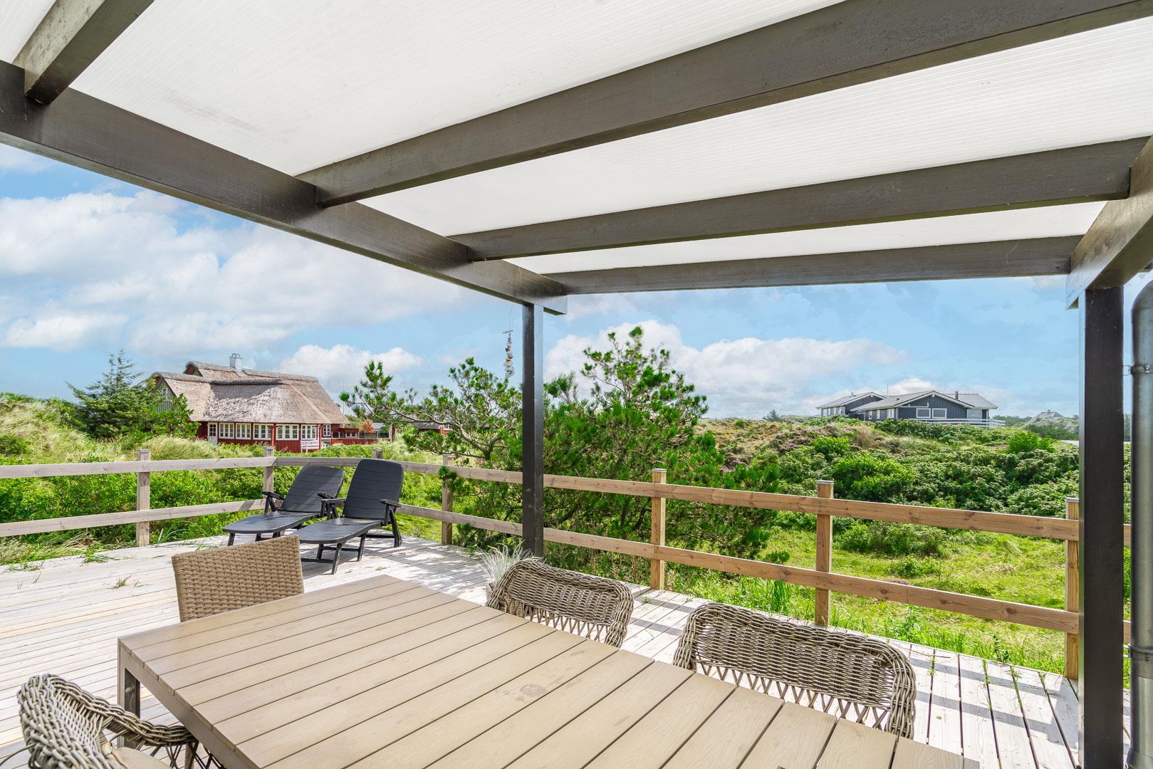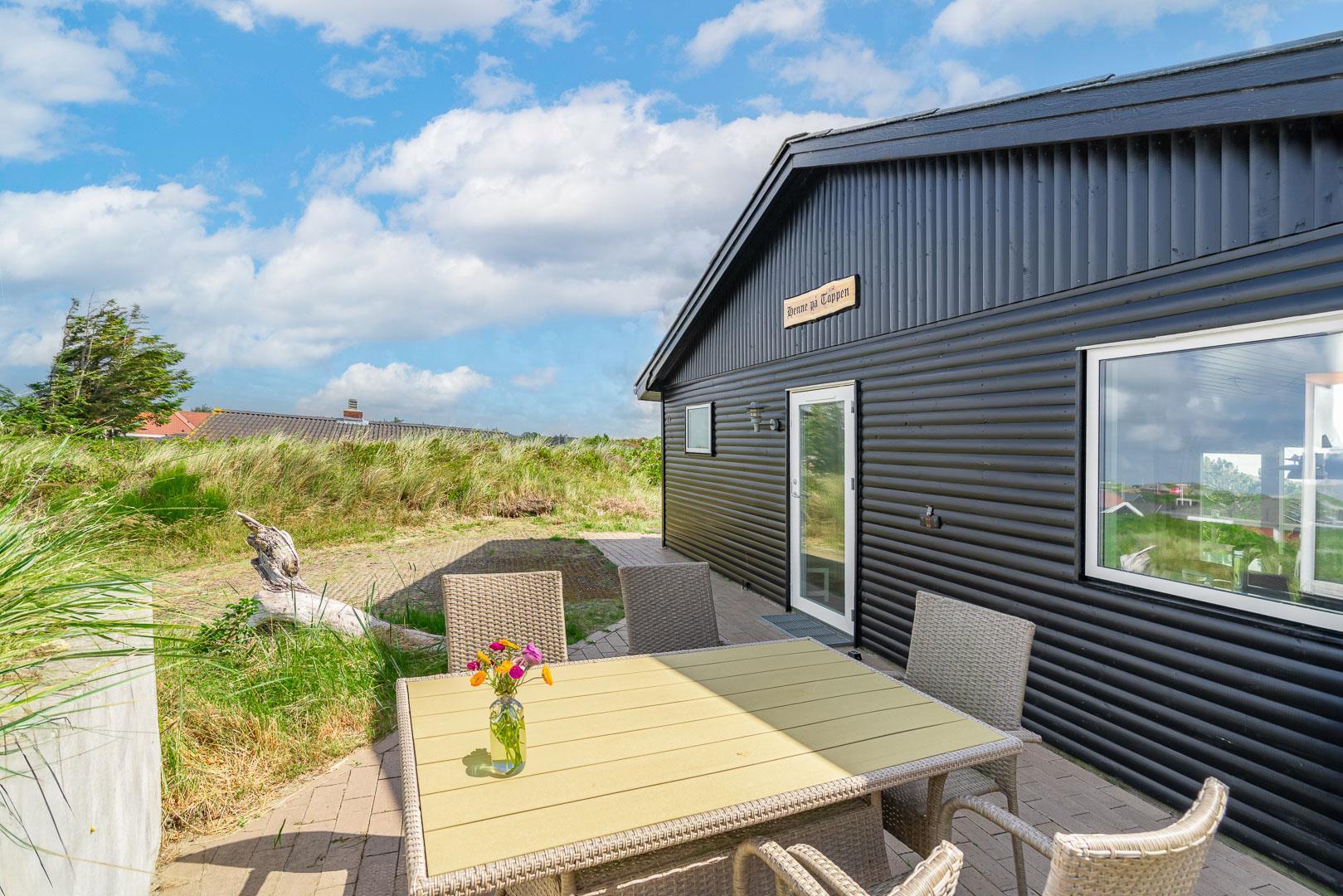Foran huset mod vest findes terrasse med havemøbler. hvor eftermiddags- og aftensolen kan nydes.