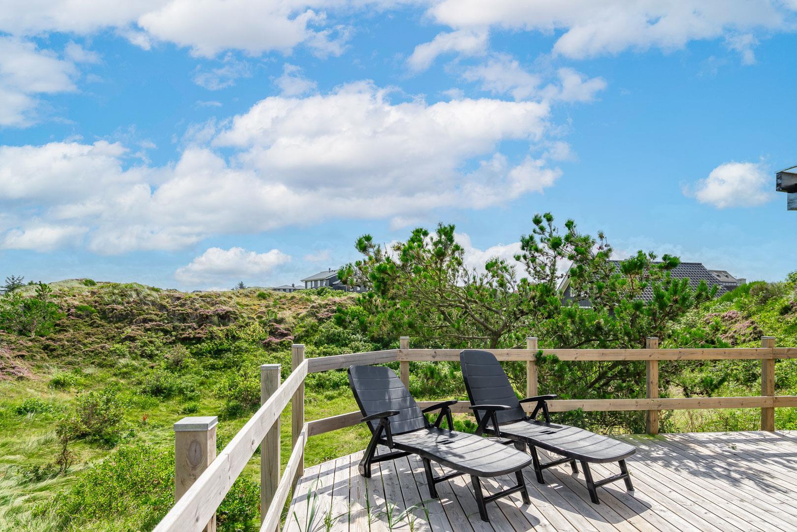 Charmerende og hyggeligt feriehus højt beliggende på naturgrund med udsigt over området.