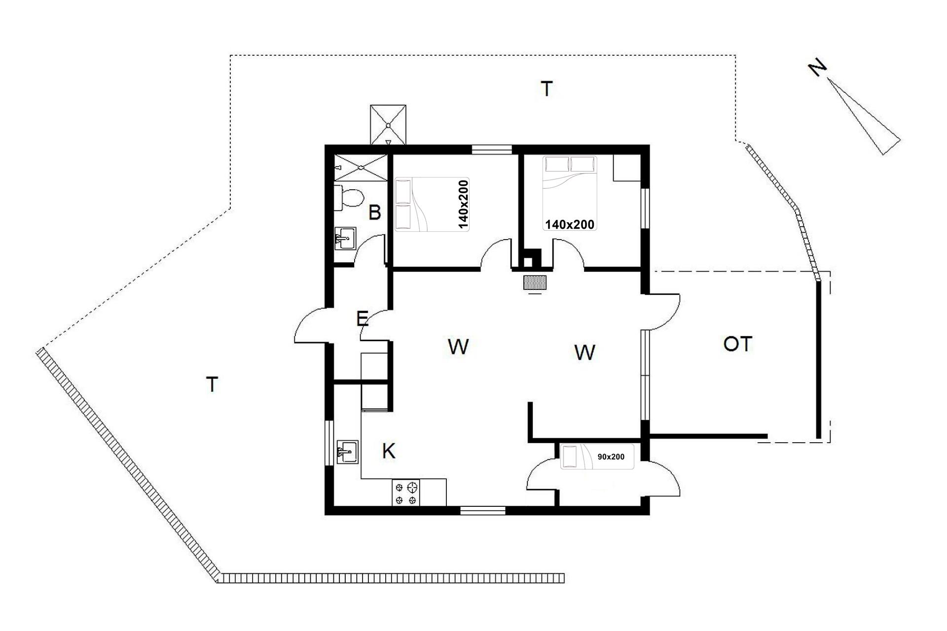 Sengestørrelser: 2 dobbeltsenge 140 x 200 cm + 1 enkeltseng 90 x 200 cm.