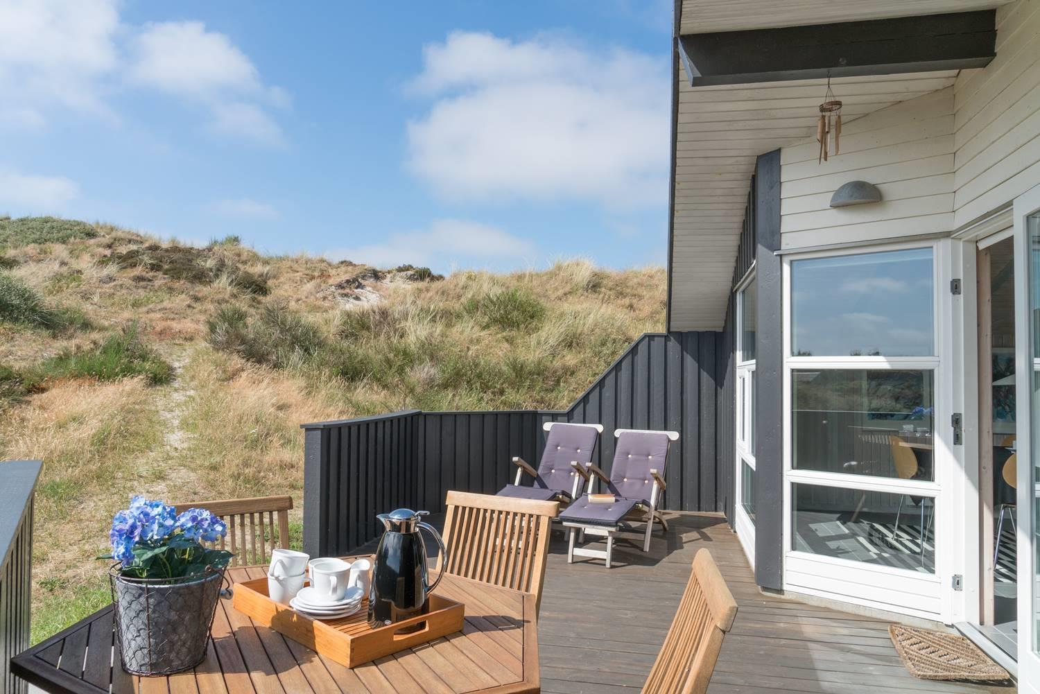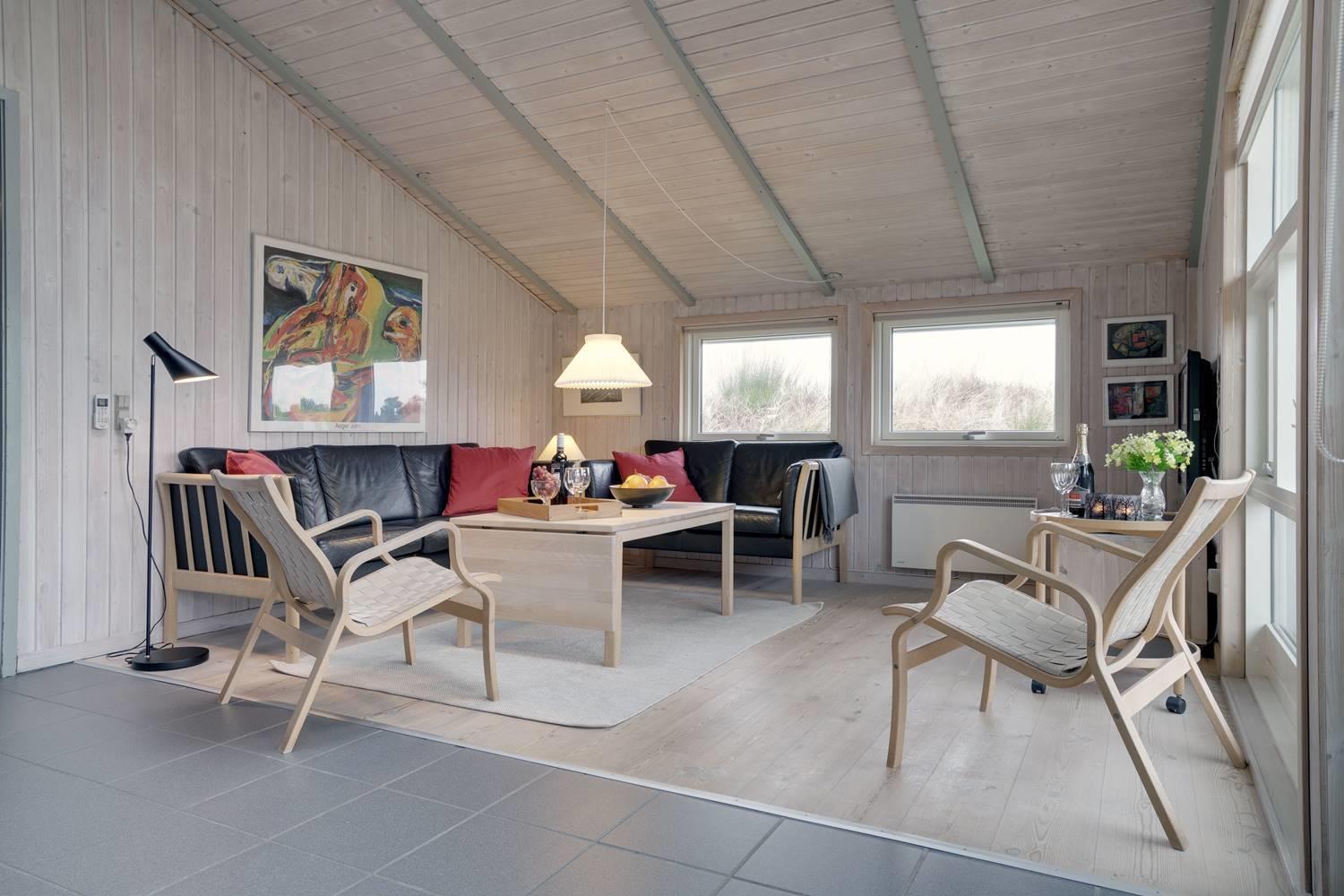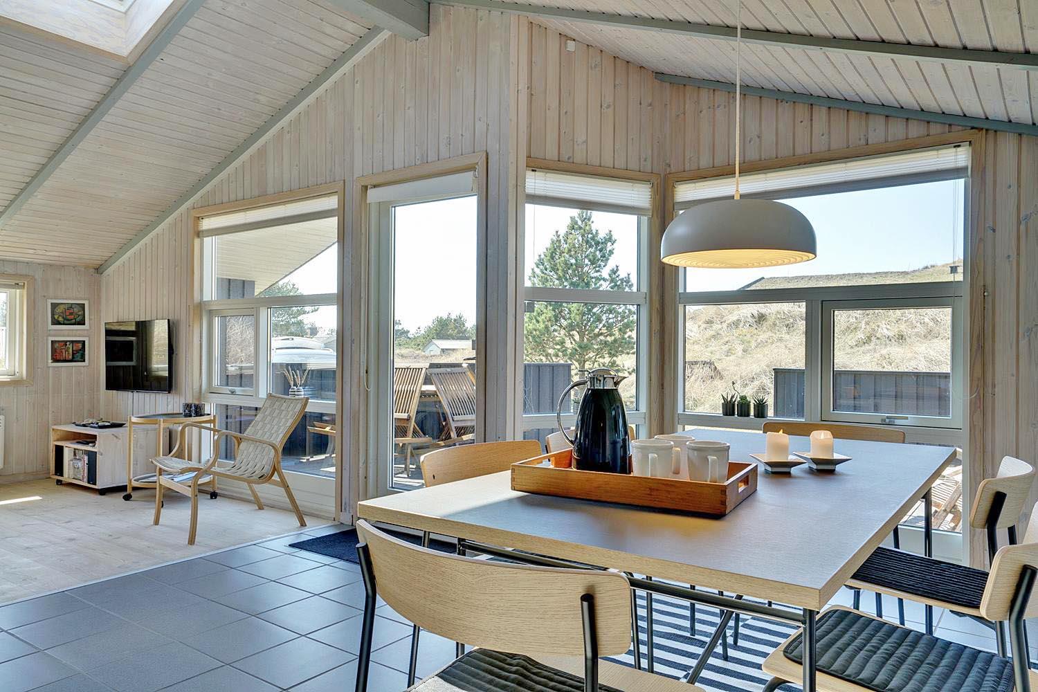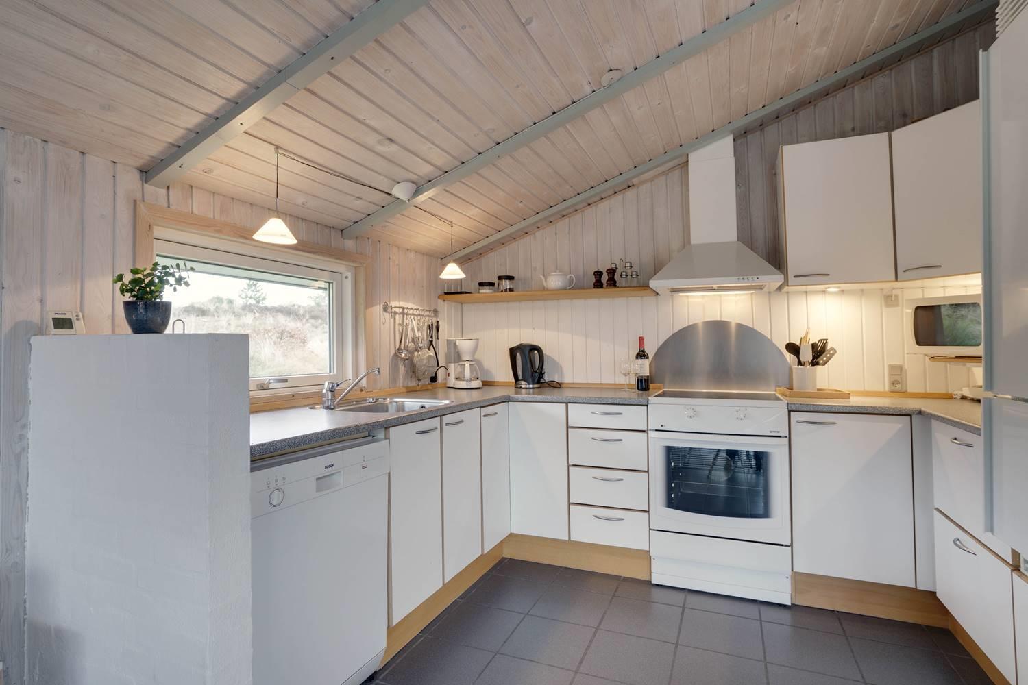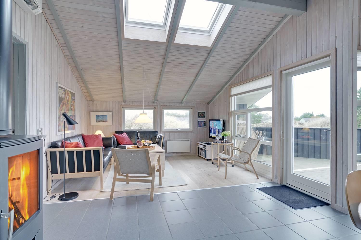 Hyggeligt og meget velholdt feriehus beliggende på en ugeneret klitgrund for enden af blind vej mod fredet lyngområde. Godt veludstyret køkken som er kombineret med opholds og spisestue med brændeovn. Velindrettet med god møblering. 2 gode terrasser.
