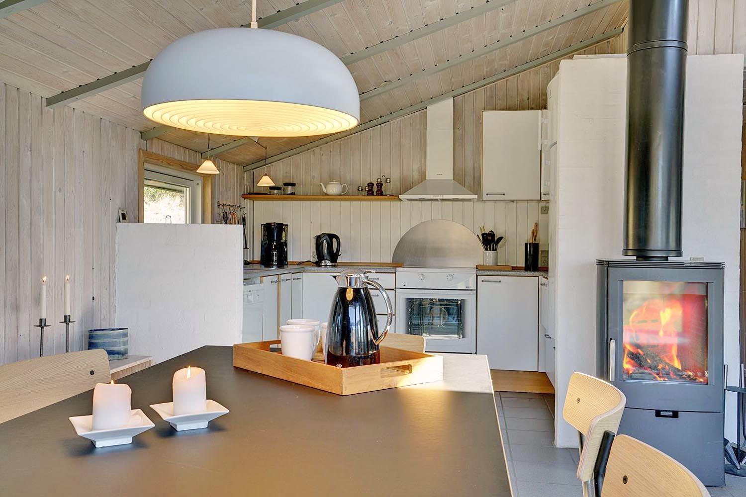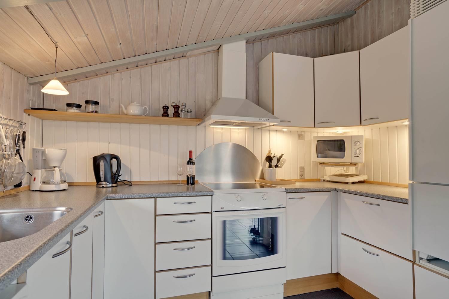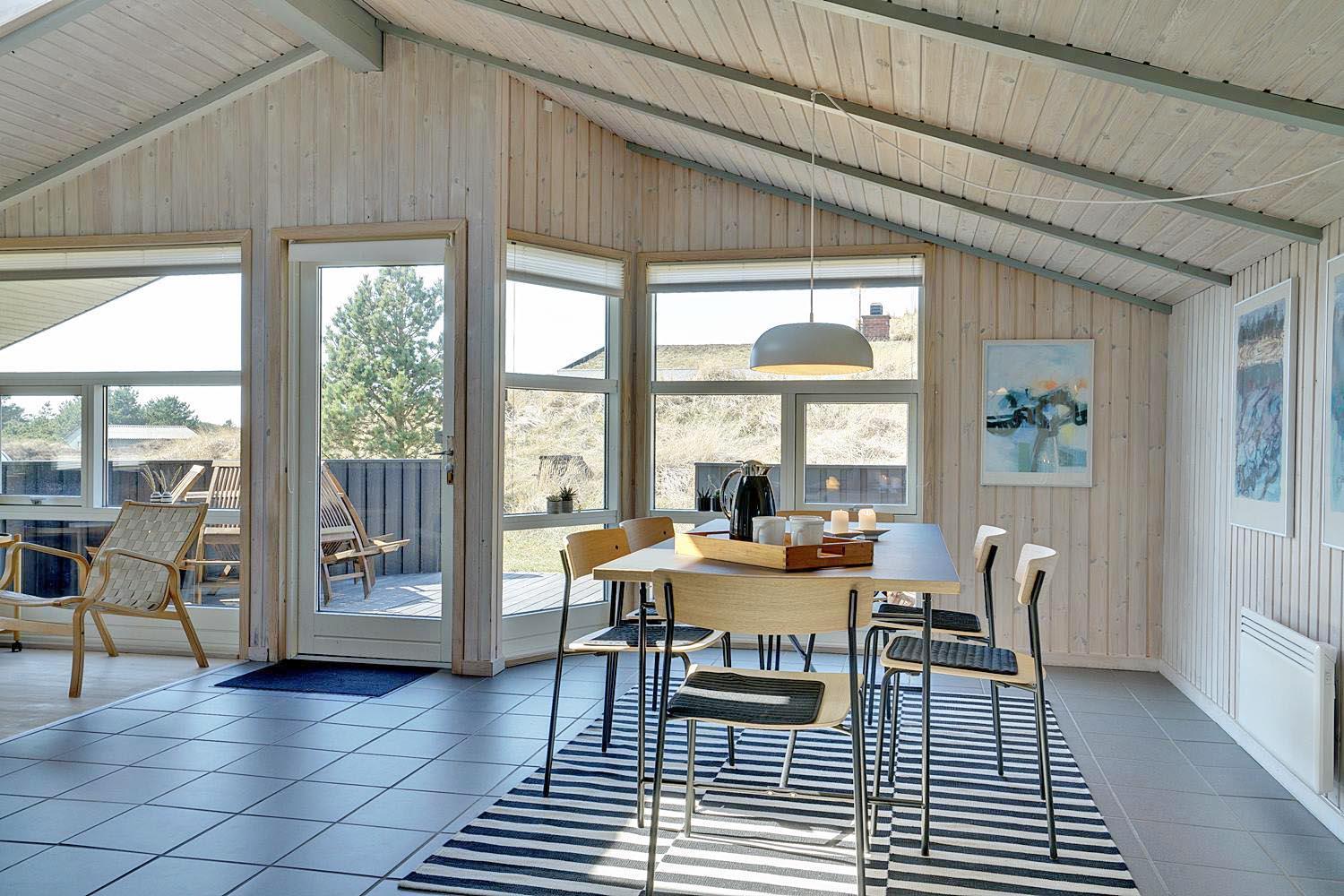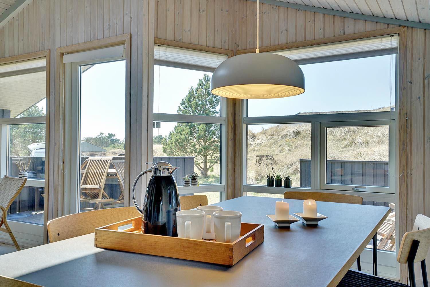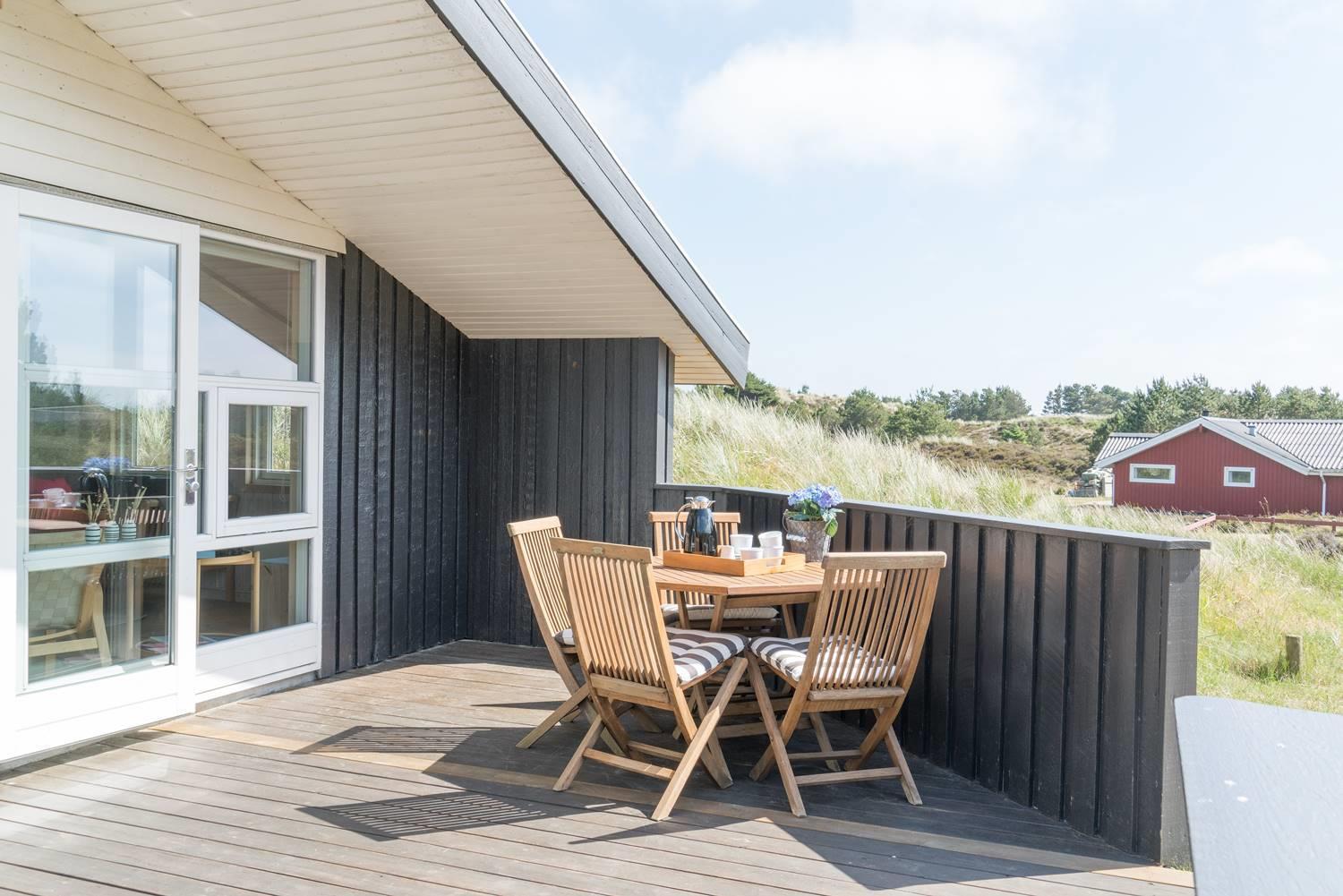 Hyggeligt og meget velholdt feriehus beliggende på en ugeneret klitgrund for enden af blind vej mod fredet lyngområde. Godt veludstyret køkken som er kombineret med opholds og spisestue med brændeovn. Velindrettet med god møblering. 2 gode terrasser.