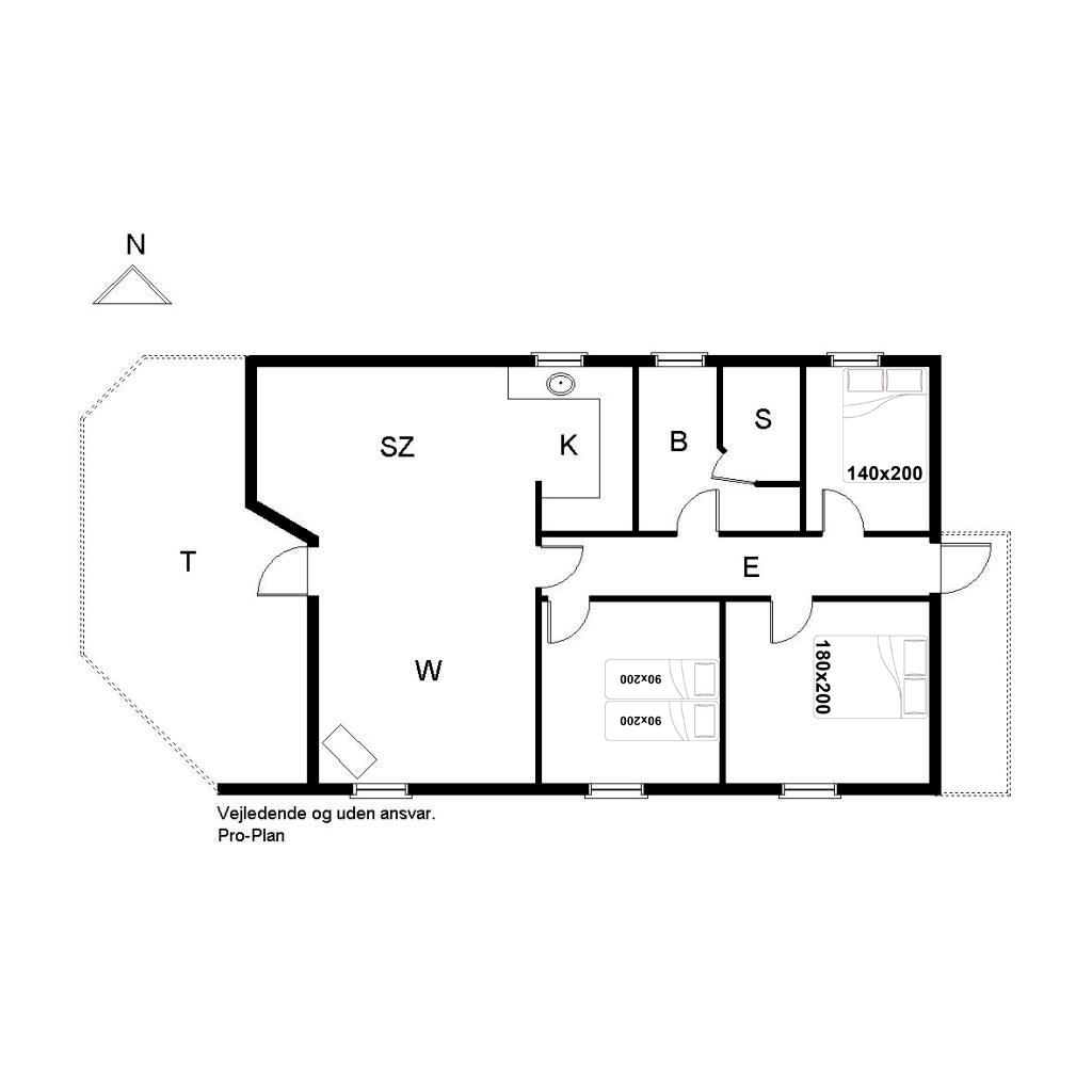 Sengestørrelse: 1 dobbeltseng med 2 madrasser 90 x 200 cm + 1 dobbeltseng 180 x 200 cm + 1 dobbeltseng 140 x 200 cm.