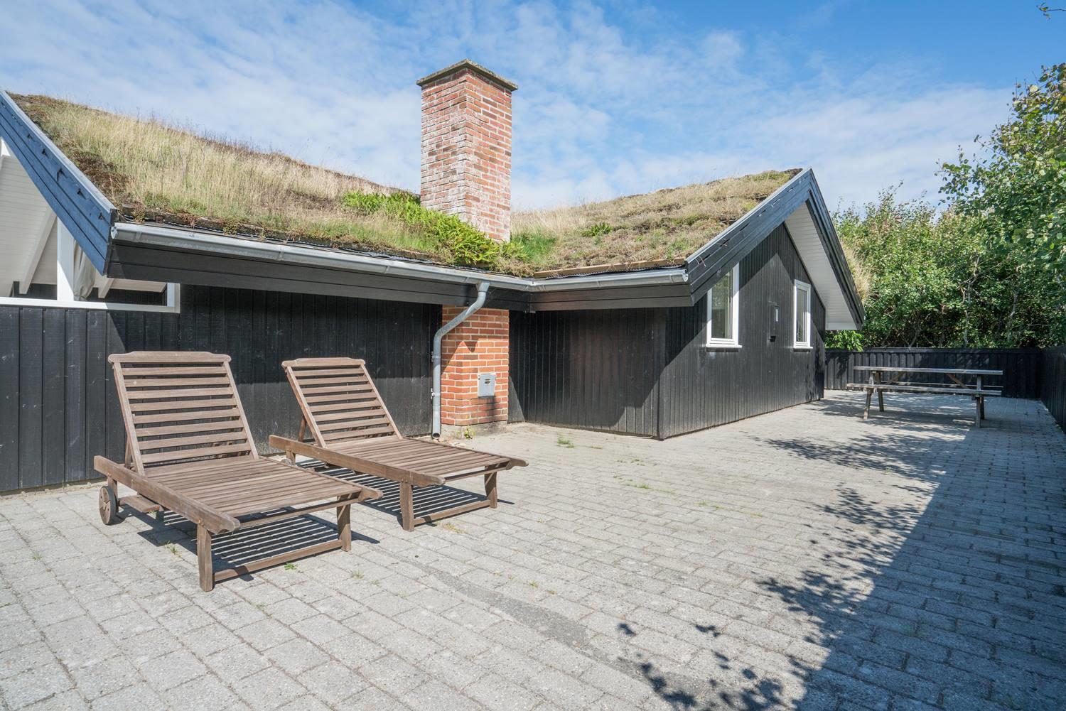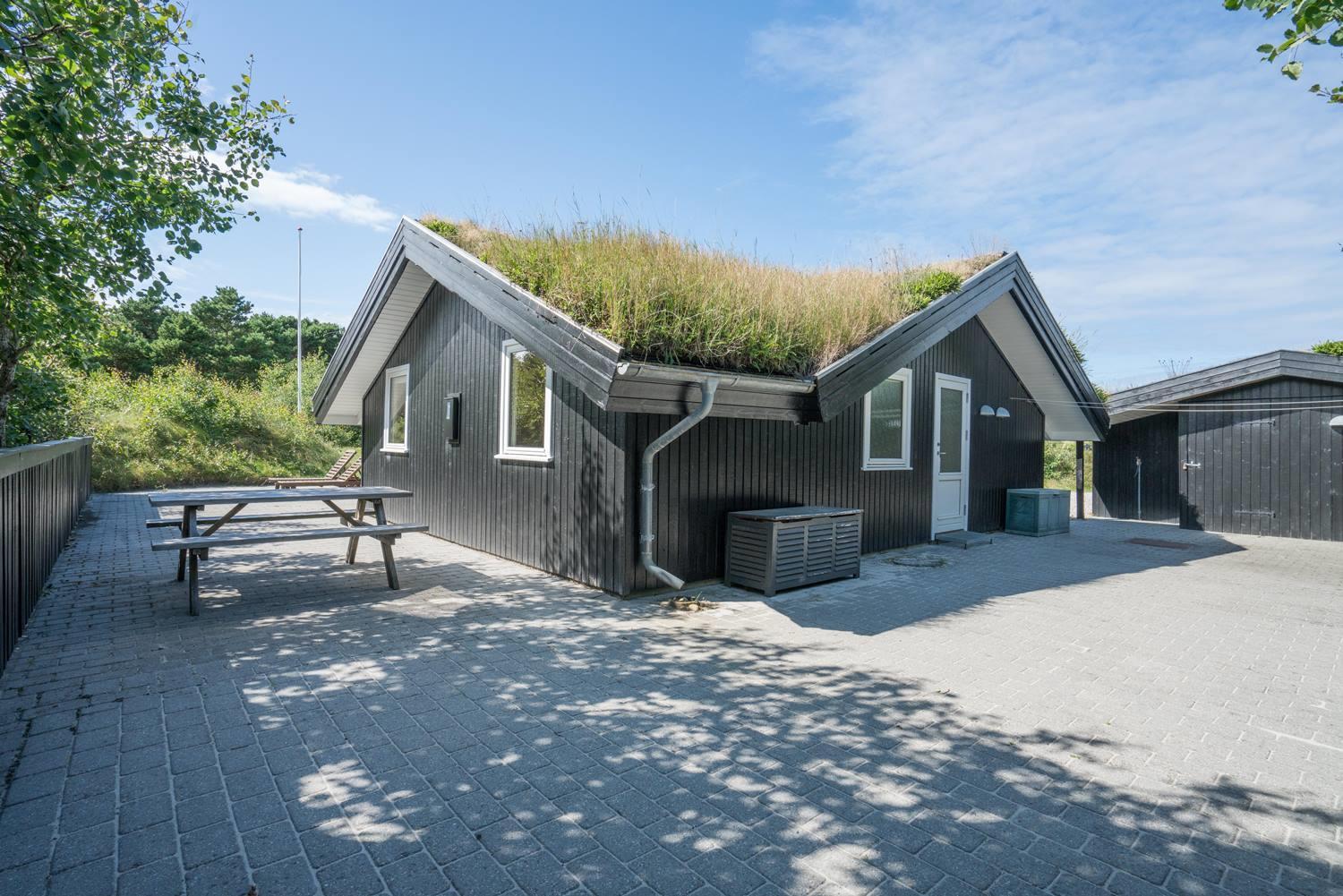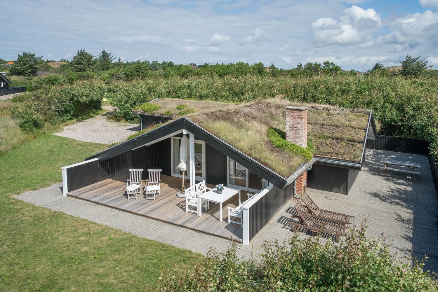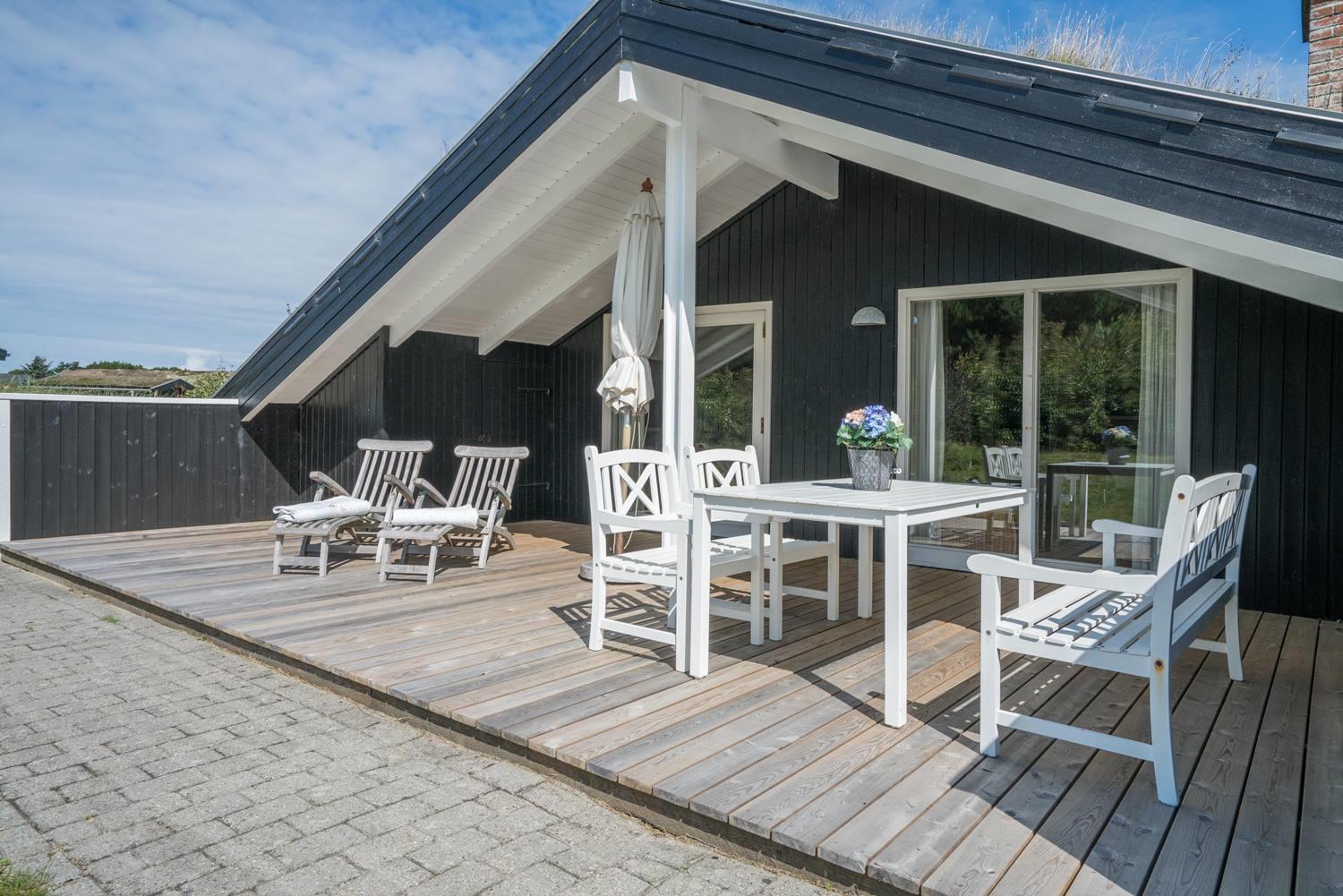 Beliggende midt i fredfyldt natur hun få hundrede meter til Vesterhavet, ligger dette personligt indrettet feriehus kun et par hundrede meter fra de smukke klitter ved Henne Strand. Huset fremstår overalt meget velholdt. I husets stue kan der slappes af foran brændeovnen eller i det hyggelige sofa hjørne. Husets veludstyrede køkken er i åben forbindelse med stuen, hvor fra der er udgang til den dejlige terrasser som omkranser huset. Huset råder over 3 gode soverum. Et skønt feriehus midt i smukt klitlandskab og i gå afstand til stranden.