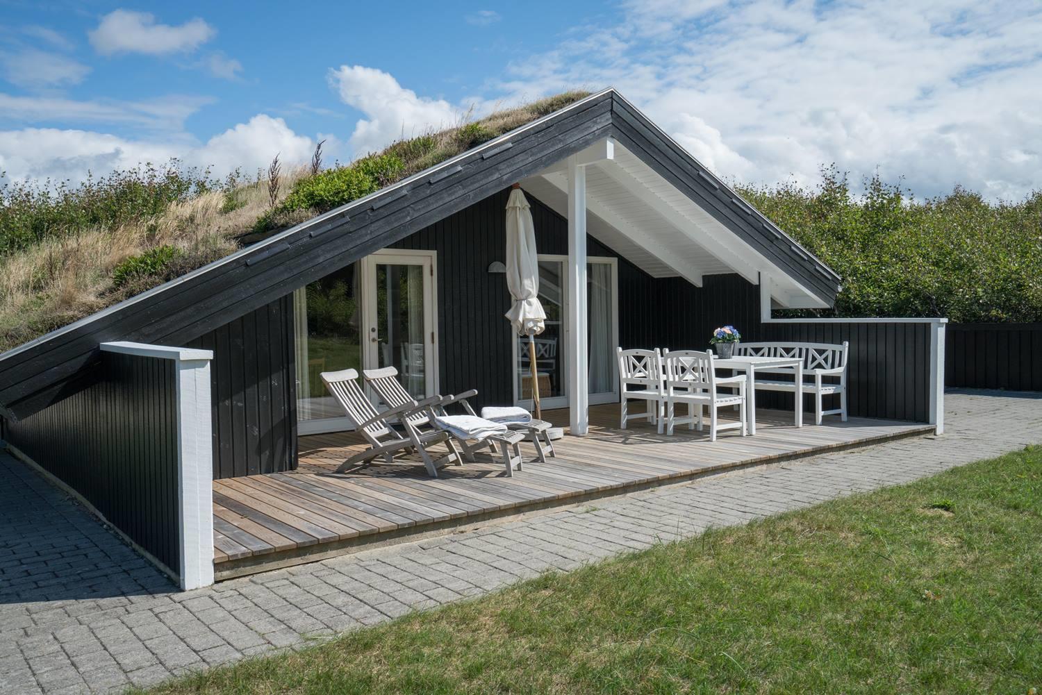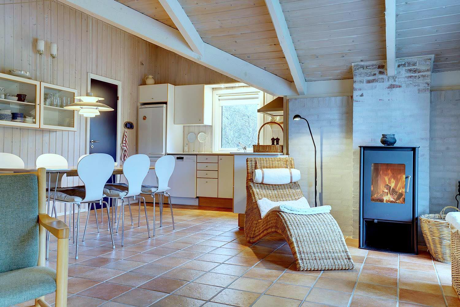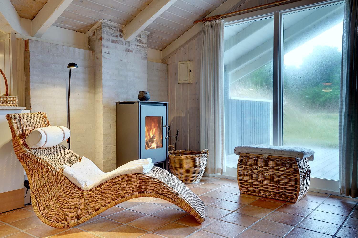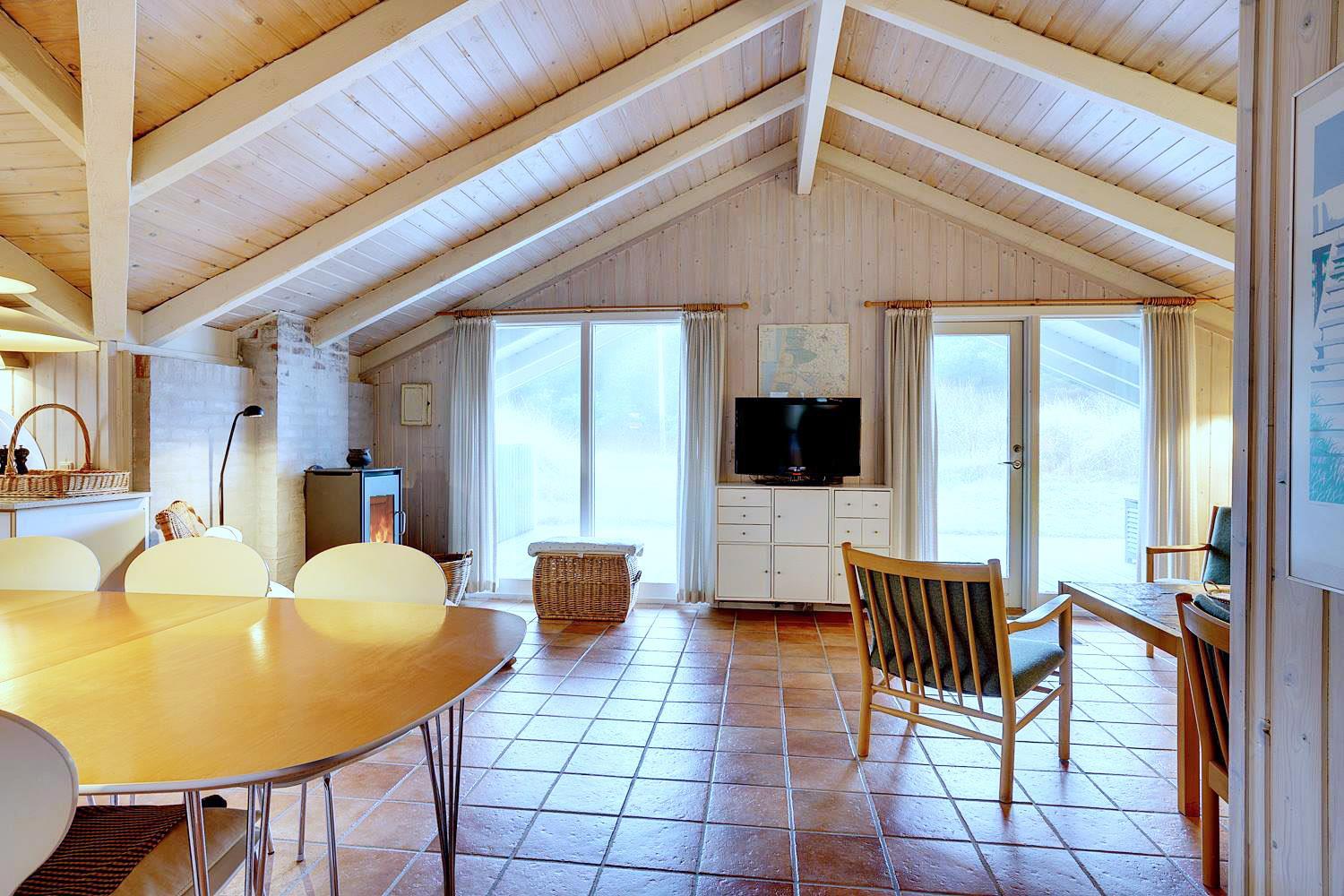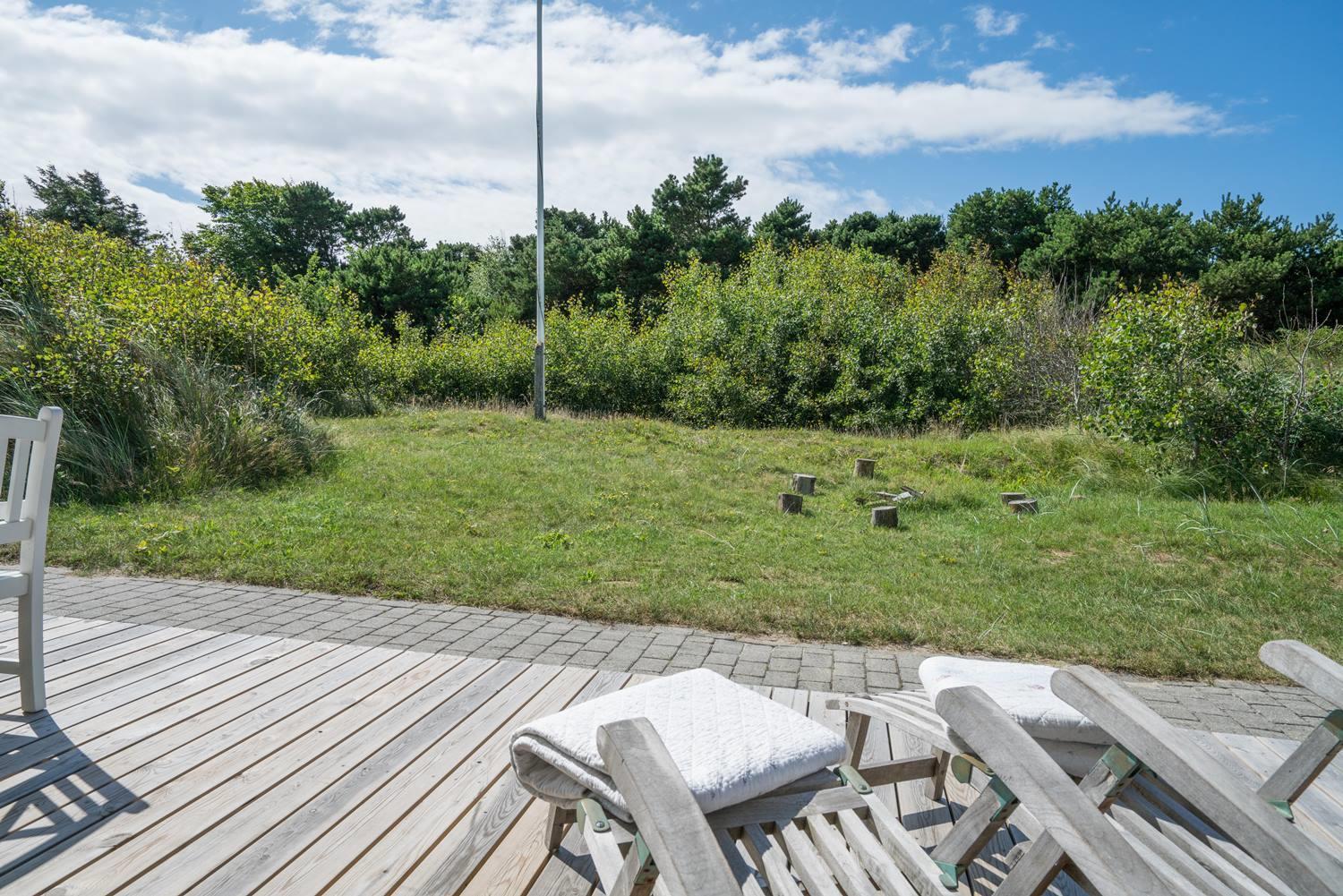 Beliggende midt i fredfyldt natur hun få hundrede meter til Vesterhavet, ligger dette personligt indrettet feriehus kun et par hundrede meter fra de smukke klitter ved Henne Strand. Huset fremstår overalt meget velholdt. I husets stue kan der slappes af foran brændeovnen eller i det hyggelige sofa hjørne. Husets veludstyrede køkken er i åben forbindelse med stuen, hvor fra der er udgang til den dejlige terrasser som omkranser huset. Huset råder over 3 gode soverum. Et skønt feriehus midt i smukt klitlandskab og i gå afstand til stranden.