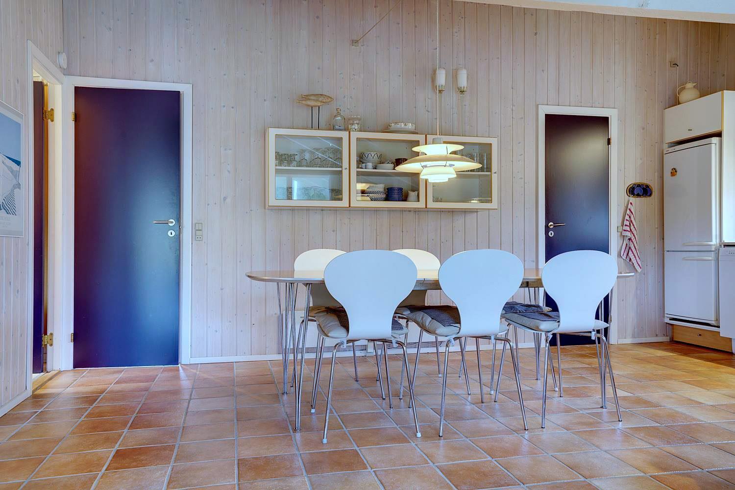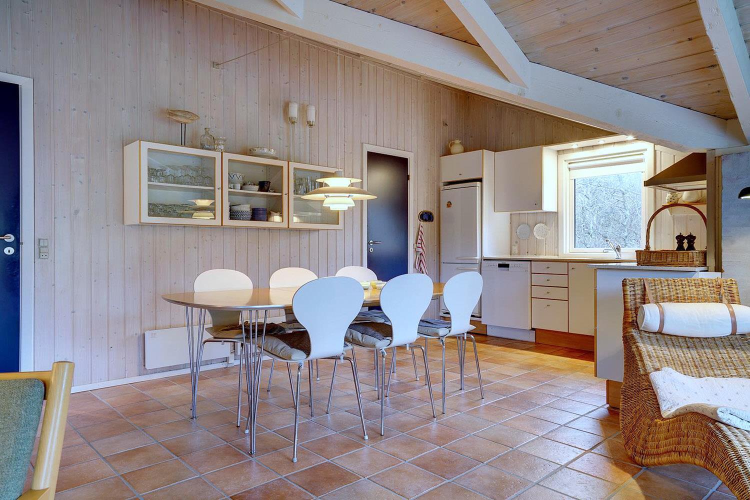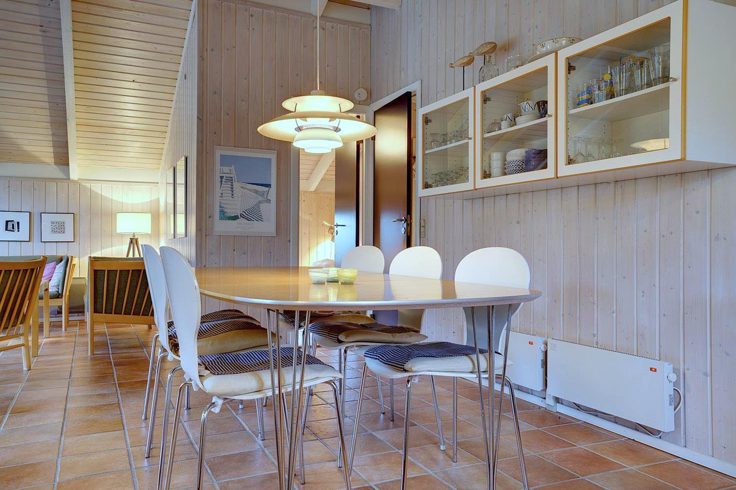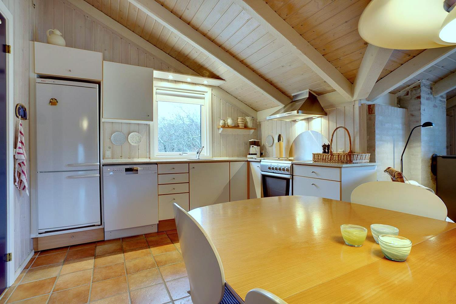 Beliggende midt i fredfyldt natur hun få hundrede meter til Vesterhavet, ligger dette personligt indrettet feriehus kun et par hundrede meter fra de smukke klitter ved Henne Strand. Huset fremstår overalt meget velholdt. I husets stue kan der slappes af foran brændeovnen eller i det hyggelige sofa hjørne. Husets veludstyrede køkken er i åben forbindelse med stuen, hvor fra der er udgang til den dejlige terrasser som omkranser huset. Huset råder over 3 gode soverum. Et skønt feriehus midt i smukt klitlandskab og i gå afstand til stranden.