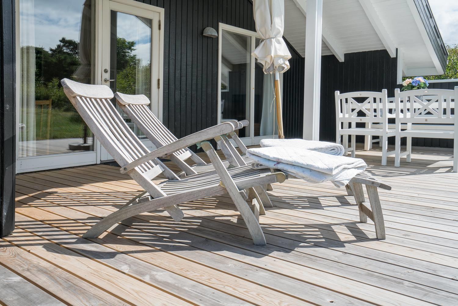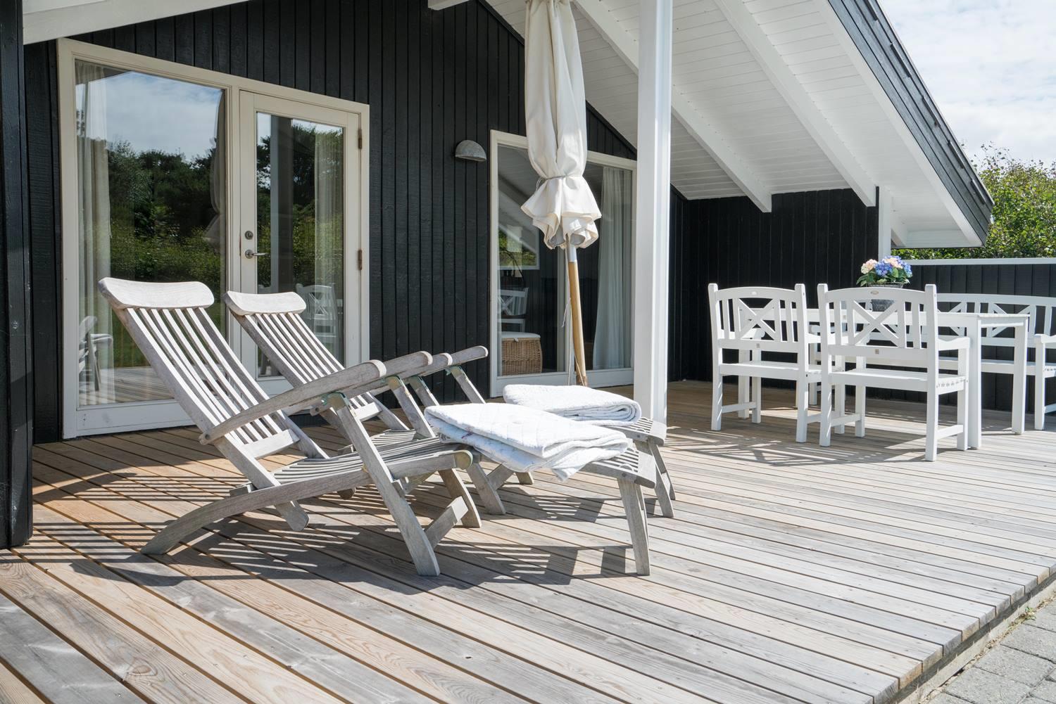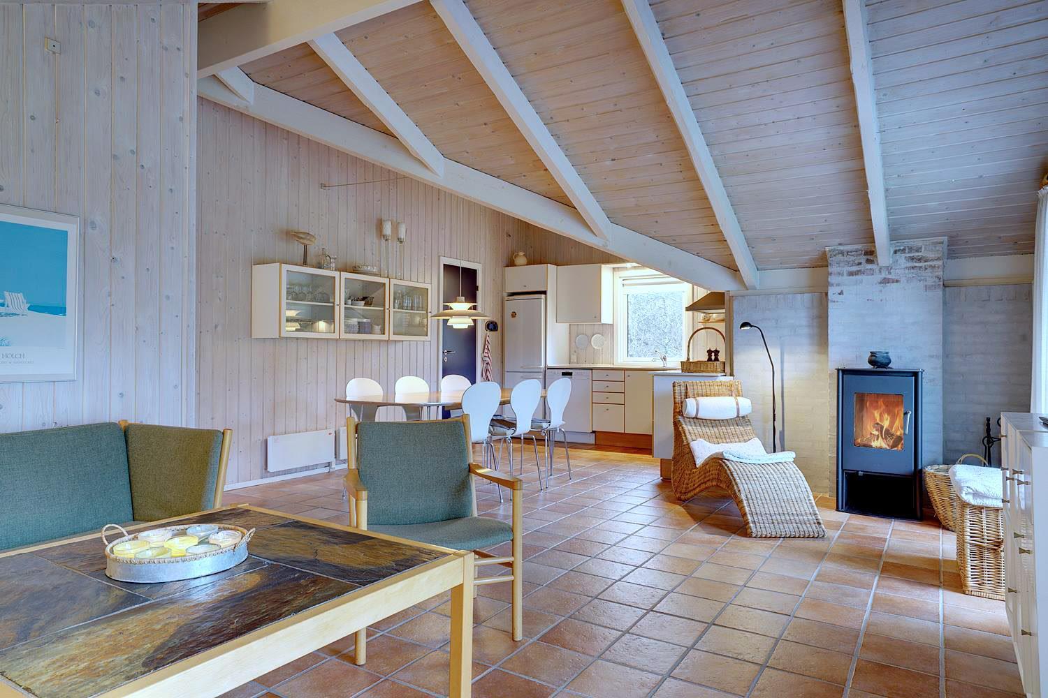 Hyggeligt og velholdt feriehus tæt på Vesterhavet og klitterne ved Henne Strand med terrasse og brændeovn.