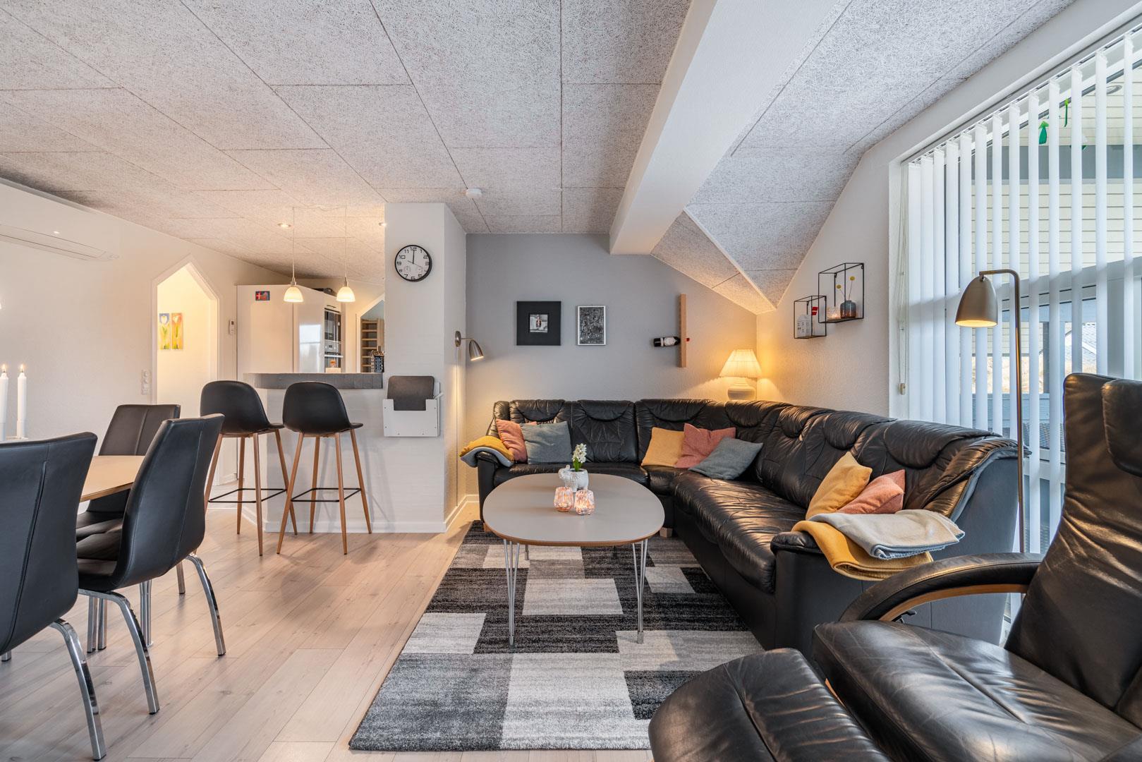Lys stue med åben køkkenløsning og 4 soverum