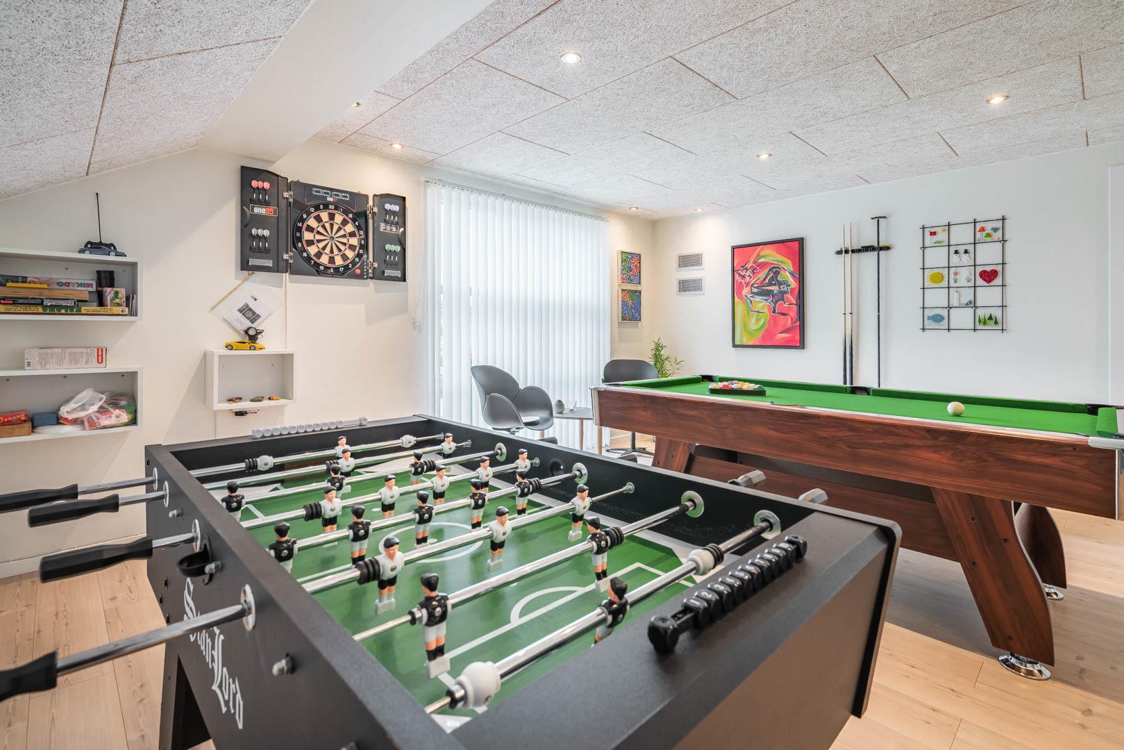 Aktivitetsrum med billard, dart og sauna til afslapning og sjov