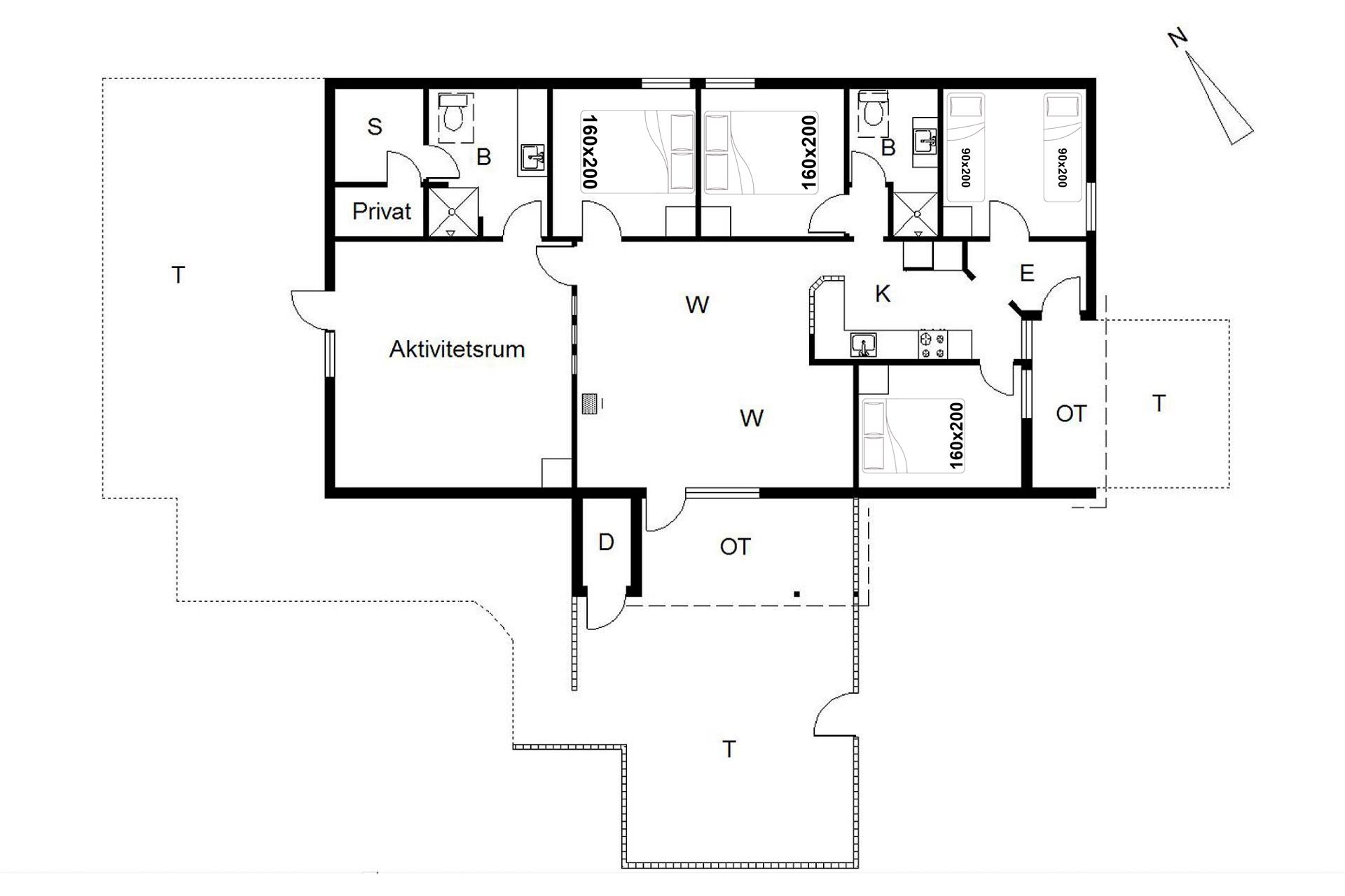 Sengestørrelse: 3 dobbeltsenge 160 x 200 cm + 2 enkeltsenge 90 x 200 cm