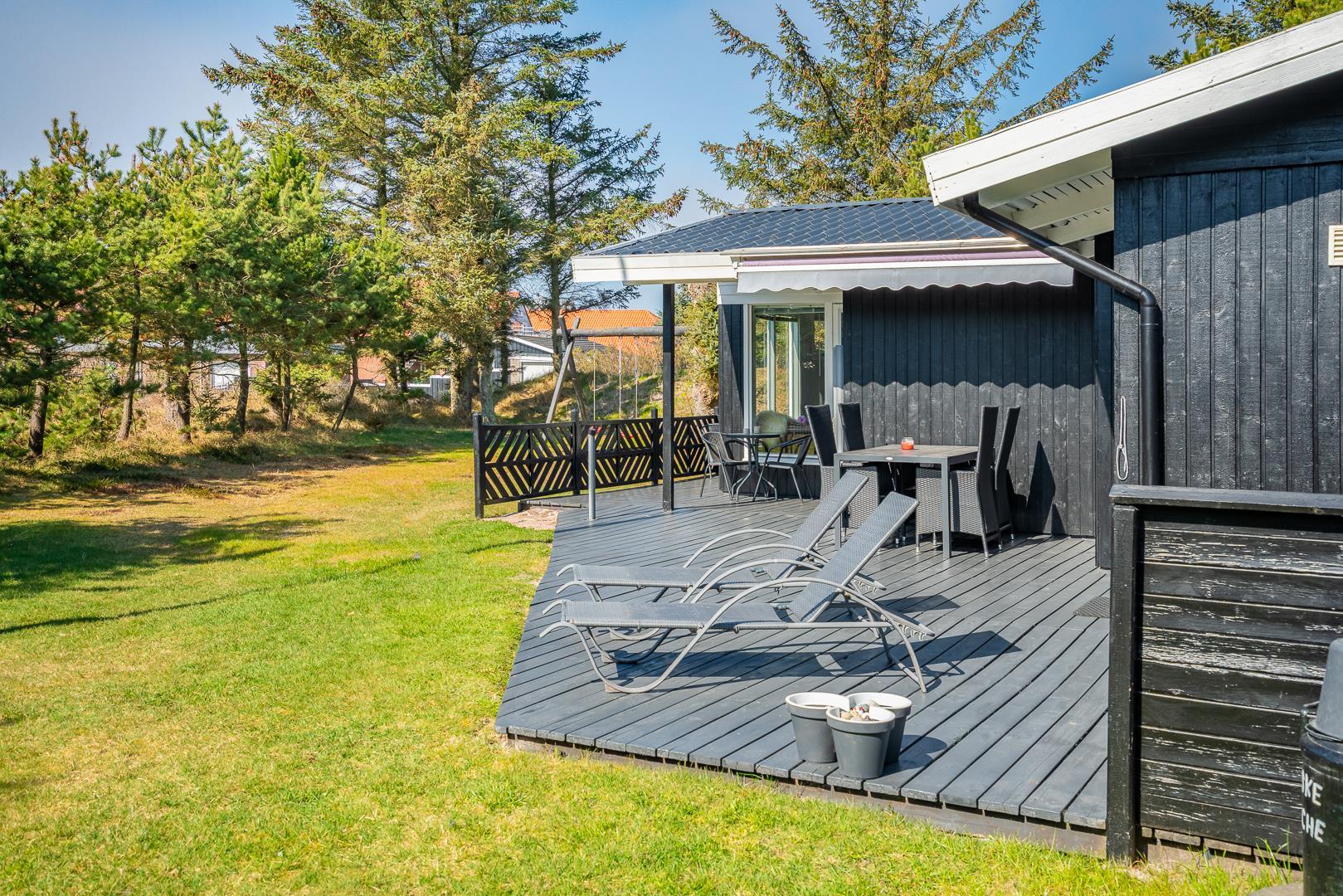Velholdt sommerhus i hjertet af Henne Strand – med sauna og skønne terrasser.