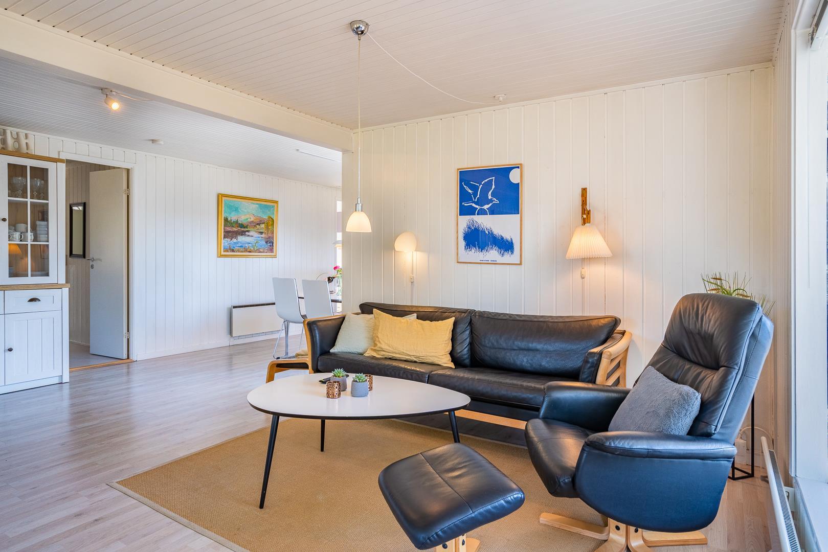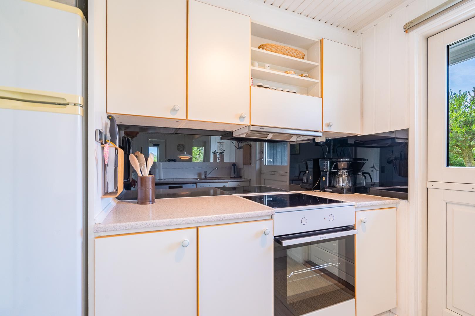 Derudover byder huset på et badeværelse med sauna, hvor du kan slappe af efter en dag på stranden. Det veludstyrede køkken er i åben forbindelse med stuen, så du kan lave mad, mens du stadig er en del af familiehyggen.