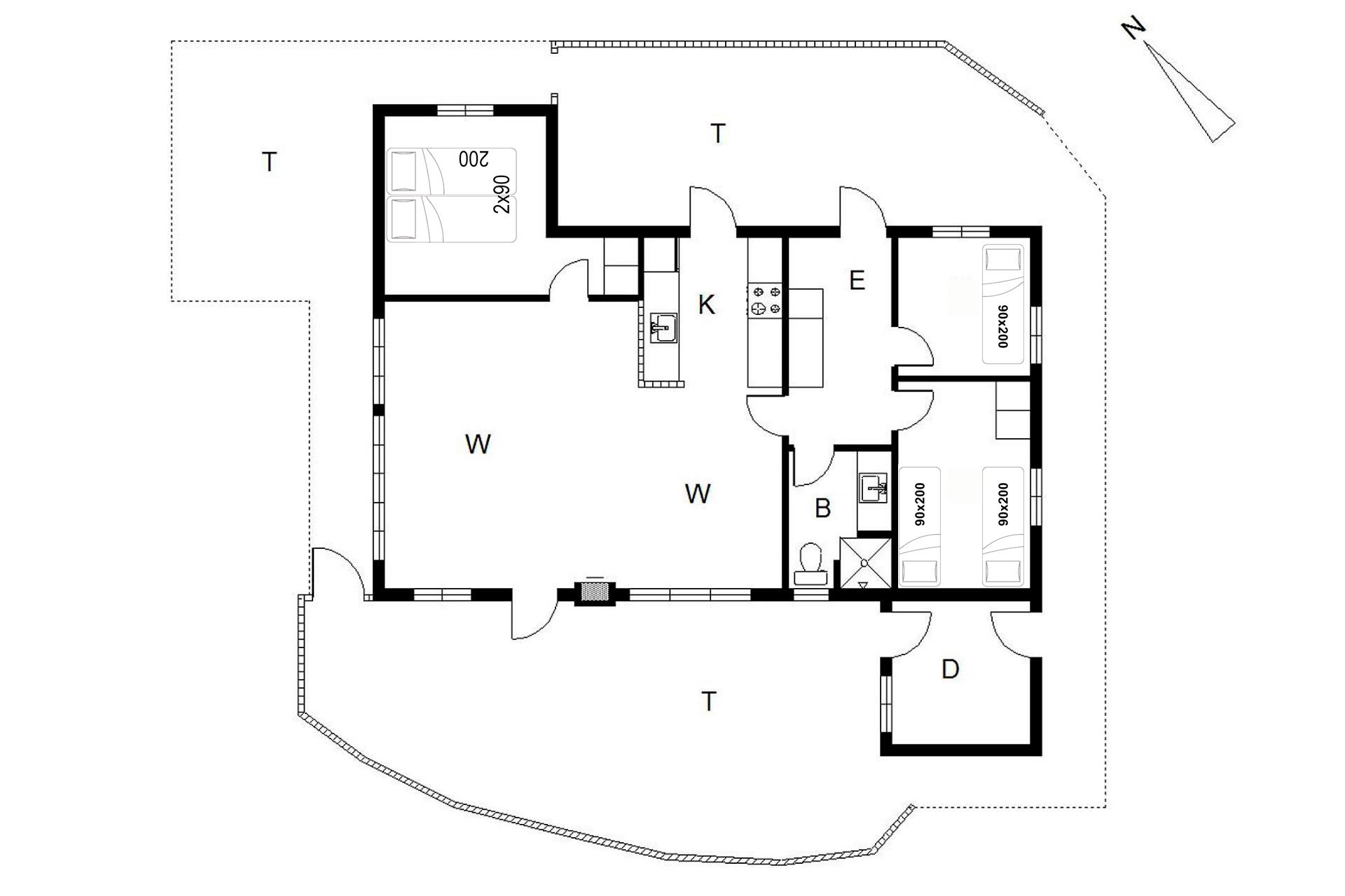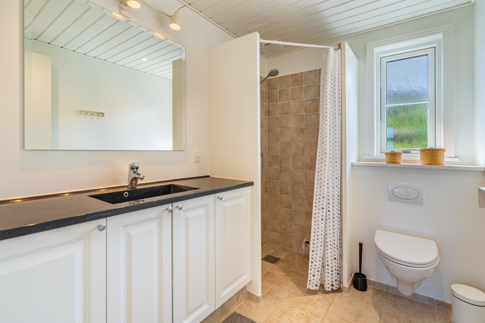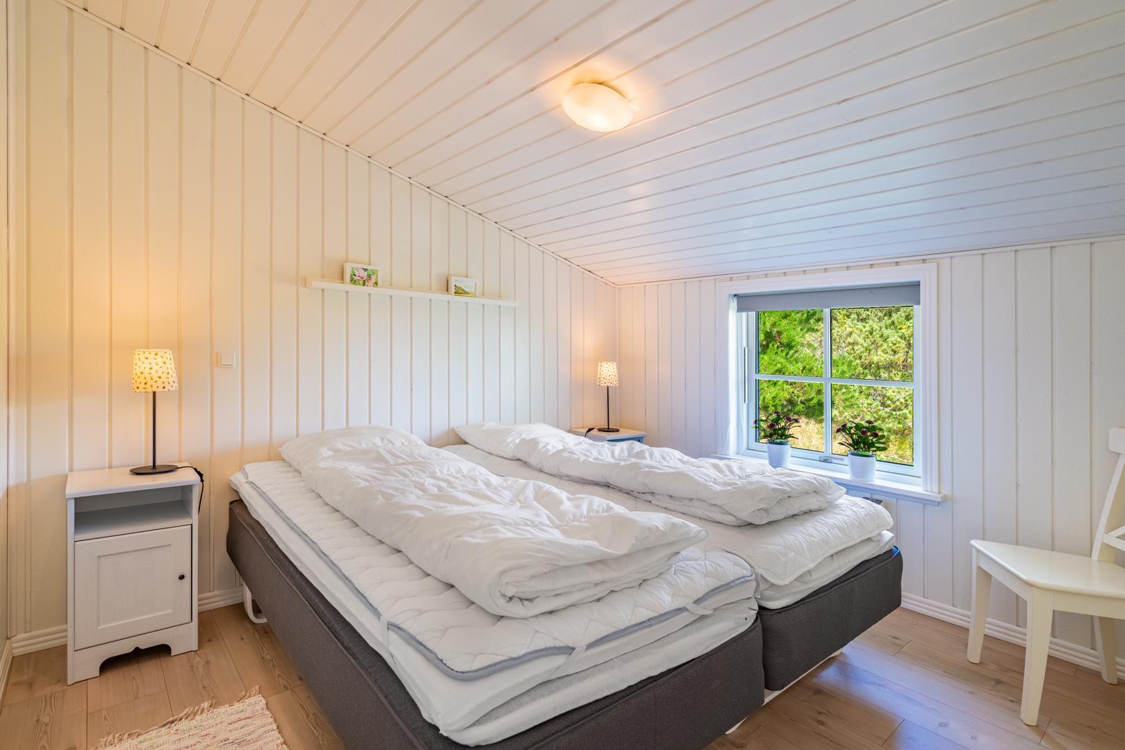 Huset byder på tre gode soveværelser og et flot badeværelse. Udendørs kan du nyde solen og stilheden på de omkringliggende træterrasser, der byder på gode lækroge og skøn udsigt til naturen.
