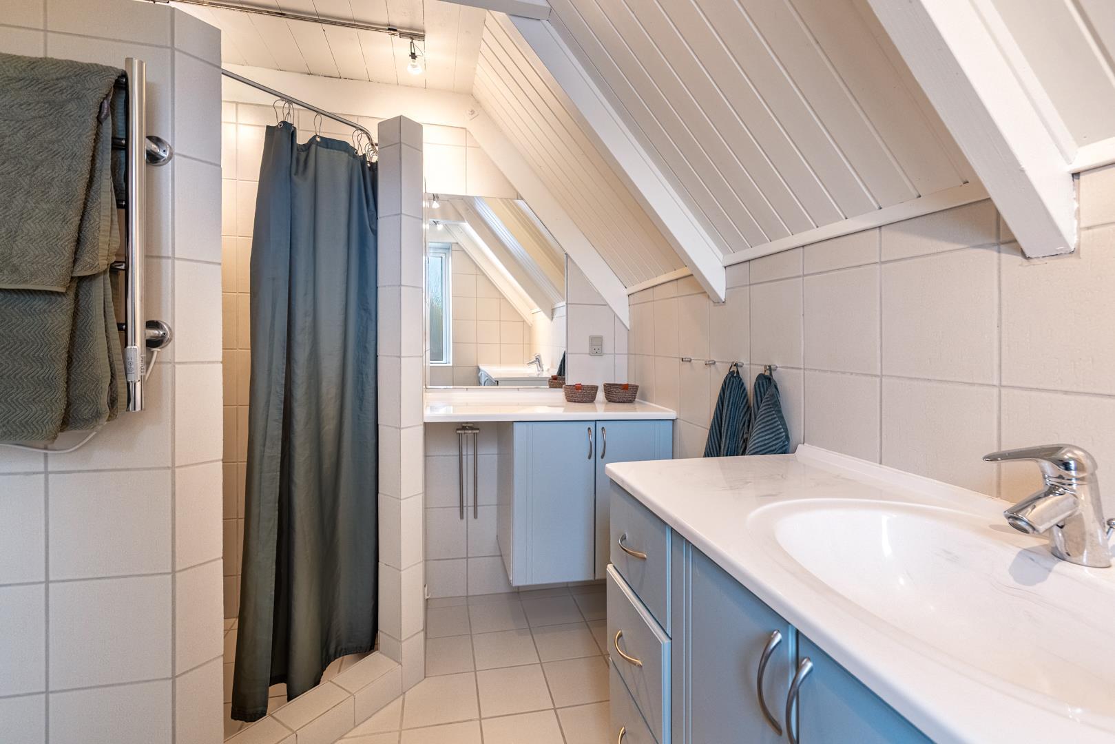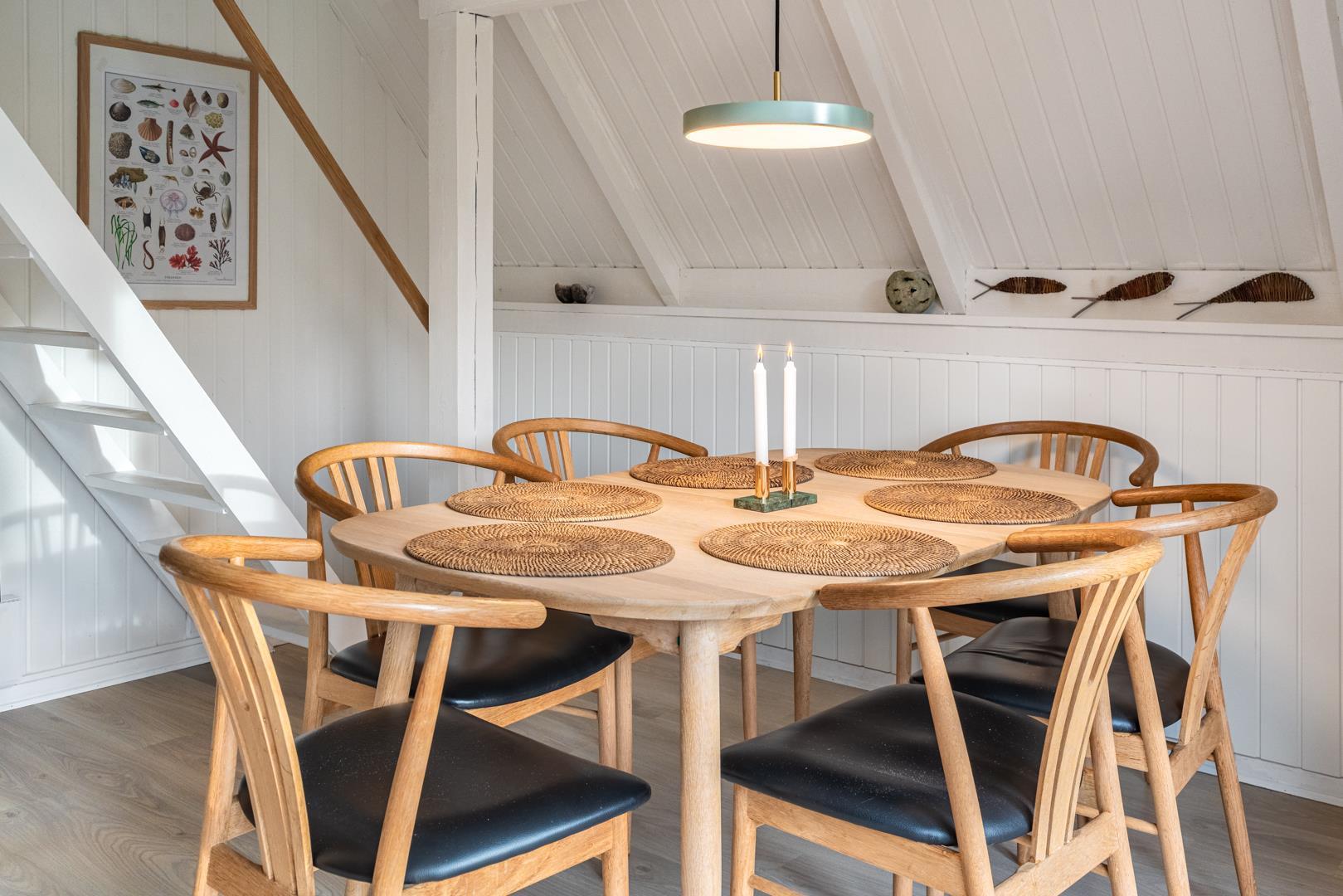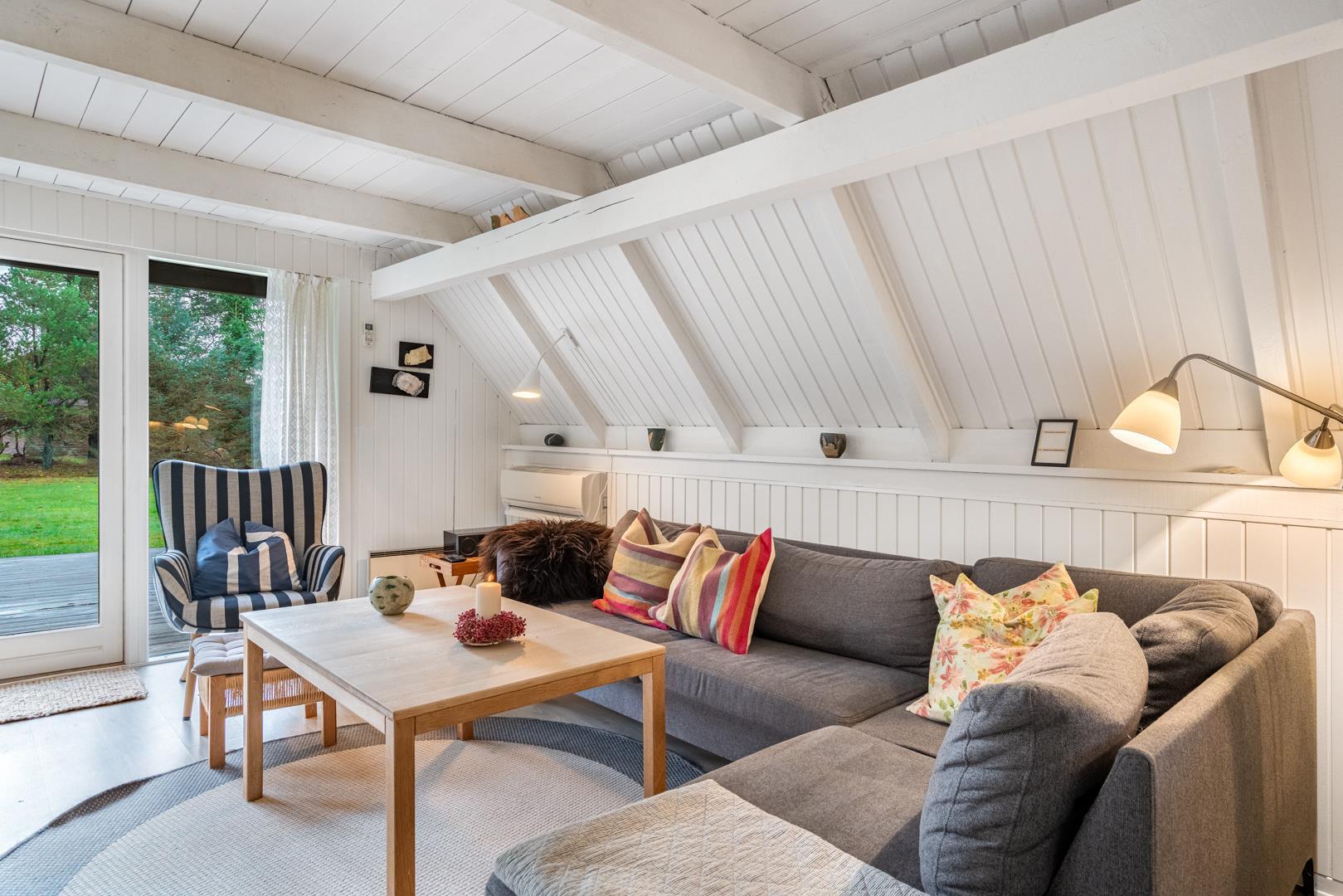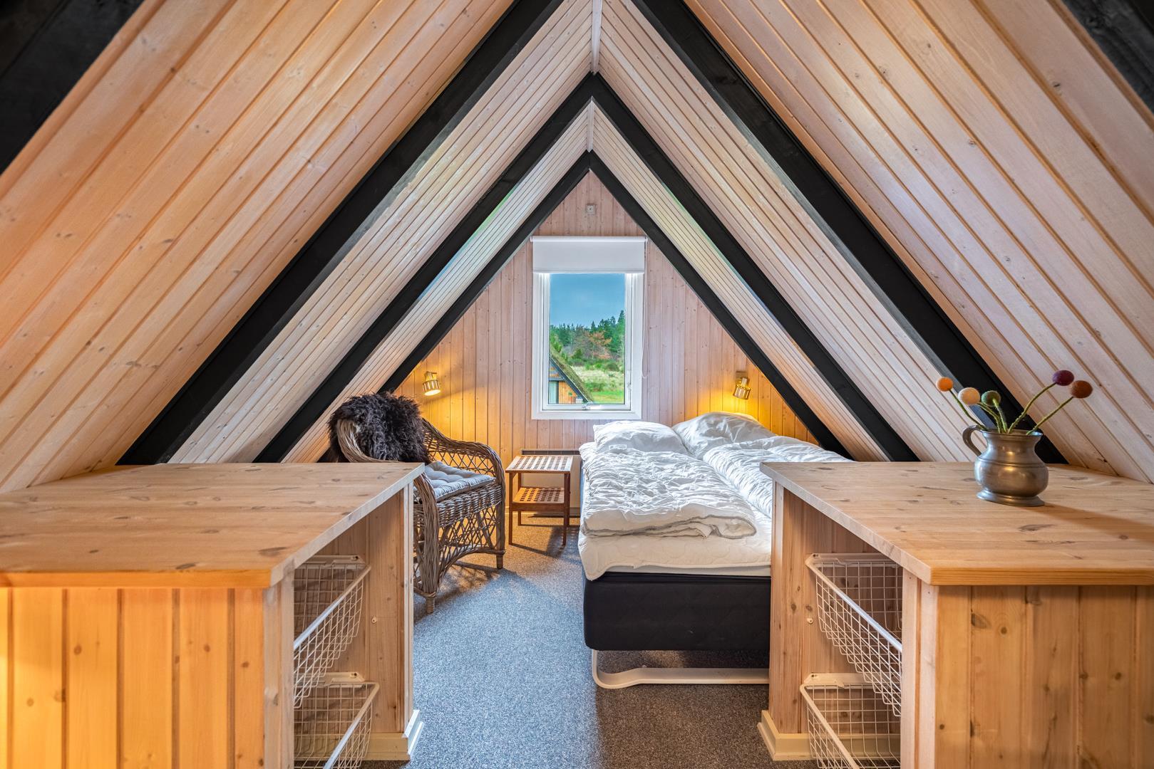 Sommerhuset har tre gode soveværelser: Ét i stueplan med dobbeltseng og to værelser på 1. sal – ét med dobbeltseng og ét med to enkeltsenge. Der er god plads til både familier og vennepar.