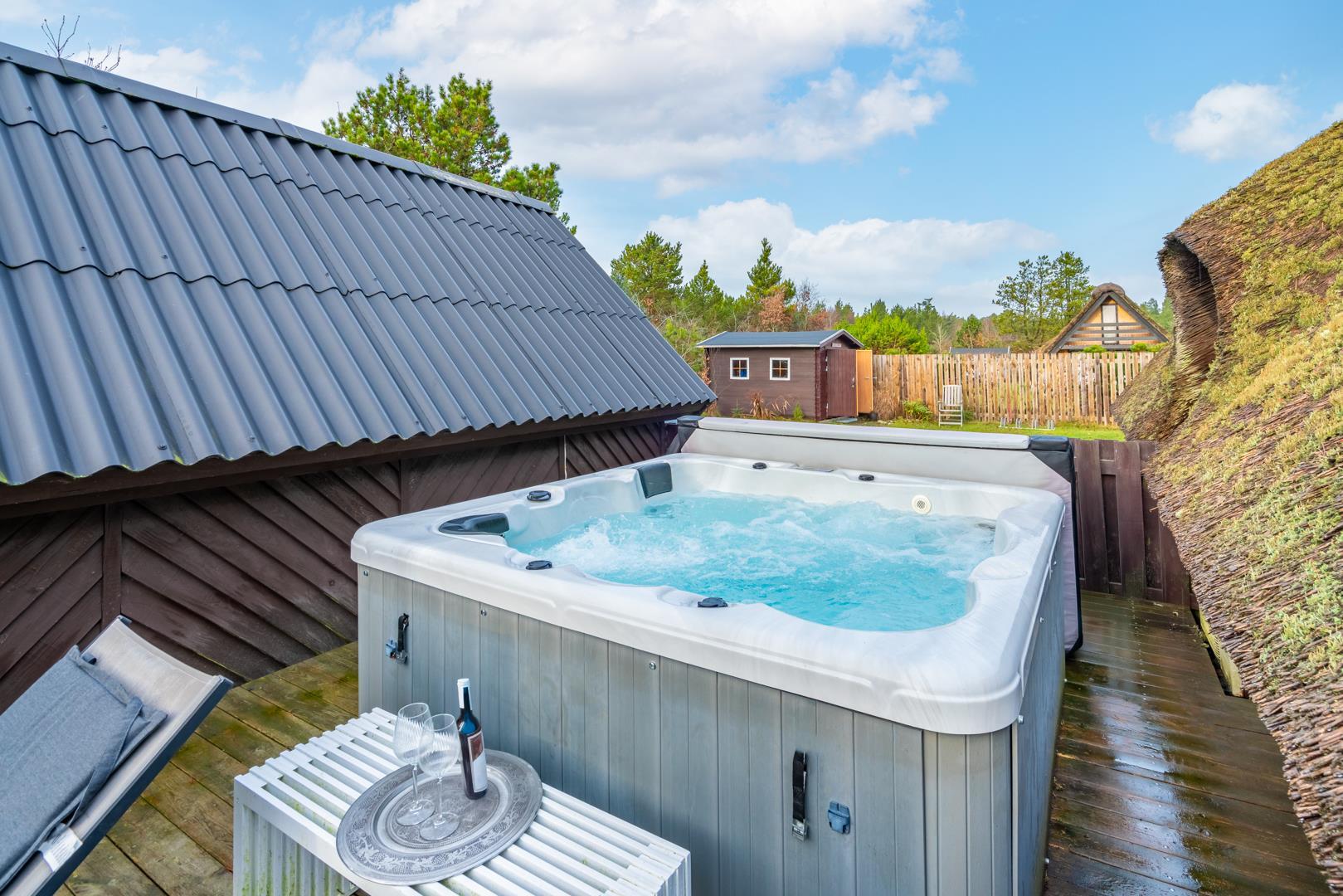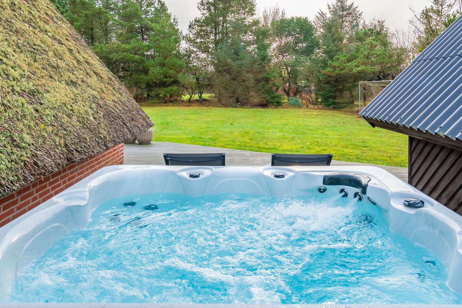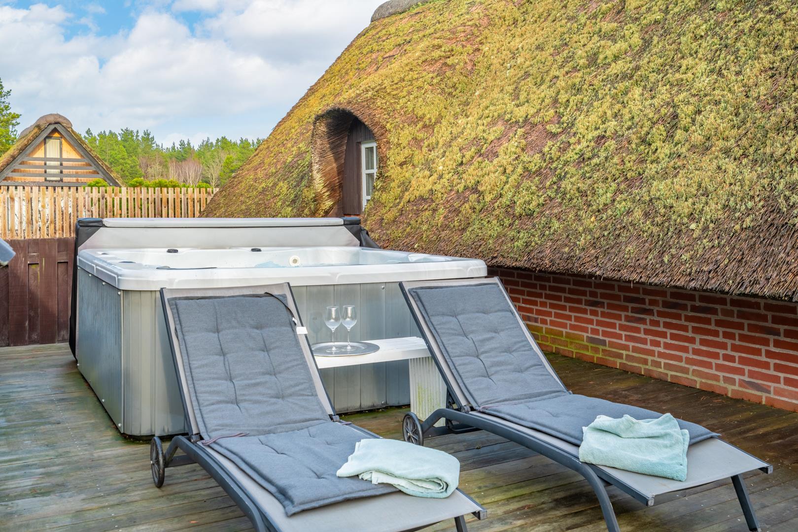 Spaen er placeret ugeneret på terrassen, så man kan nyde roen i fulde drag. Der er flere gode terrasser omkring huset, hvor man kan følge med i livet på den store naturgrund. Bemærk venligst: Annekset er privat. Aflåsbar depotrum til cykler.