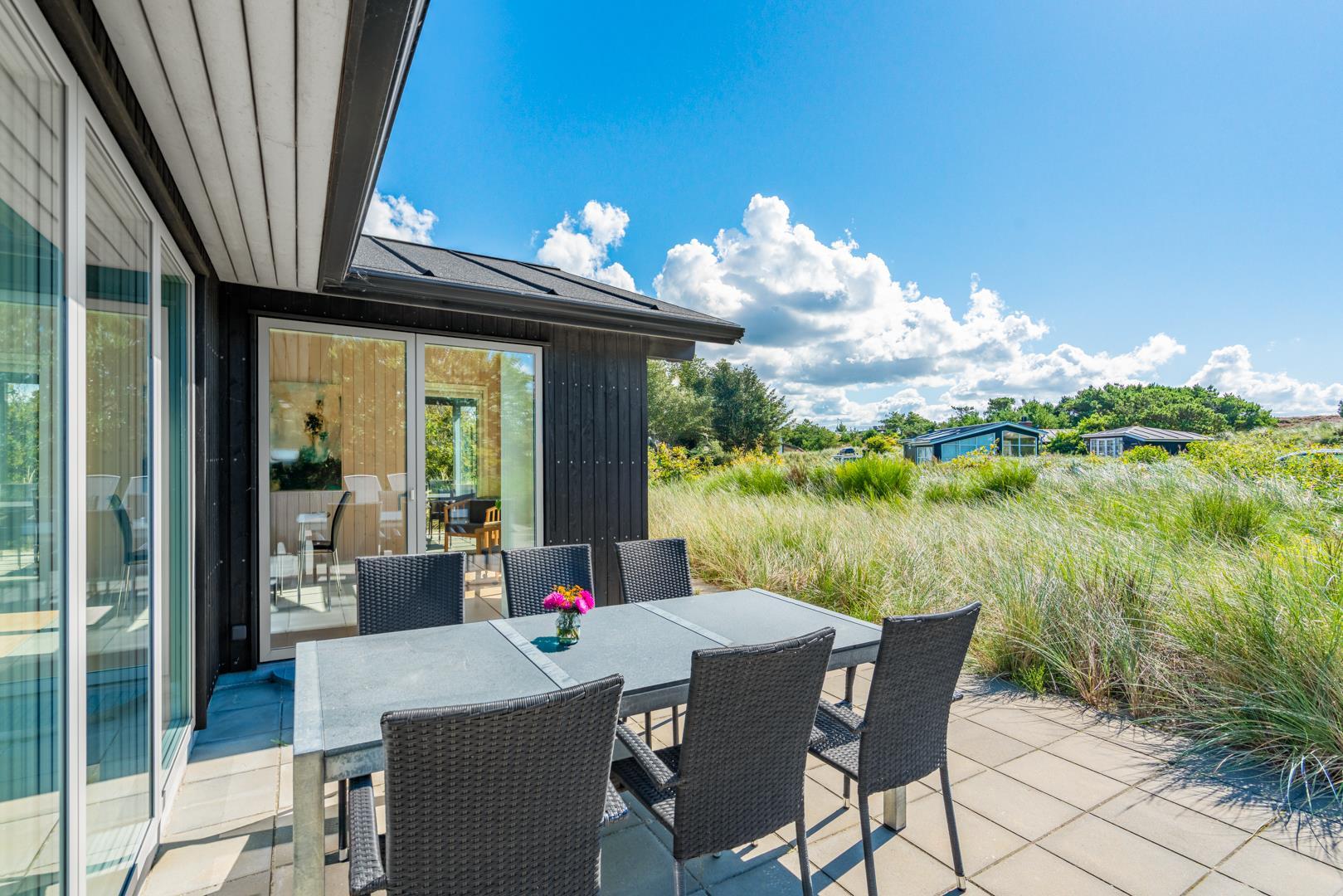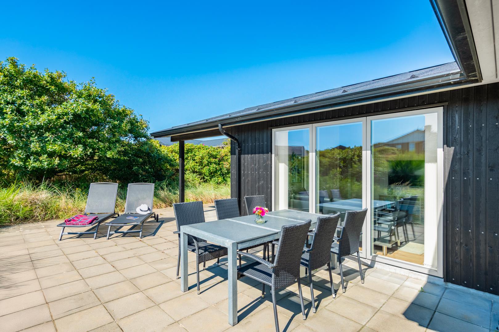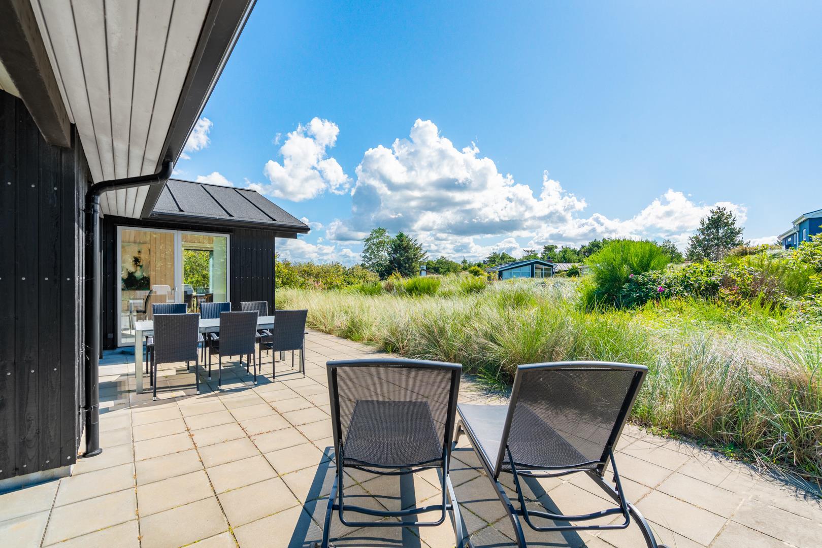 Morgenmaden kan nydes på den østvendte terrasse og solbadning og grillaftenen kan nydes på en af de andre terrasser som omkranser huset.