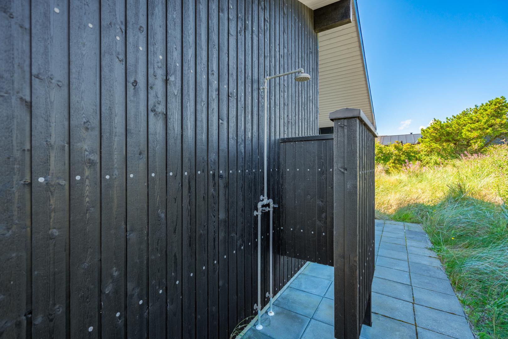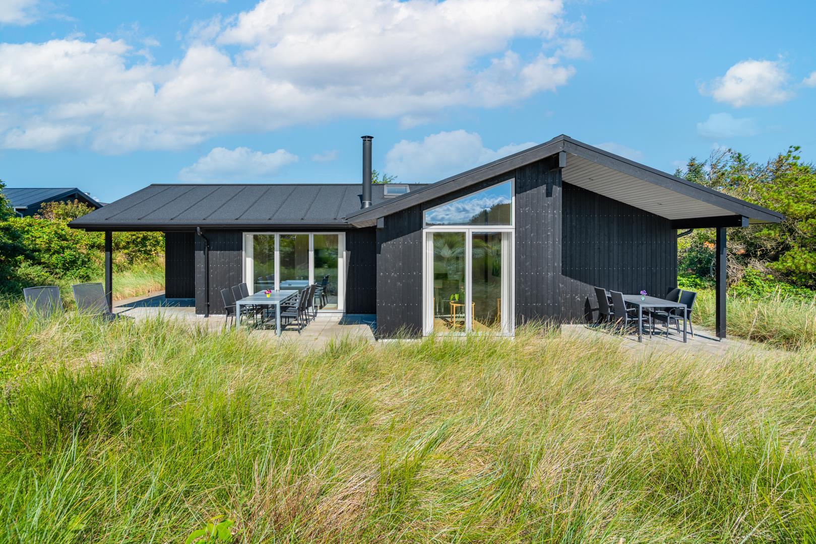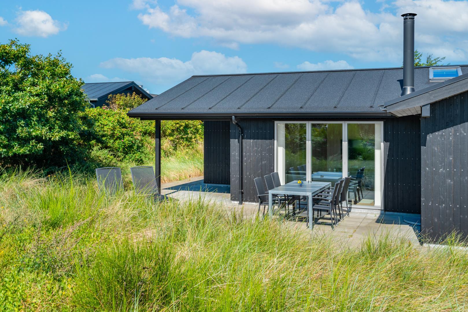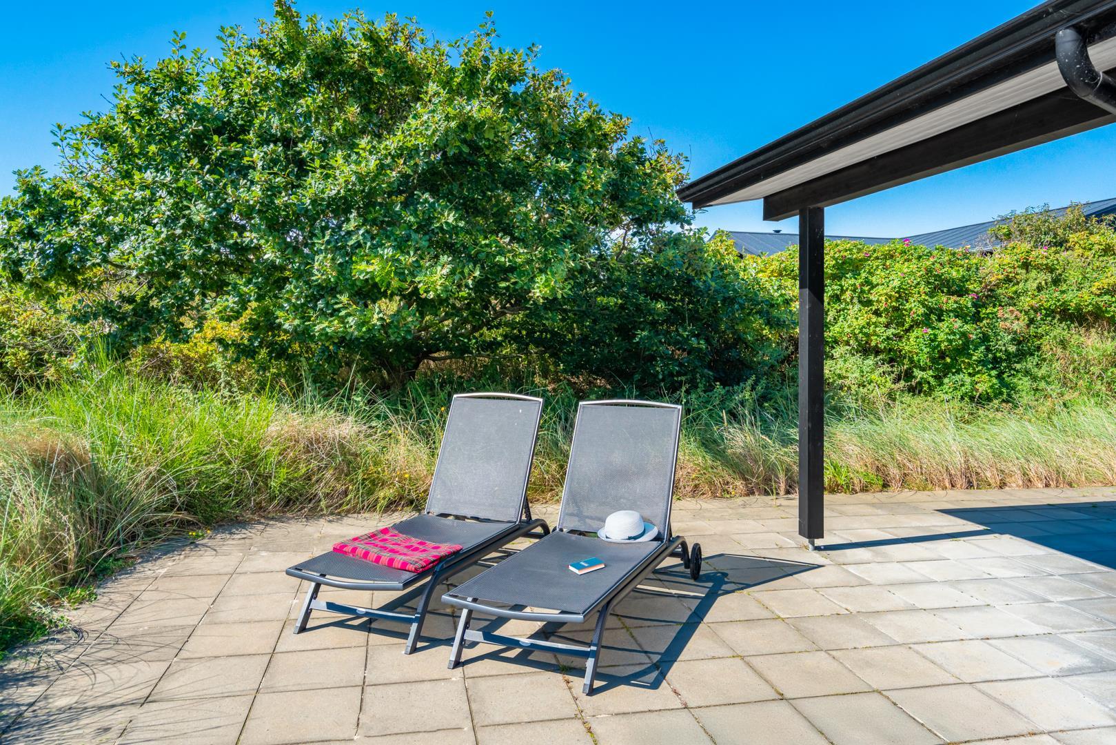 Morgenmaden kan nydes på den østvendte terrasse og solbadning og grillaftenen kan nydes på en af de andre terrasser som omkranser huset.