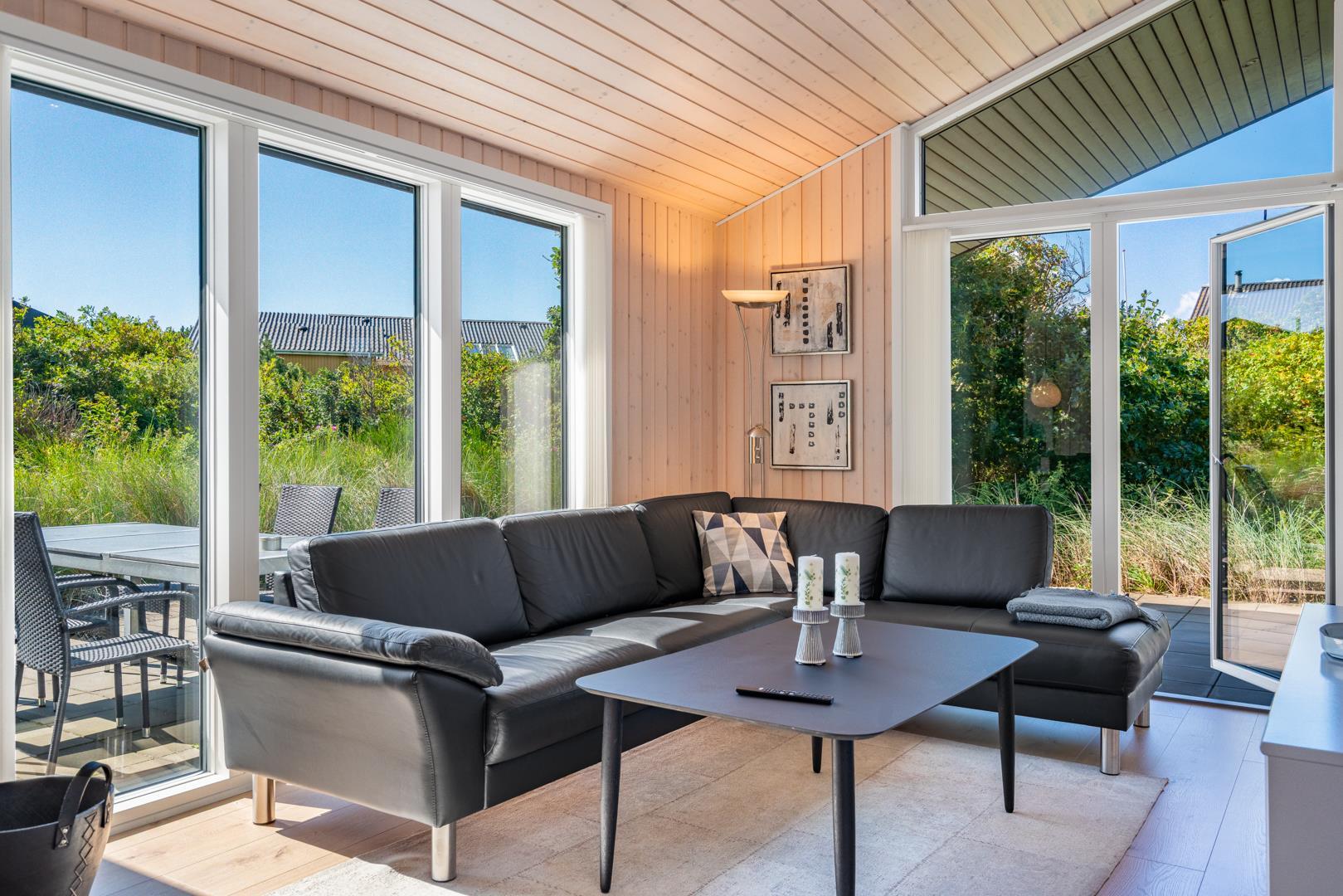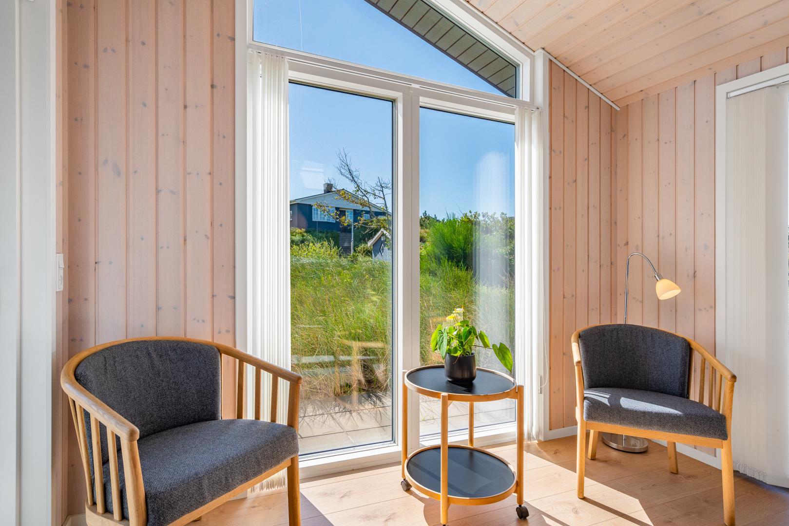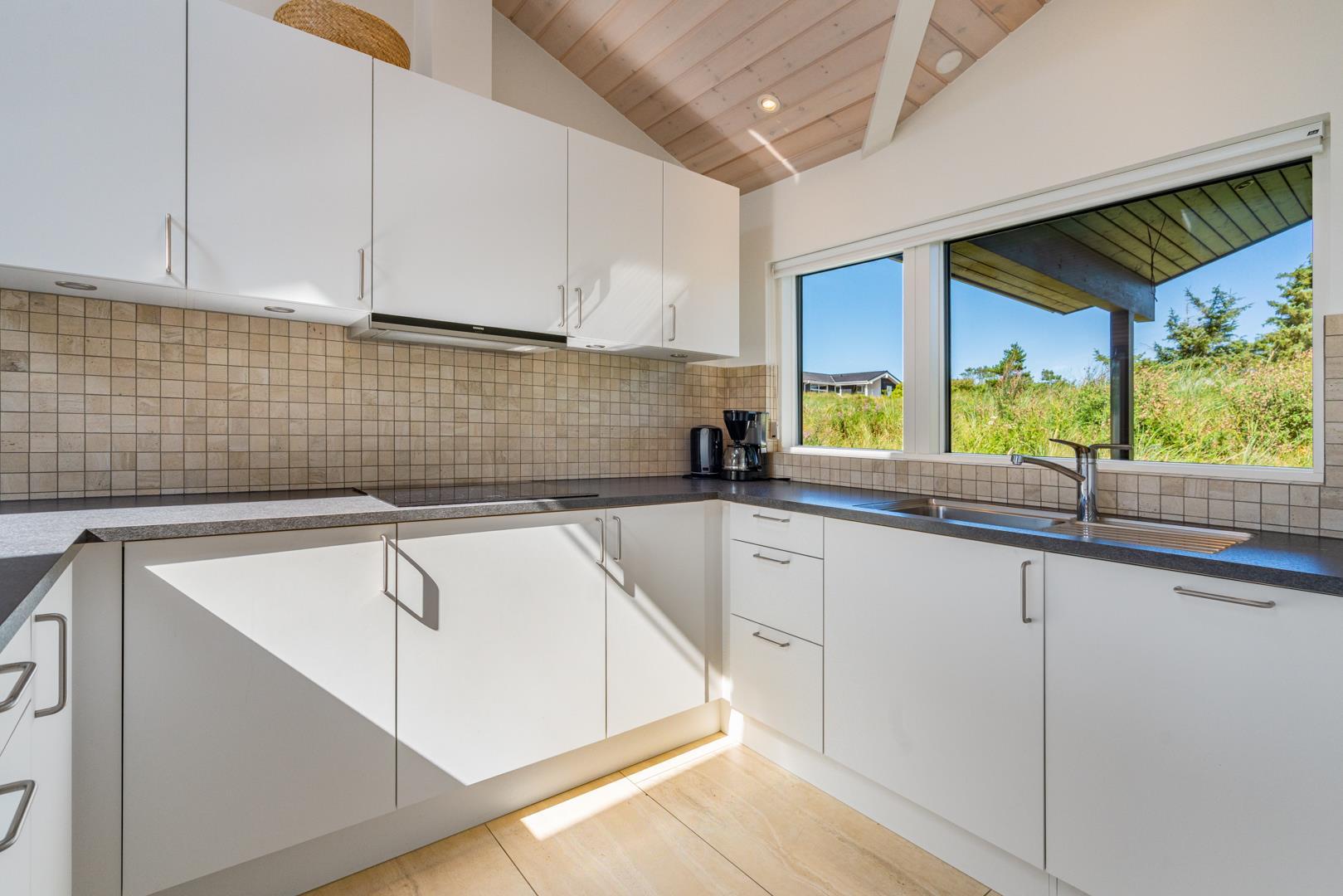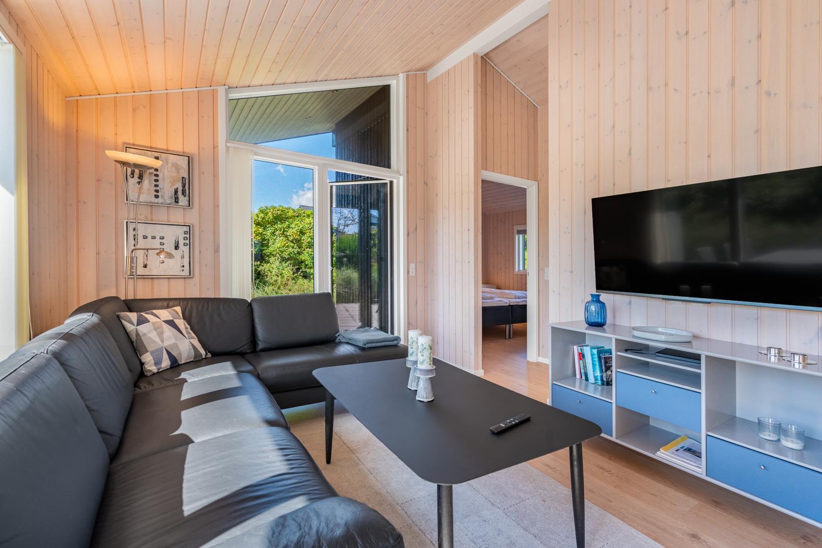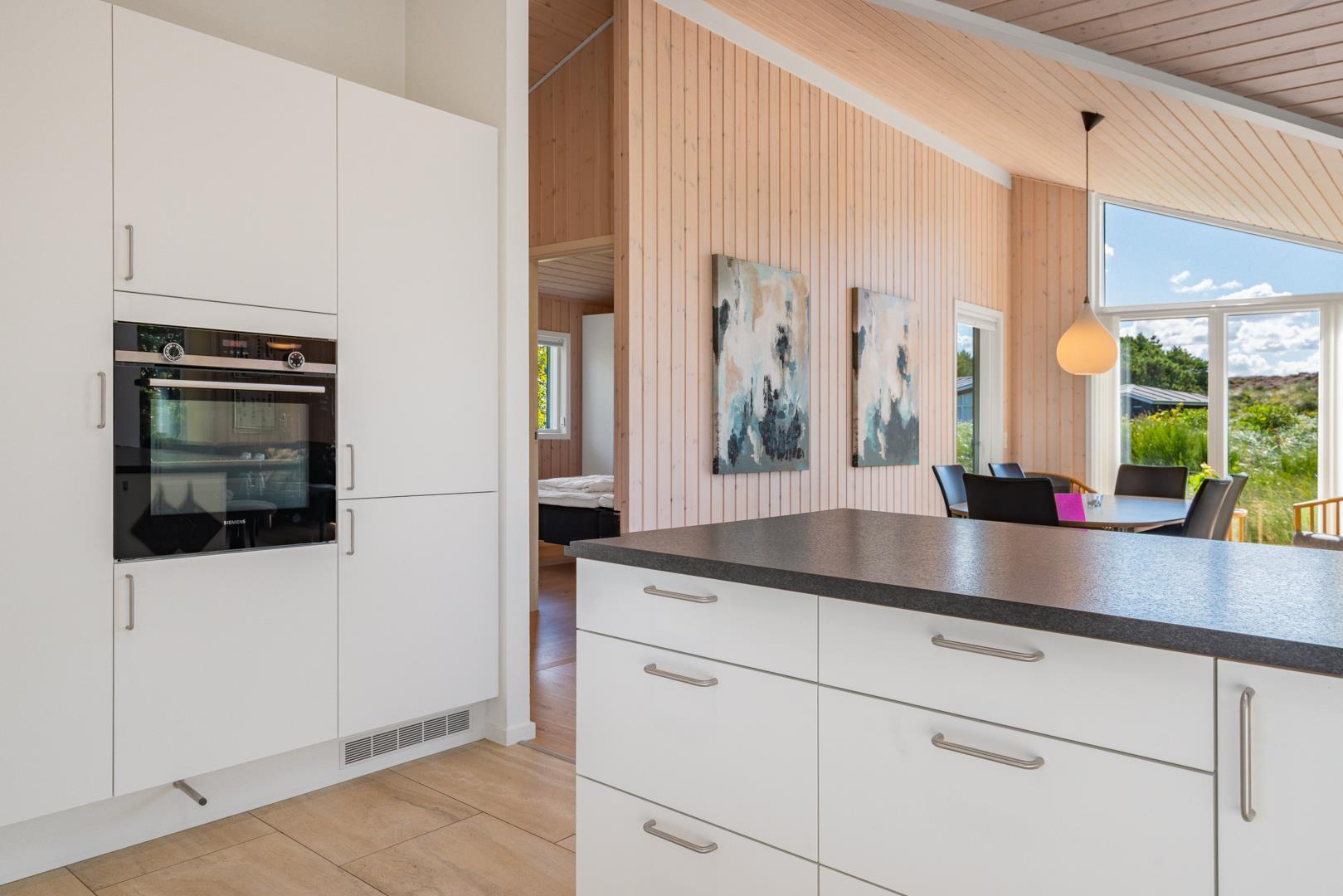 Feriehuset er opført i 2021 og byder på stort køkken som er i åben forbindelse med husets smagfuld indrettede stue/alrum. I opholdsrummet kan familien hygge sig med spil eller en god bog foran husets brændeovn. I køkkenalrummet er der ovenlysvinduer som givet et dejligt lysindfald ind i huset.
