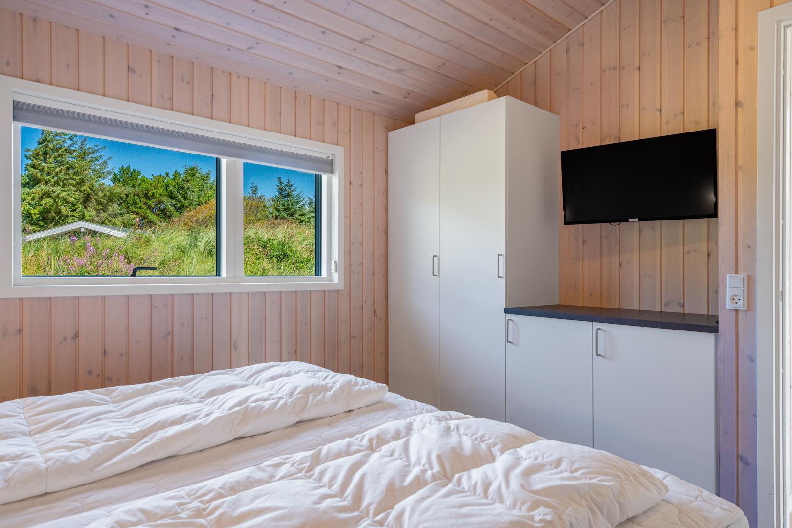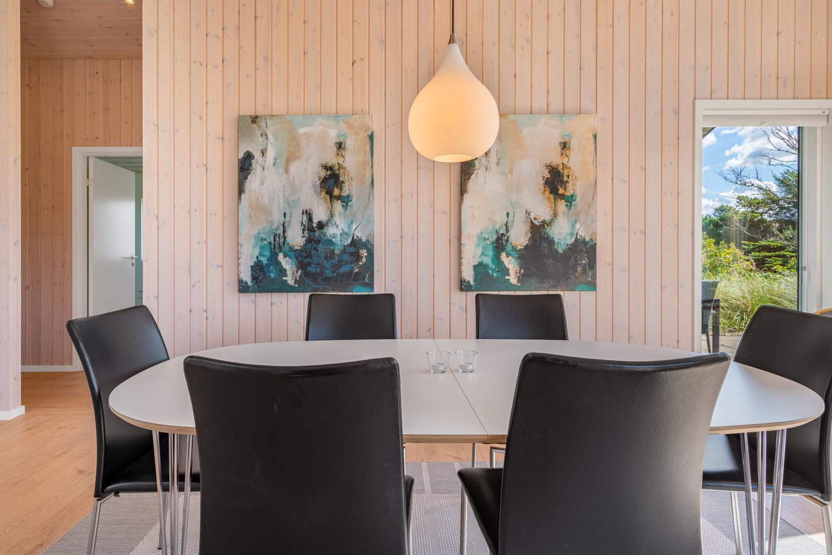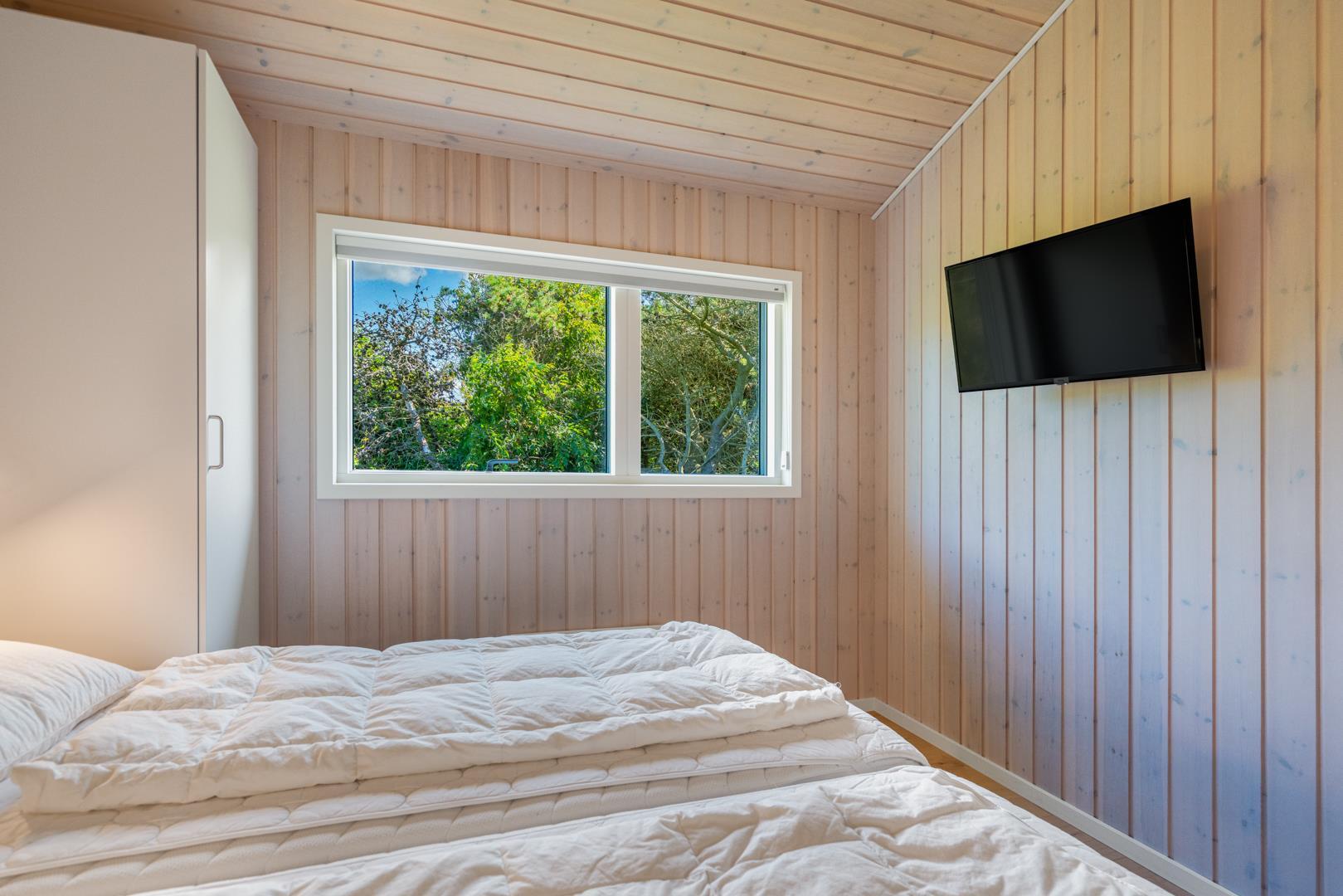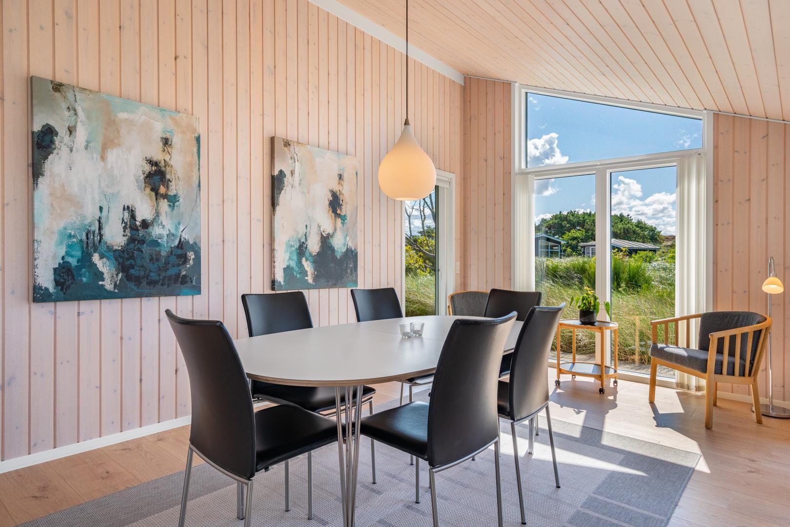 Feriehuset er opført i 2021 og byder på stort køkken som er i åben forbindelse med husets smagfuld indrettede stue/alrum. I opholdsrummet kan familien hygge sig med spil eller en god bog foran husets brændeovn. I køkkenalrummet er der ovenlysvinduer som givet et dejligt lysindfald ind i huset.