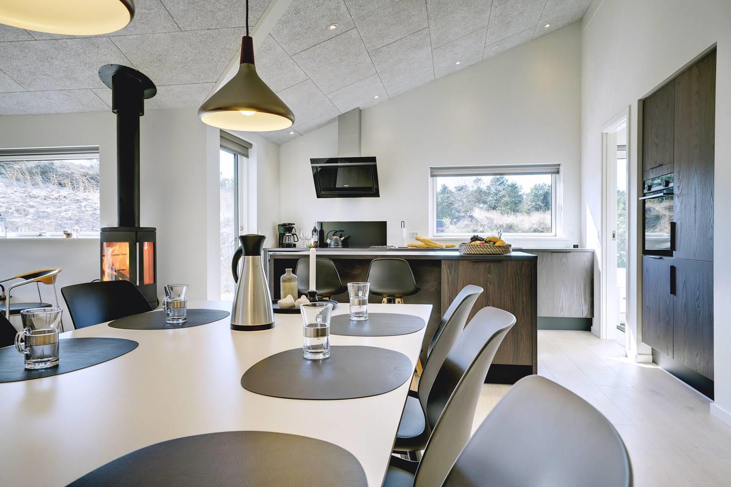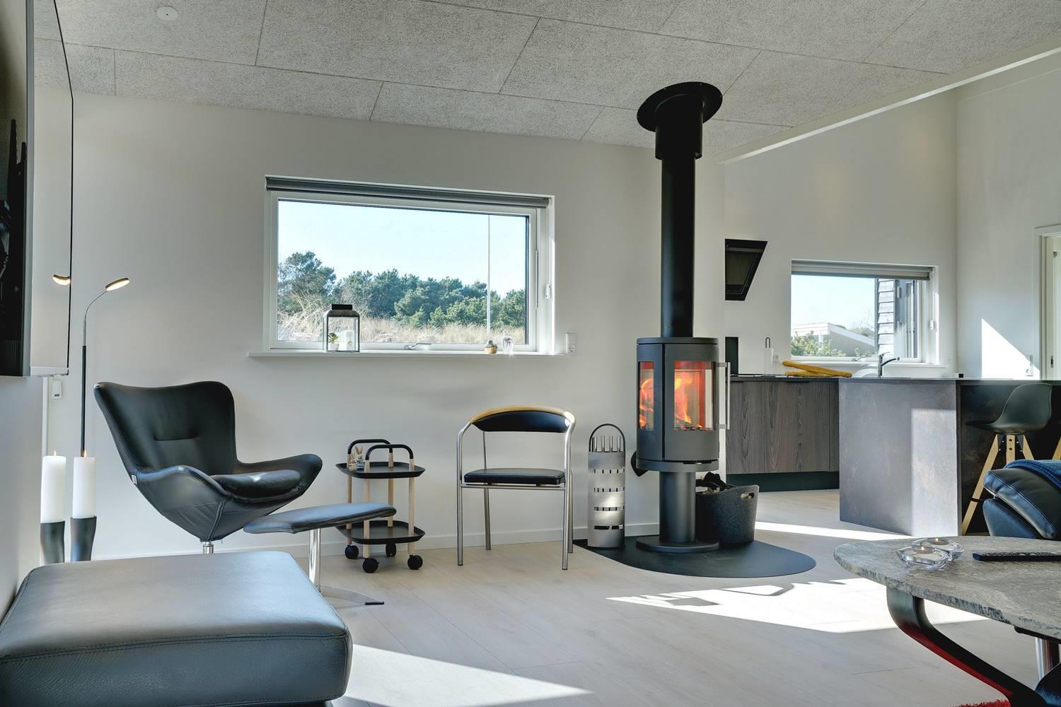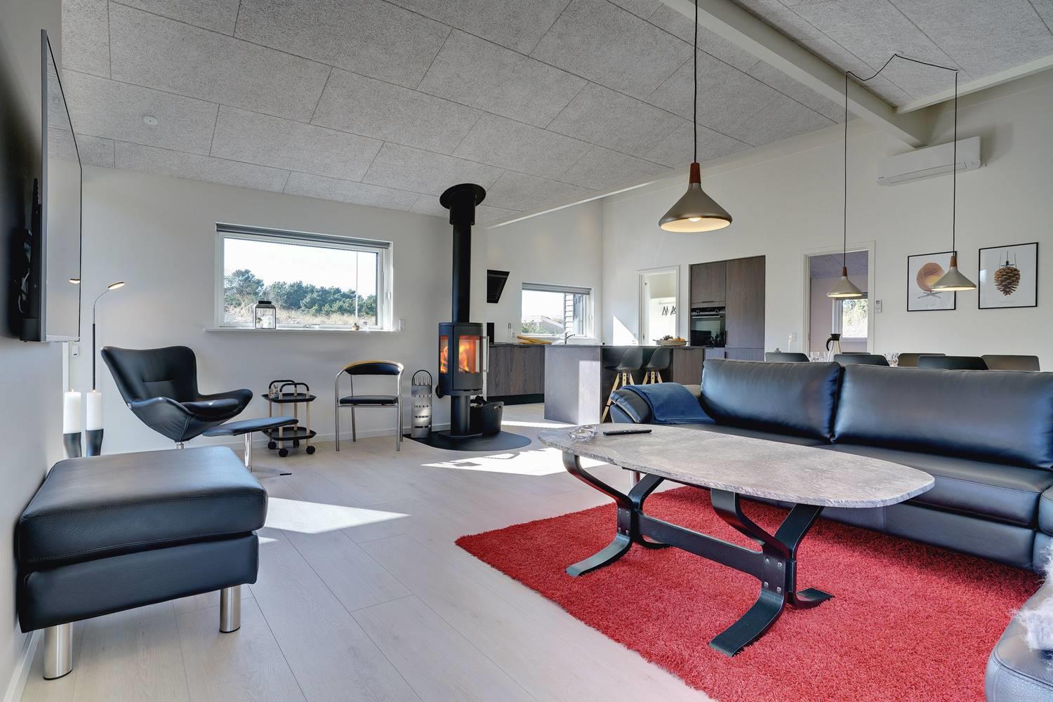 Husets store attraktion er det store opholdsrum, som giver jer de optimale rammer for feriehyggen uanset årstid. Her er både sørget for god akustik med Troldtektlofter og et helt fantastisk lysindfald gennem glaspartier mod alle fire verdenshjørner.