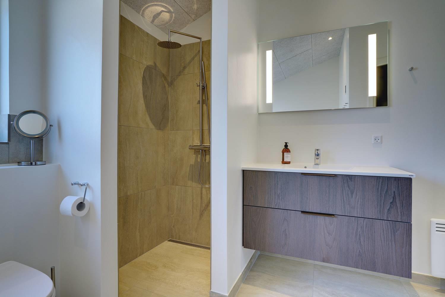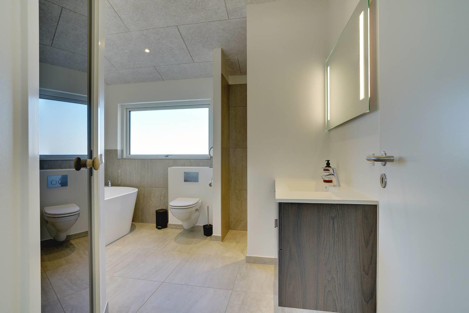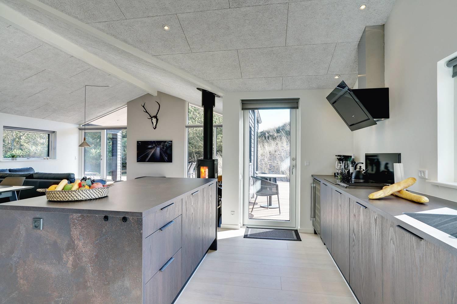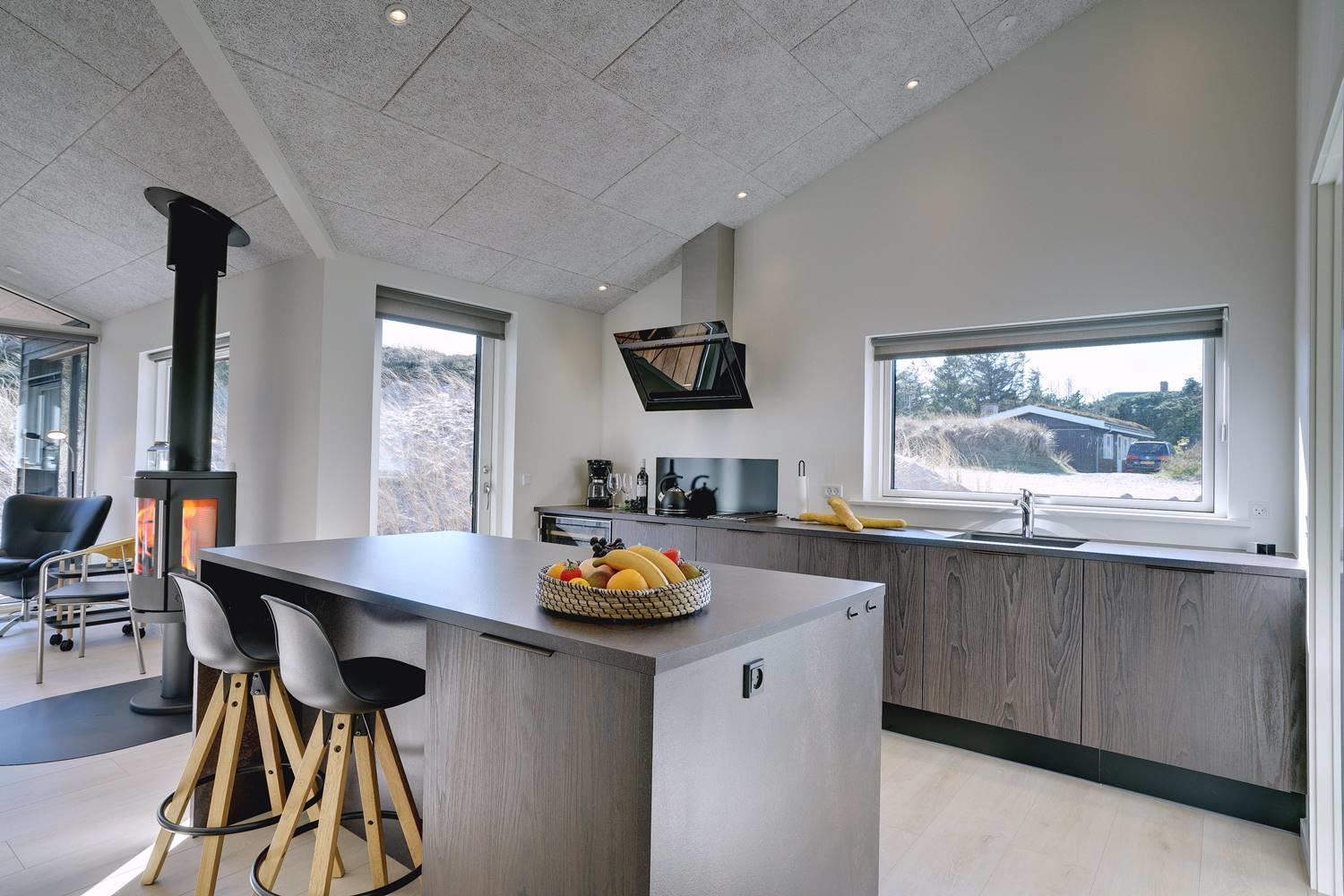 Husets store attraktion er det store opholdsrum, som giver jer de optimale rammer for feriehyggen uanset årstid. Her er både sørget for god akustik med Troldtektlofter og et helt fantastisk lysindfald gennem glaspartier mod alle fire verdenshjørner.
